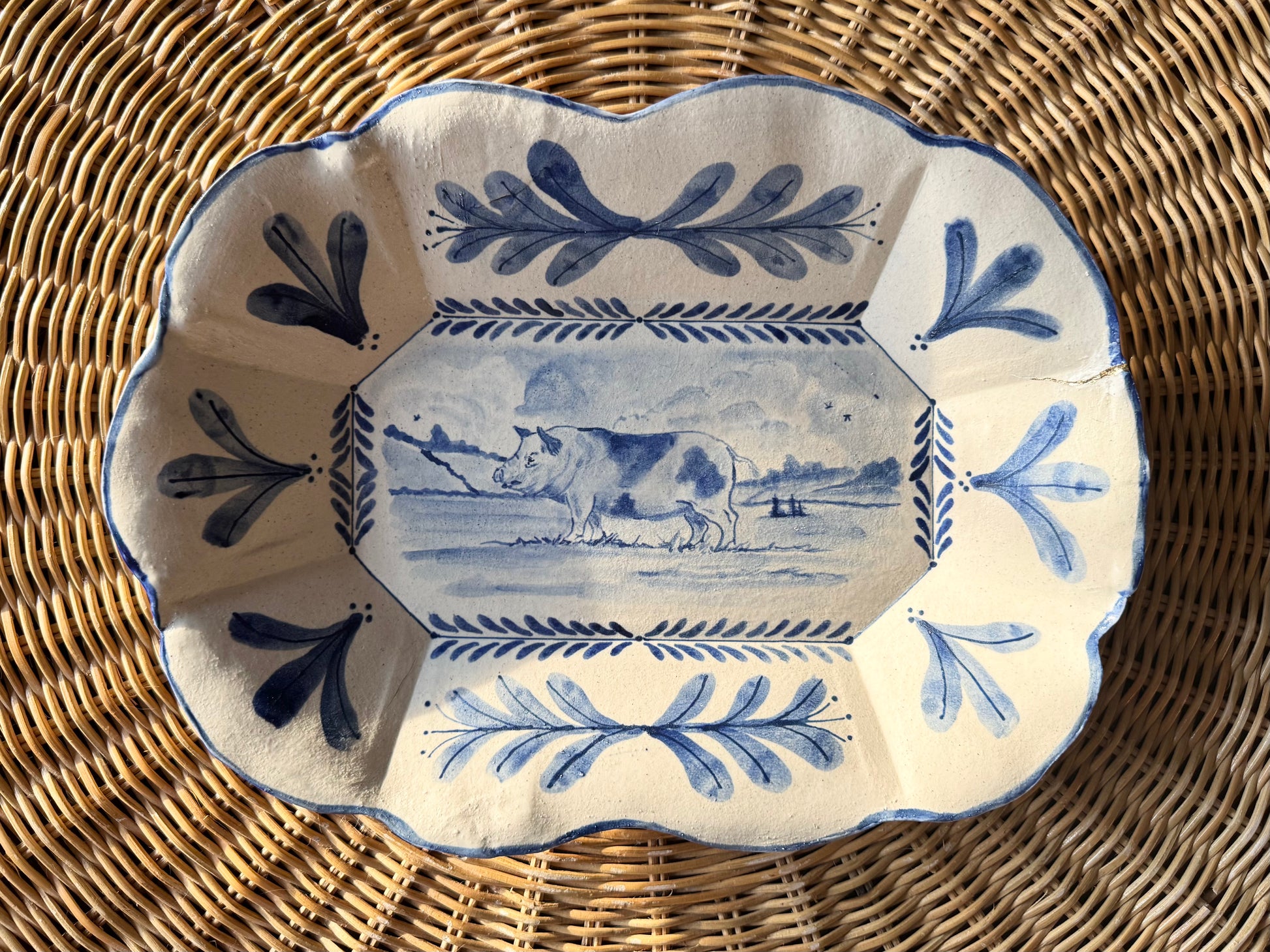 The Country Gentleman Collection by artist Maggie Robertson is a beautiful series of one-of-a-kind stoneware vessels. Each unique piece embraces the seams and irregularities of her hand-built technique complemented by intricate, hand-painted scenes of the English countryside in classic blue and white. The vessels are water tight and food safe, microwaveable and dishwasher safe; however, as they are art pieces and fragile, we would recommend hand washing.