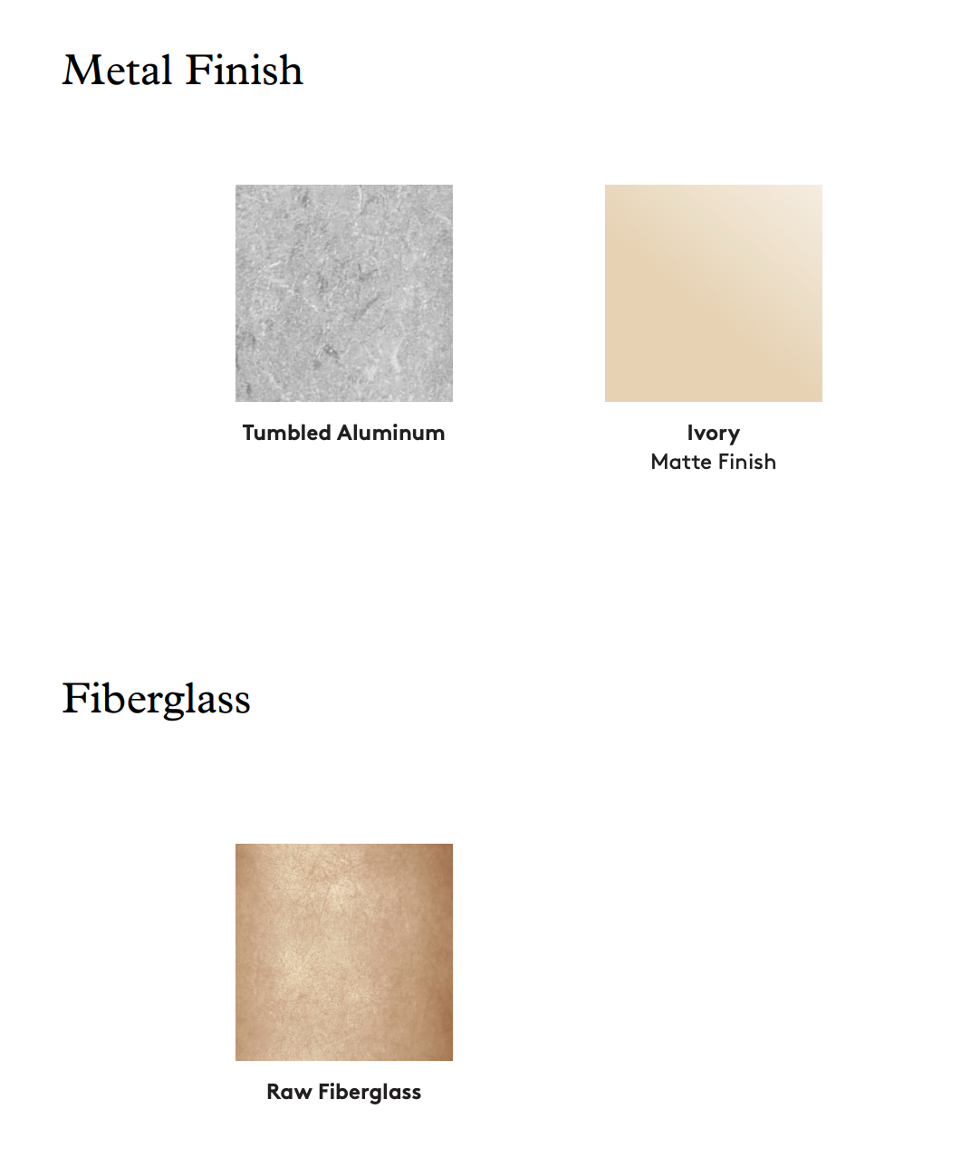 • Raw Fiberglass Shade, Tumbled Aluminum Canopy, Ivory Canopy