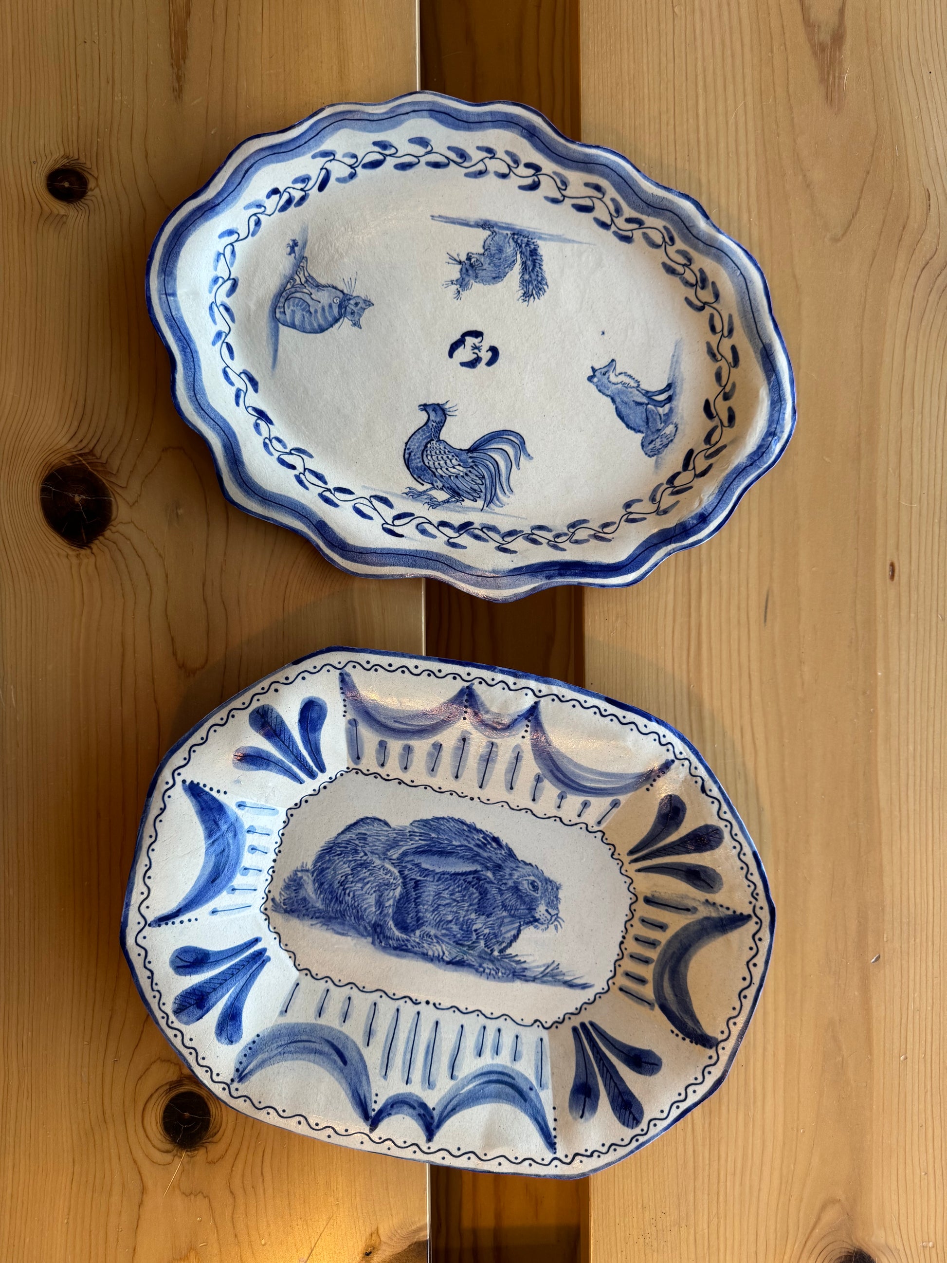 The Country Gentleman Collection by artist Maggie Robertson is a beautiful series of one-of-a-kind stoneware vessels. Each unique piece embraces the seams and irregularities of her hand-built technique complemented by intricate, hand-painted scenes of the English countryside in classic blue and white. The vessels are water tight and food safe, microwaveable and dishwasher safe; however, as they are art pieces and fragile, we would recommend hand washing.