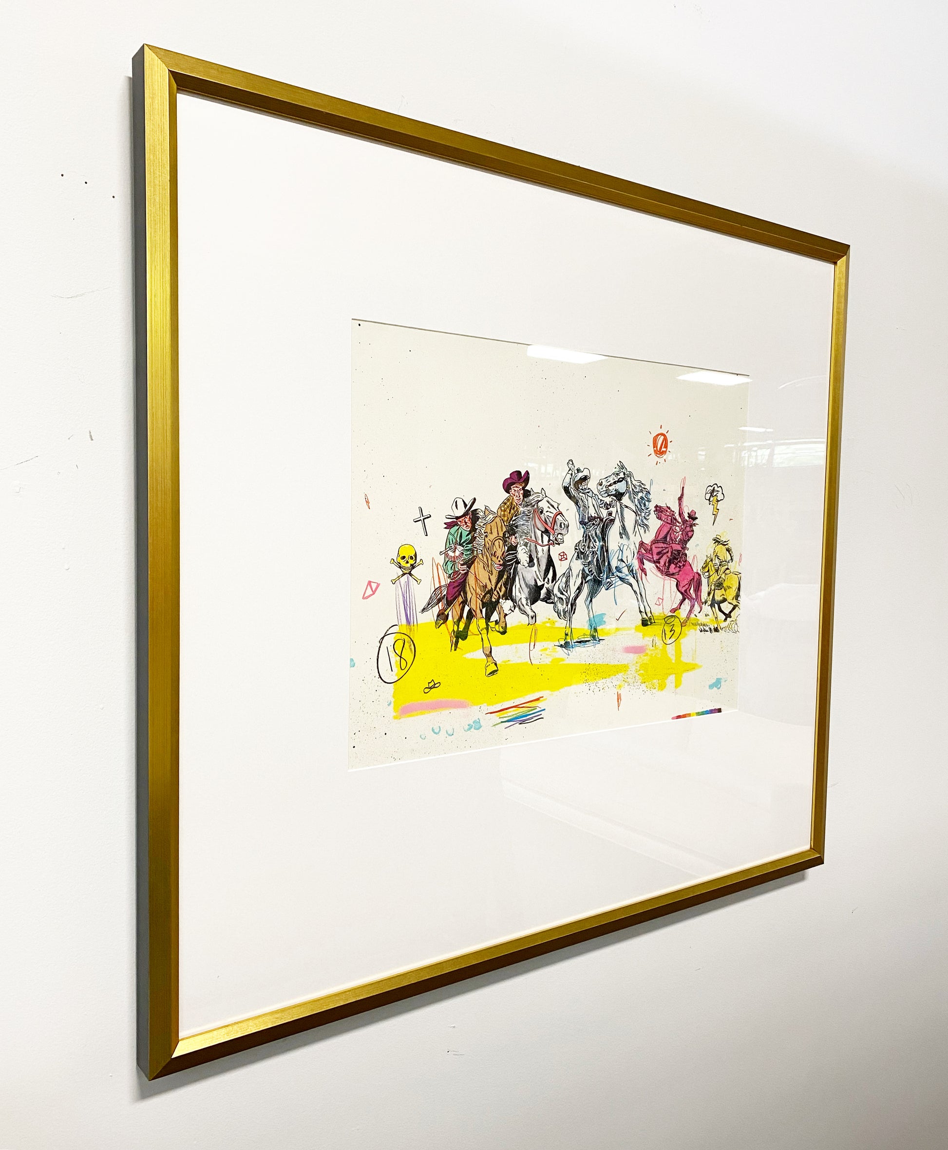 Framed in museum-quality frame, Black with Gold Leaf Front. UV-shielding acrylic. Frame includes wall bumpers, ready to hang.