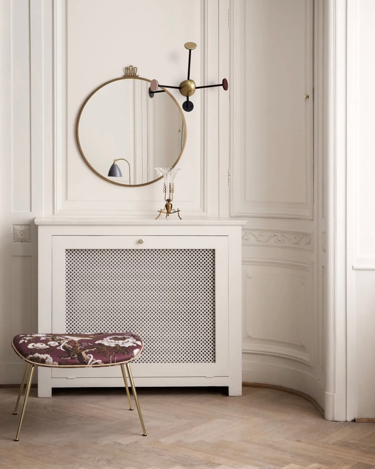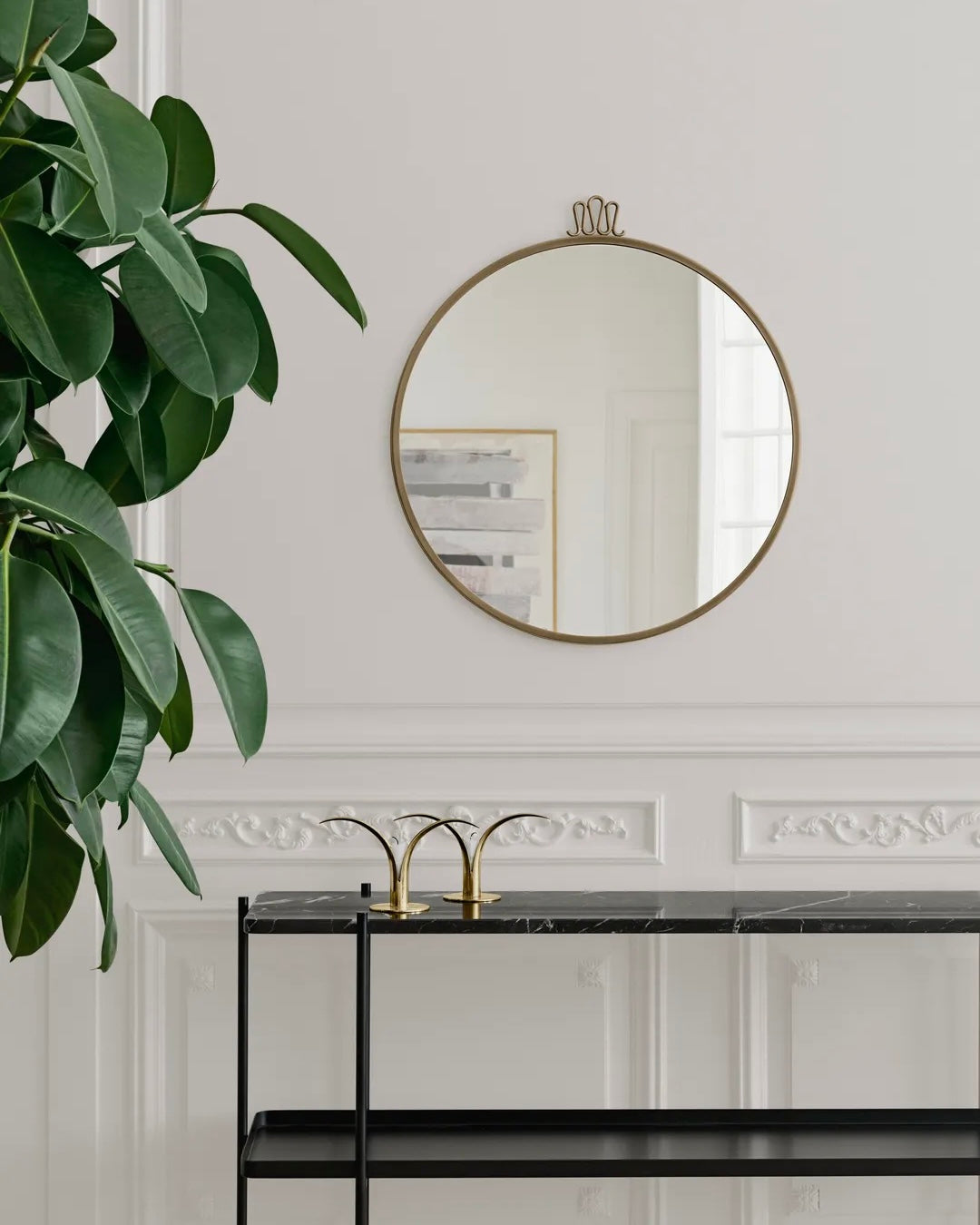 One of Gio Ponti’s signature designs is the Randaccio Mirror from 1925. Designed for his own home on Via Randaccio in Milano, his very first architectural project, the Randaccio Mirror decorated the walls in his bedroom on the 3rd floor together with other furniture designed for the apartment. The Randaccio Mirror unites elegance with simplicity and is characterized by its atypical crown-like detailing on the top, a detail used by Ponti in several of his works within design and art. The mirror, which comes in three different sizes, has references to its original time period but is able to add personality to every contemporary setting and enrich the decoration, whether it is a bedroom, bathroom, hallway, living room, or dressing room.
