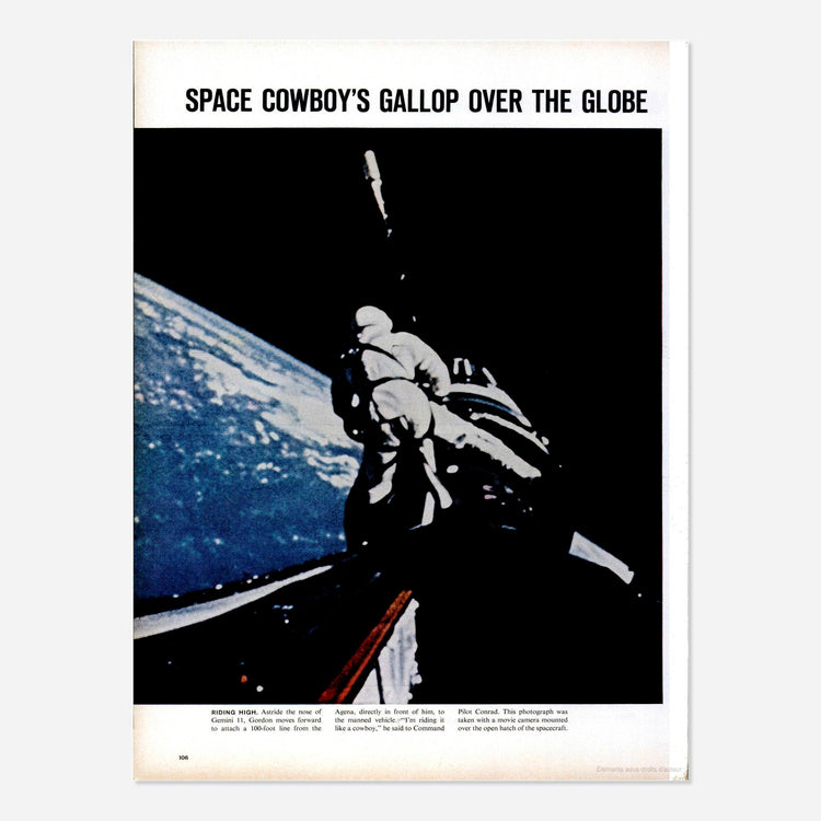 Richard Gordon’s “space cowboy” EVA riding the Gemini spacecraft, NASA [Gemini XI], 12-15 September 1966.