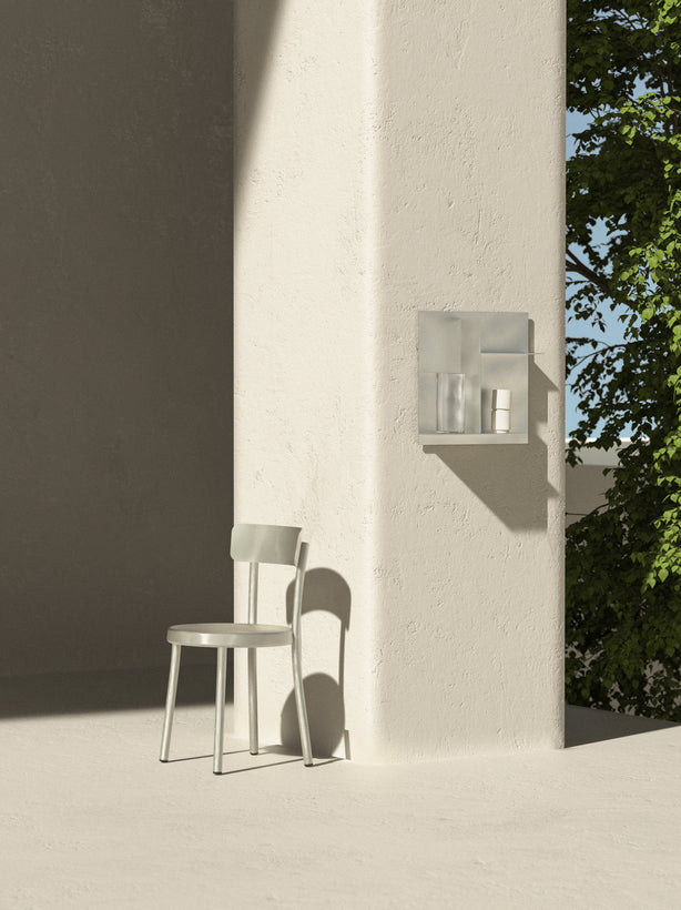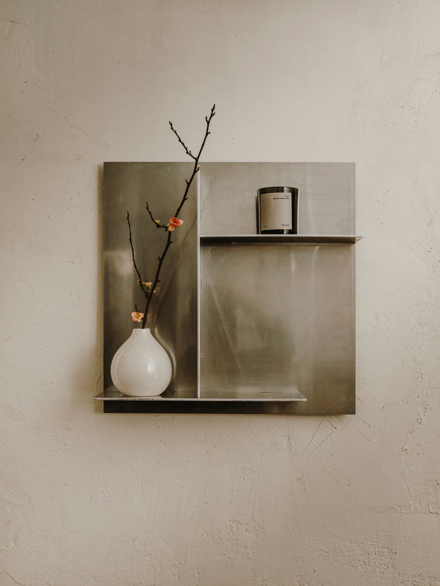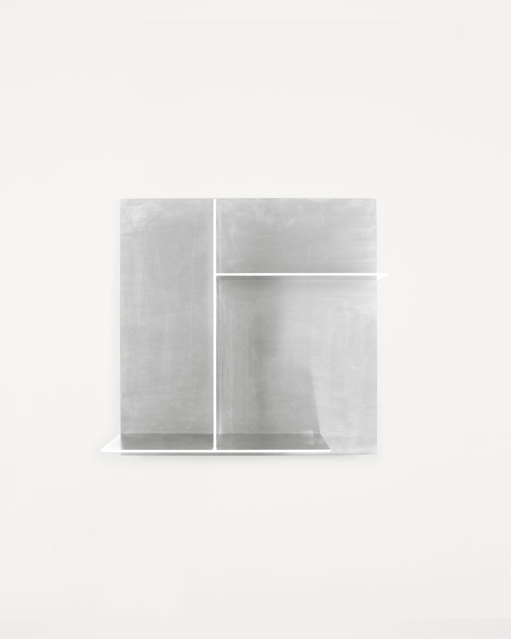 Features | Easy to mount with the separate backplate | Each piece is unique and hammered by hand | Due to the unfinished and raw nature of aluminum, scratches and natural irregularities on the surface might be originally present | The material will patinate over time, and marks and tinted materiality will occur | The Rivet Typecase can hold 10 kg (depending on wall material and mounting | Suitable for indoor and outdoor; if placed outdoors it will develop a graceful patina over time but will not rust nor deteriorate