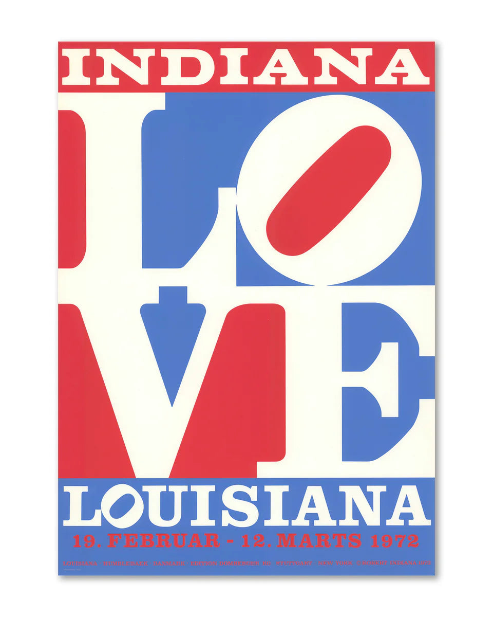 Anniversary poster with the work, Love , (1972) by the American artist, Robert Indiana, (1928-2018). The work was originally reproduced on the exhibition poster in connection with the Louisiana exhibition of Indiana in 1972. With razor-sharp precision, bright colors and template-like reproduction of words such as EAT, KILL and, as here, LOVE, Robert Indiana cast a critical light on American society.