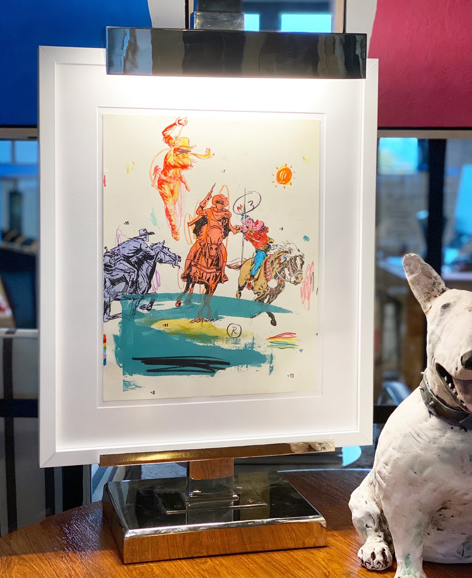 Framed in museum-quality Gallery White Frame with Island Float. UV-shielding plexiglass. Frame includes wall bumpers, hanging hardware, and nails.