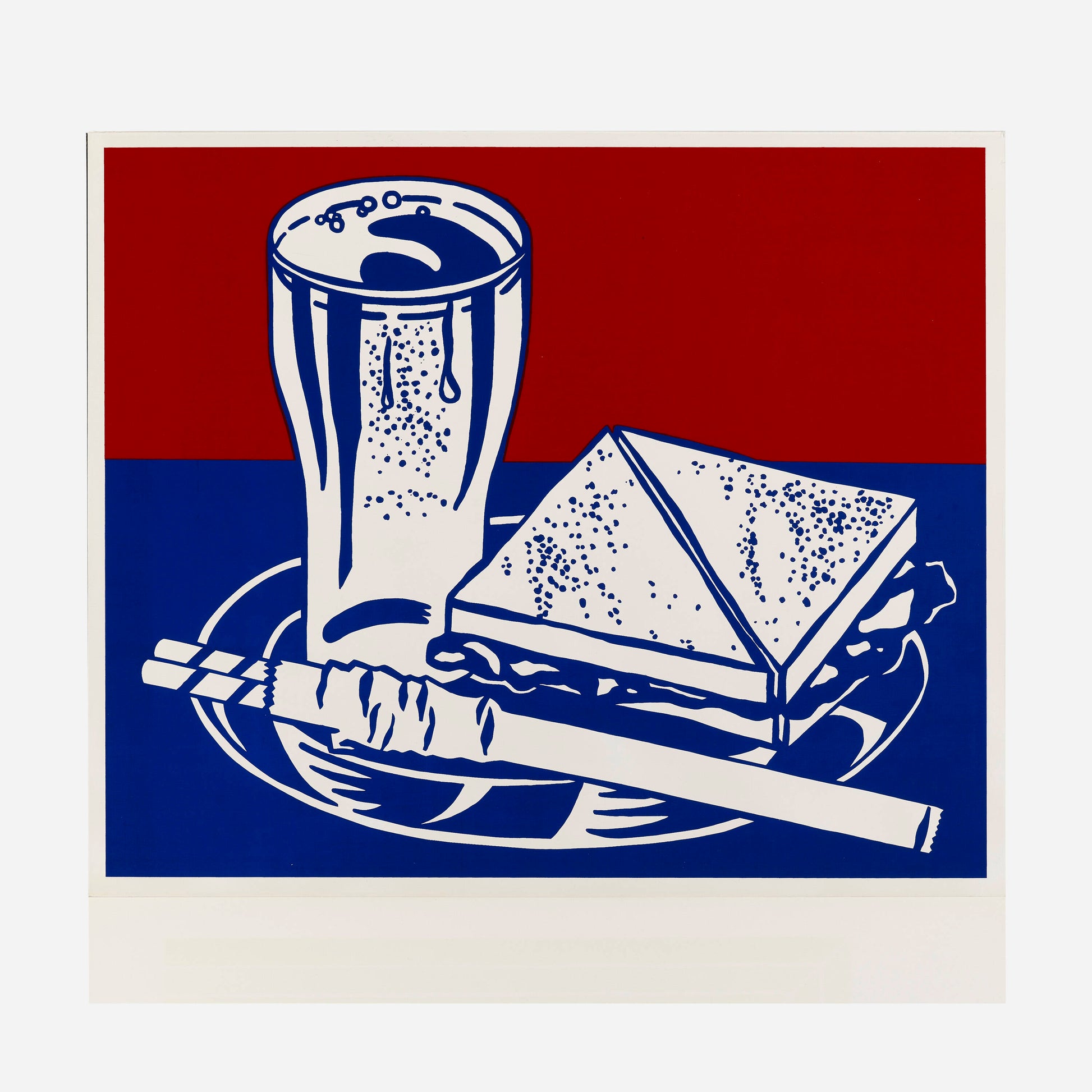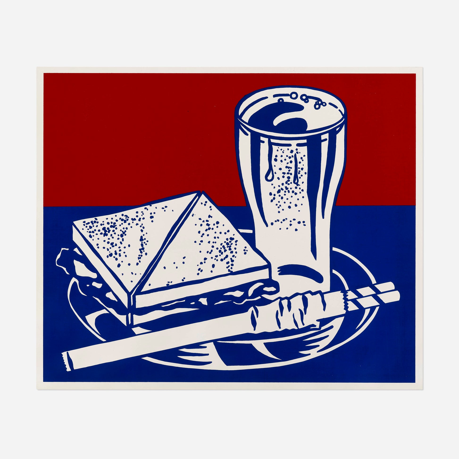 Sandwich and Soda is the first of Roy Lichtenstein's frequent examples of printing on unorthodox surfaces, in this case a clear plastic sheet, a choice most likely inspired by his work as a commercial draftsman. This work is from the edition of 500 printed by printed by Sirocco Screenprinters and Ives-Sillman, Inc., New Haven and published by The Wadsworth Atheneum, Hartford. From the X + X (Ten Works by Ten Painters) portfolio.