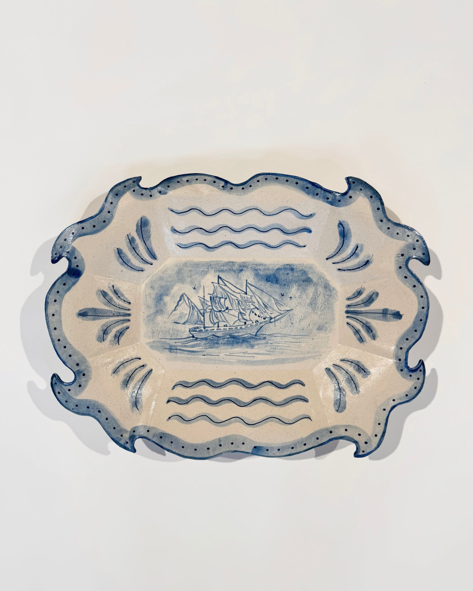 The Country Gentleman Collection by artist Maggie Robertson is a beautiful series of one-of-a-kind stoneware vessels. Each unique piece embraces the seams and irregularities of her hand-built technique complemented by intricate, hand-painted scenes of the English countryside in classic blue and white. The vessels are water tight and food safe, microwaveable and dishwasher safe; however, as they are art pieces and fragile, we would recommend hand washing.