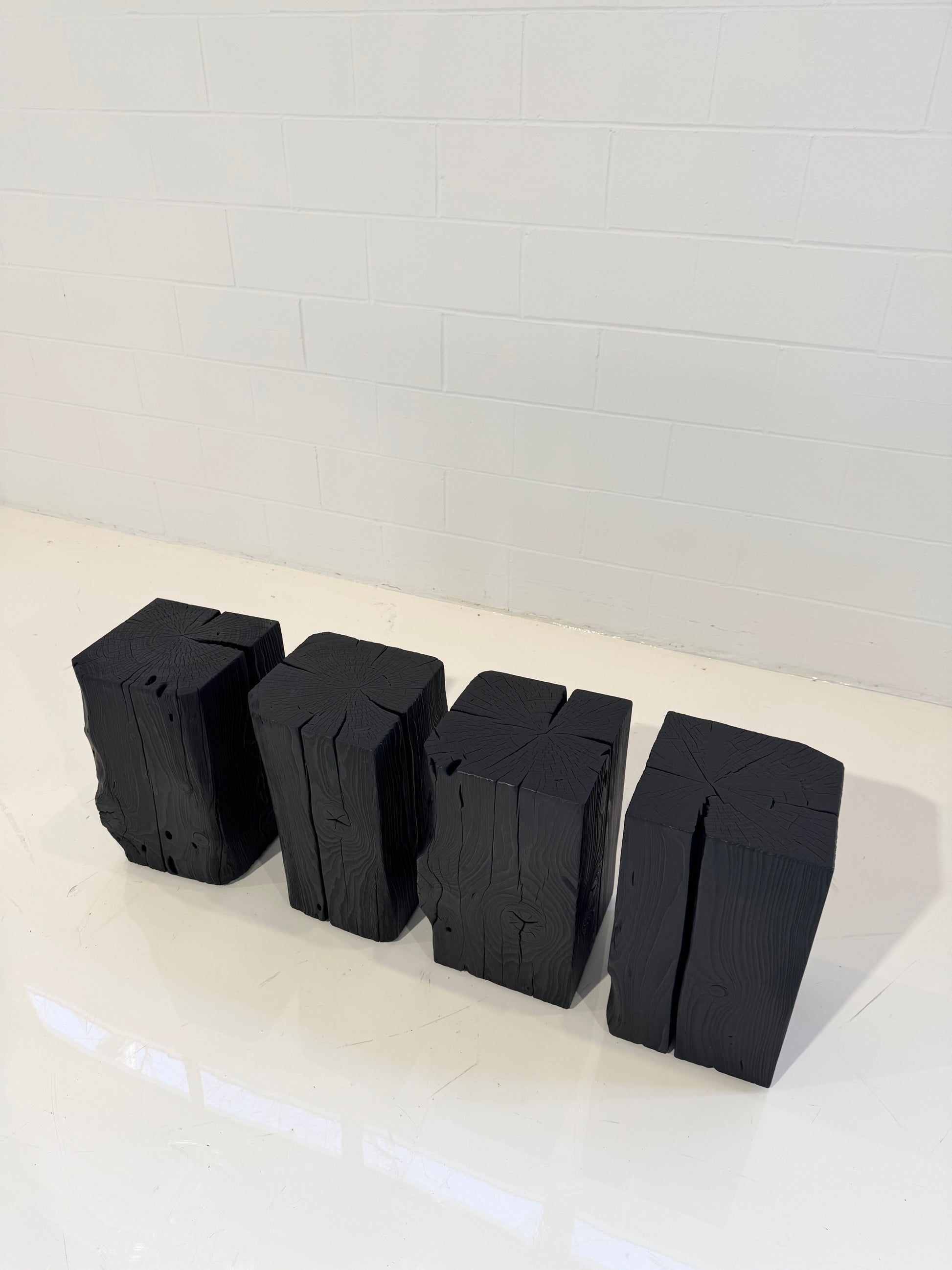 Beautiful, one-of-a-kind Shou Sugi Ban Log Side Tables from David Stine.