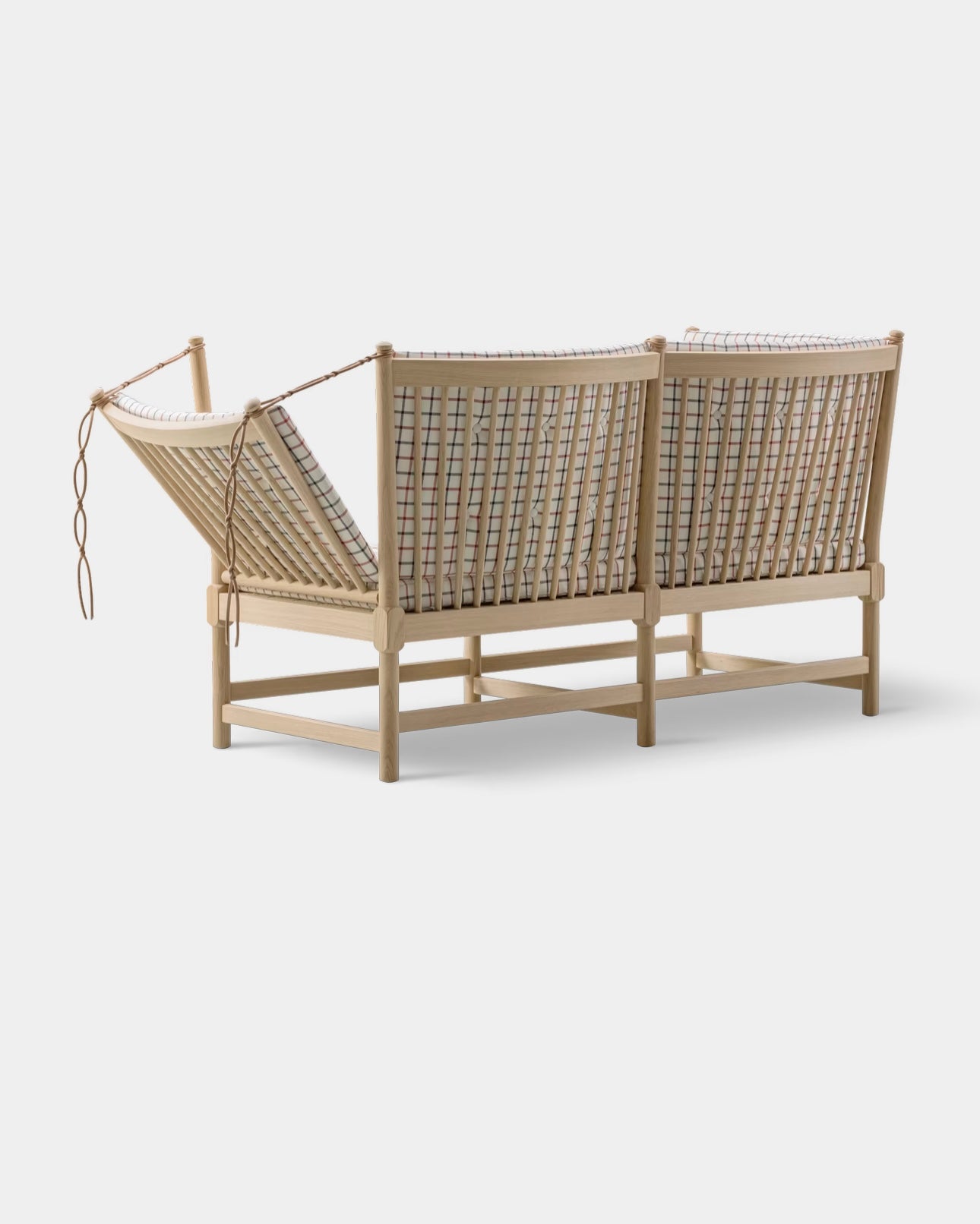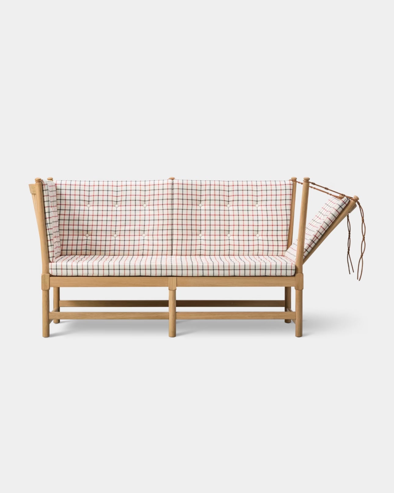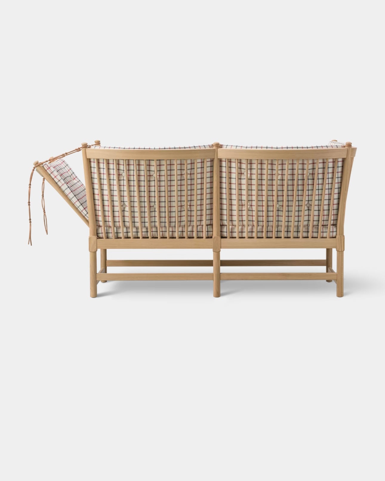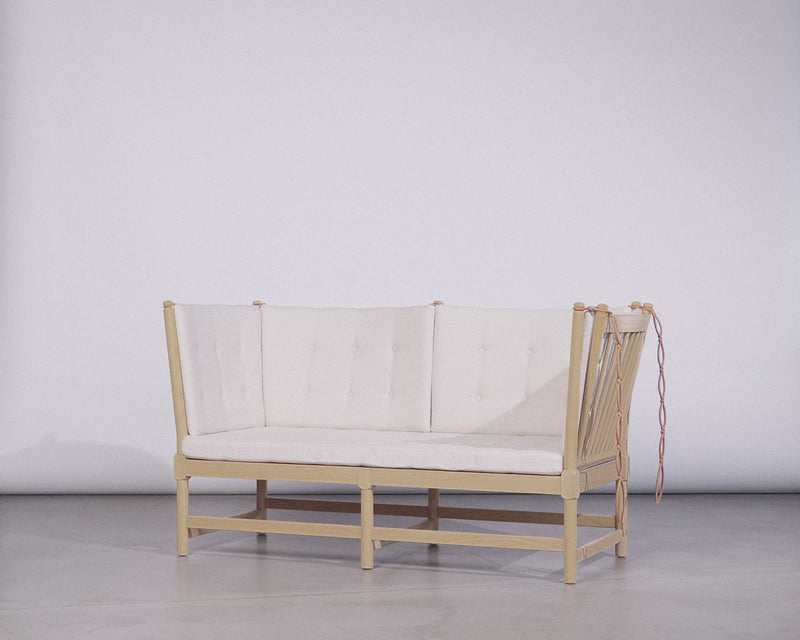 The Spoke-Back Sofa is a classic Børge Mogensen design, first presented in 1945 as a proposal for the ‘furniture type of the future’. The sofa combines chaise lounge and conversation sofa as one piece that is practical and expressive at the same time. The light construction in solid wood with removable cushions means that the sofa can always be renewed as needed.