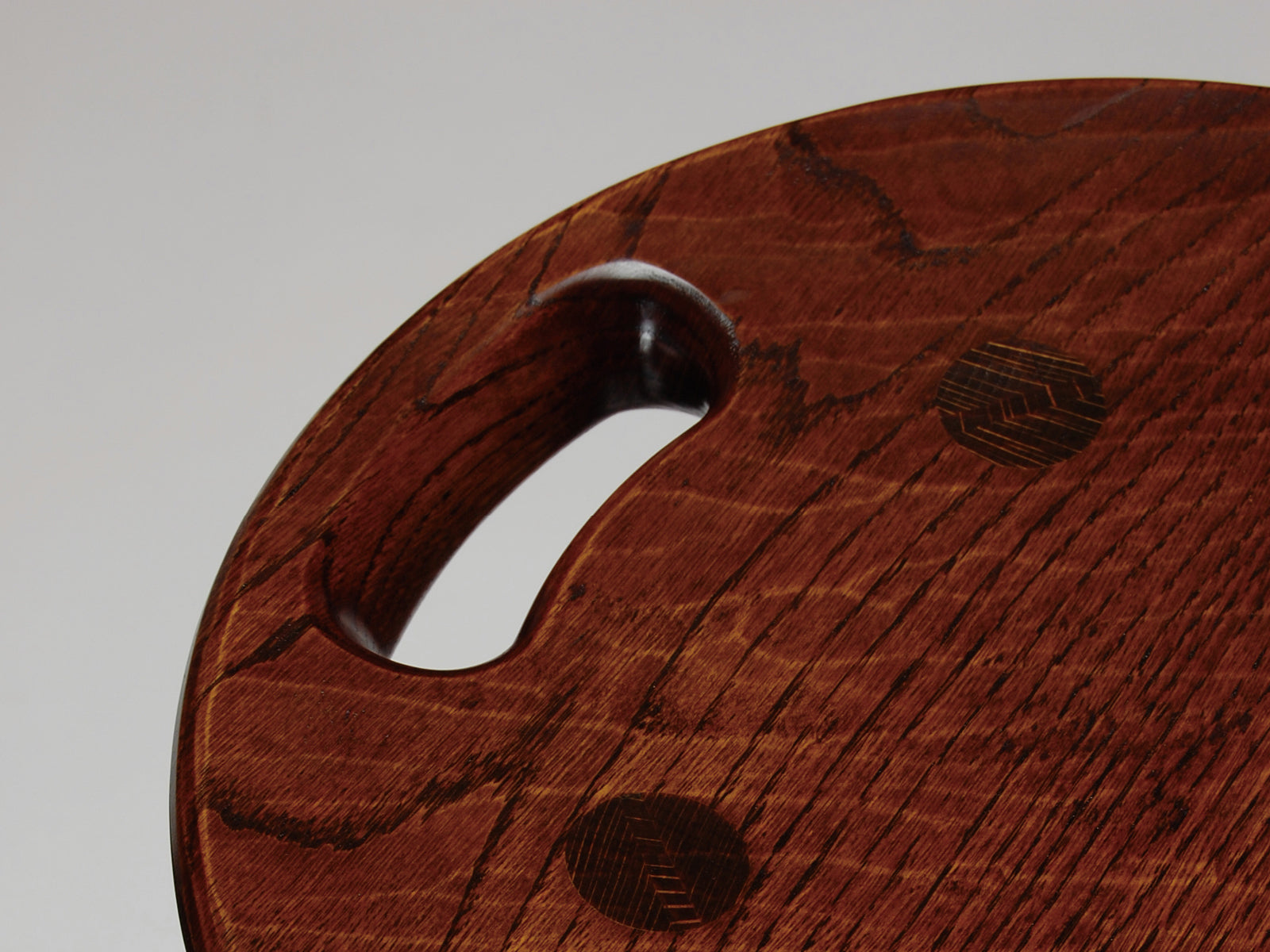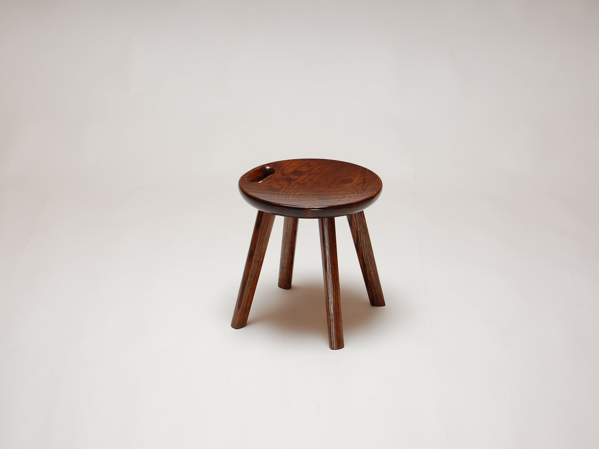 We love the stool with handle. The Japanese oak is beautiful. Carry it with you for any everyday task. You can see the artist's hand at work with the fine tool marks and Urushi finish. The top surface forms a shallow concave for a comfortable seat. It also makes a great stepstool and side table.