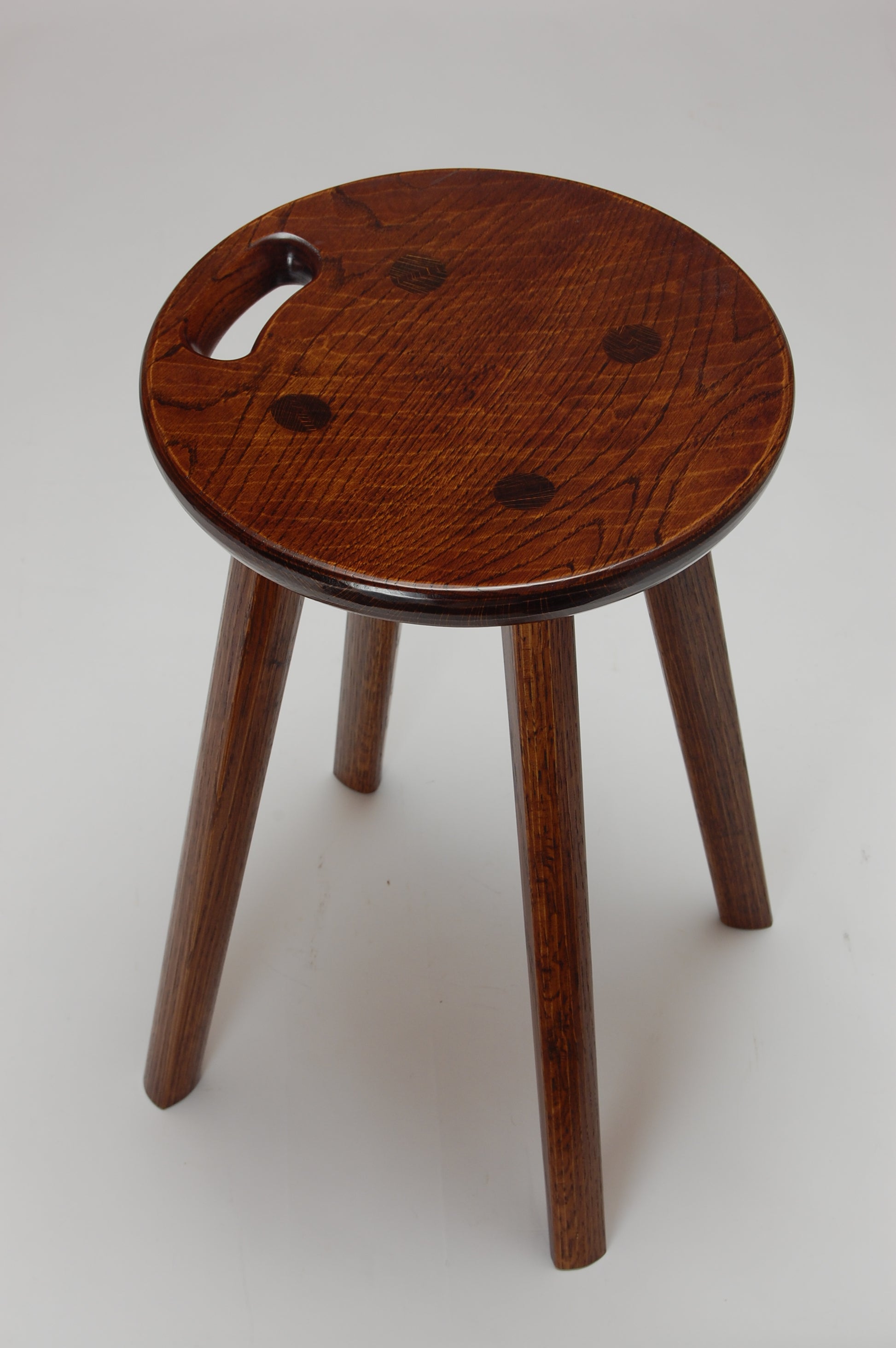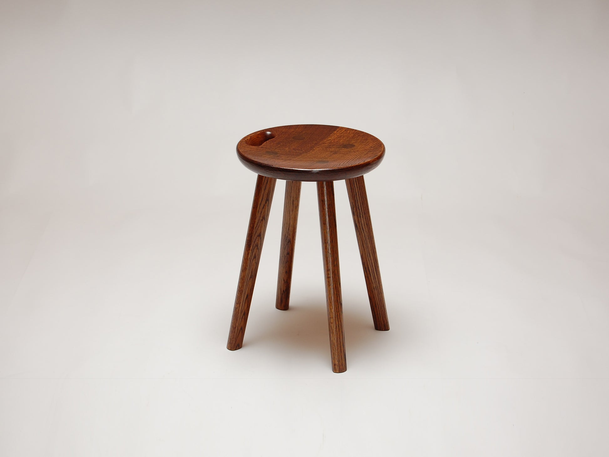 We love the stool with handle. The Japanese oak is beautiful. Carry it with you for any everyday task. You can see the artist's hand at work with the fine tool marks and Urushi finish. The top surface forms a shallow concave for a comfortable seat. It also makes a great stepstool and side table.