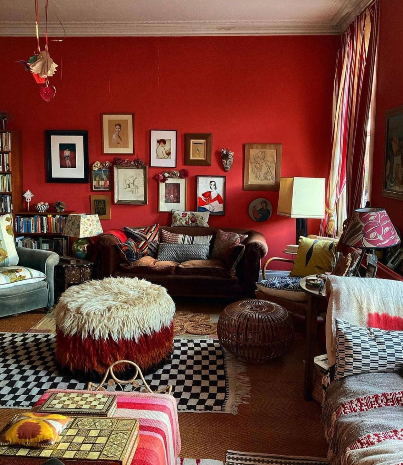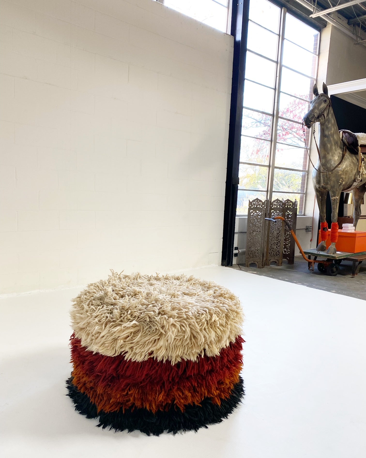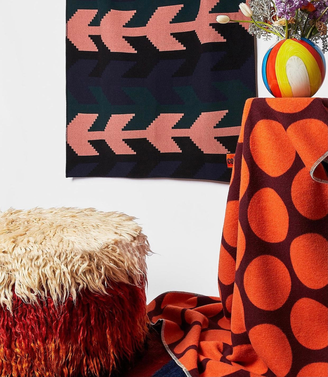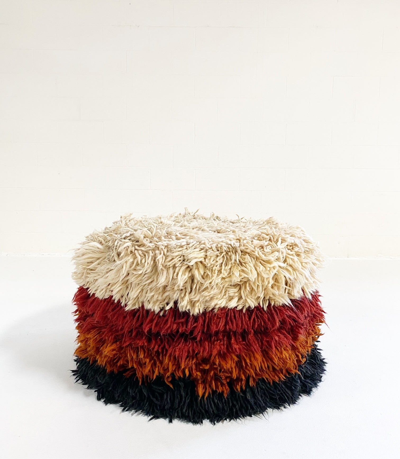 Super Shaggy Ottoman - Cream and Pink