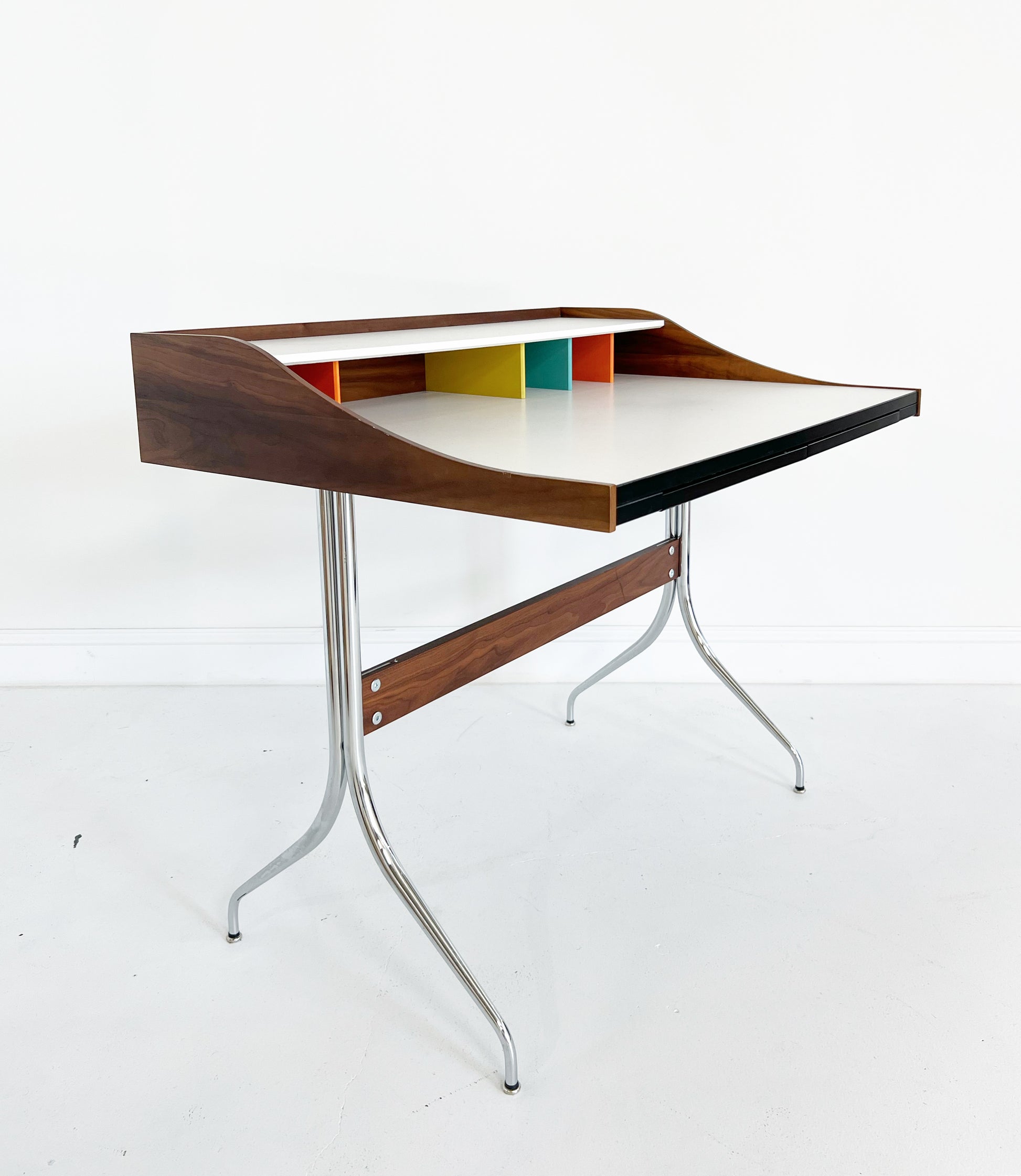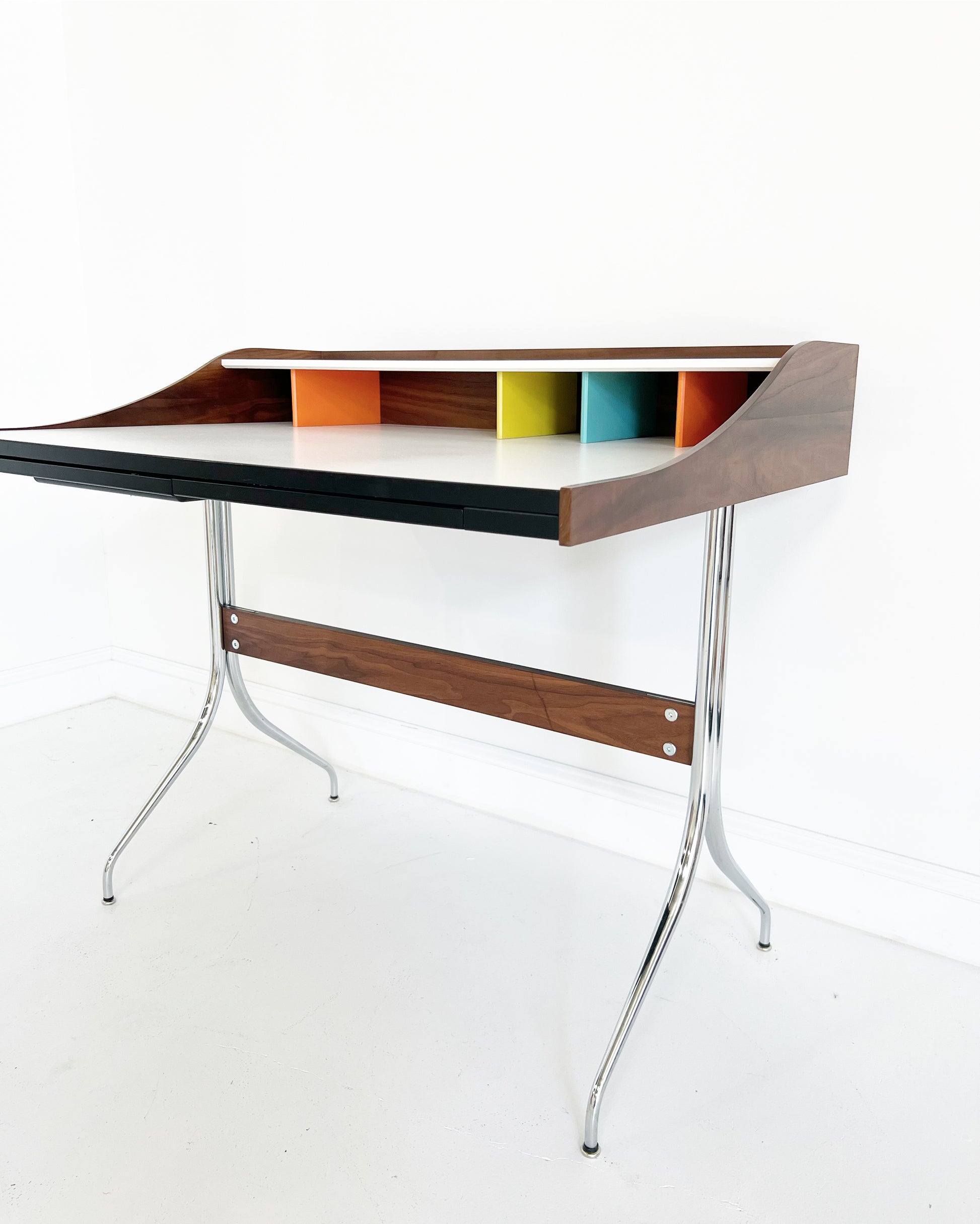 We've always been fans of the Swag Desk. It's a great size, cool looking, and would look great just as well in a kid's room as an adult's. From Herman Miller: With its sculptural legs created by the process of swaging - tapering and curving a metal tube - this modern office storage desk is as beautiful as it is practical. The wide work surface accommodates laptops and keyboards, while the cubbies hold everything from mail to your kid's art projects.