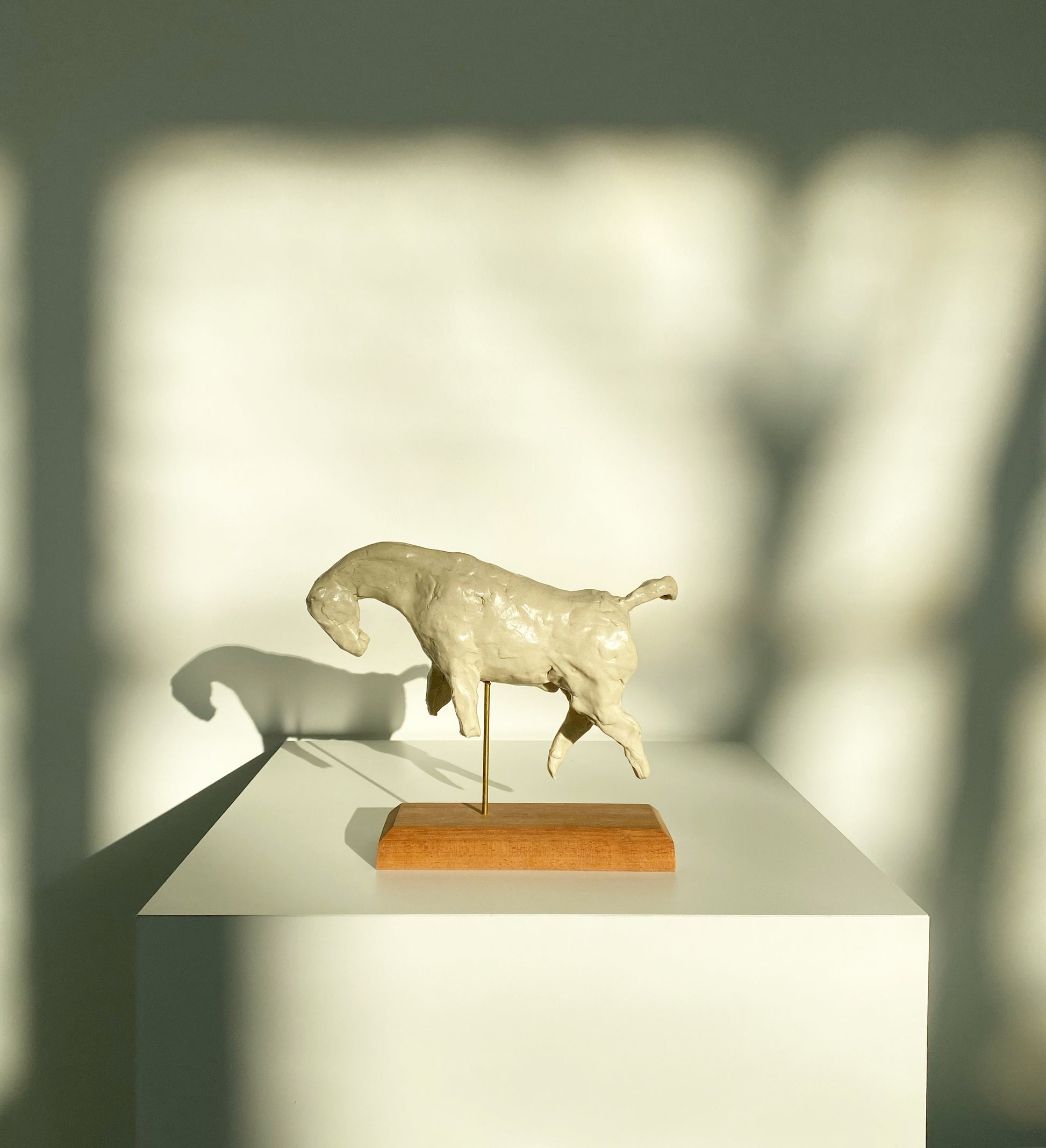 Upon recently discovering a small wax horse figure created almost two decades ago, Maggie felt ready to begin making horse sculptures again. “It was as if an idea born whilst still in art school was finally done marinating in my subconscious. Randomly coming across that little wax horse was the spark to begin sculpting the horses, the little wax figure was my Talisman.”