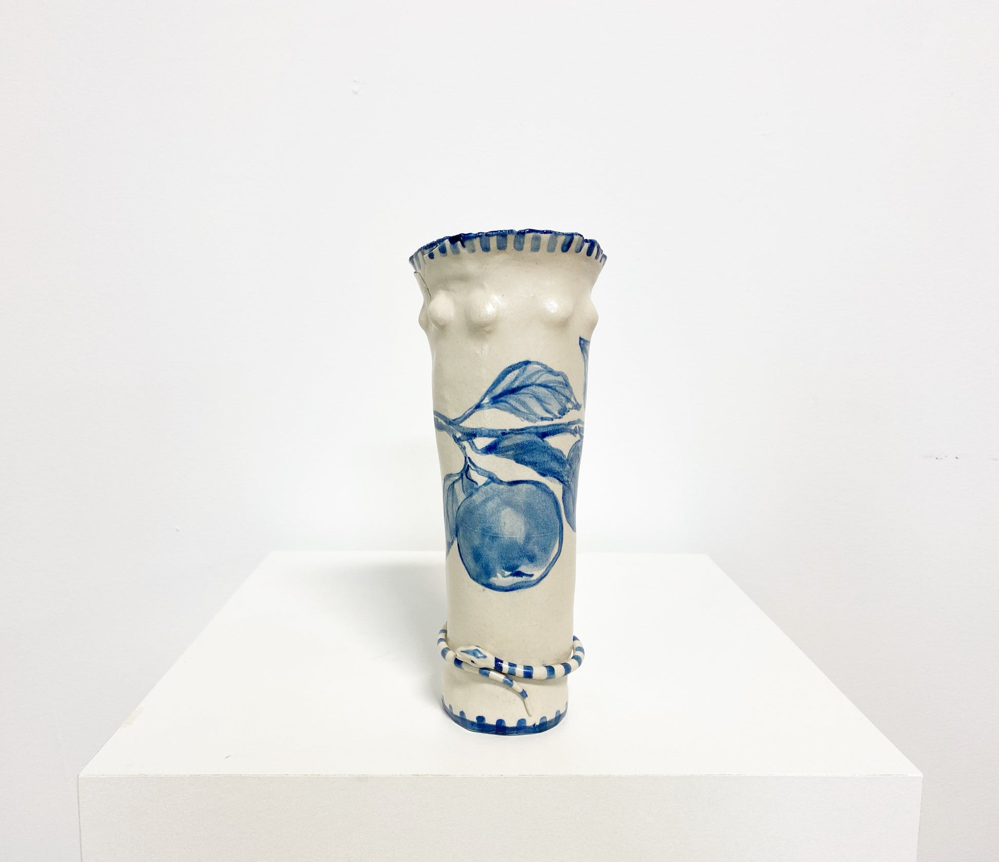 The Country Gentleman Collection by artist Maggie Robertson is a beautiful series of one-of-a-kind stoneware vessels. Each unique piece embraces the seams and irregularities of her hand-built technique complemented by intricate, hand-painted scenes of the English countryside in classic blue and white. The vessels are water tight and food safe, microwaveable and dishwasher safe; however, as they are art pieces and fragile, we would recommend hand washing.