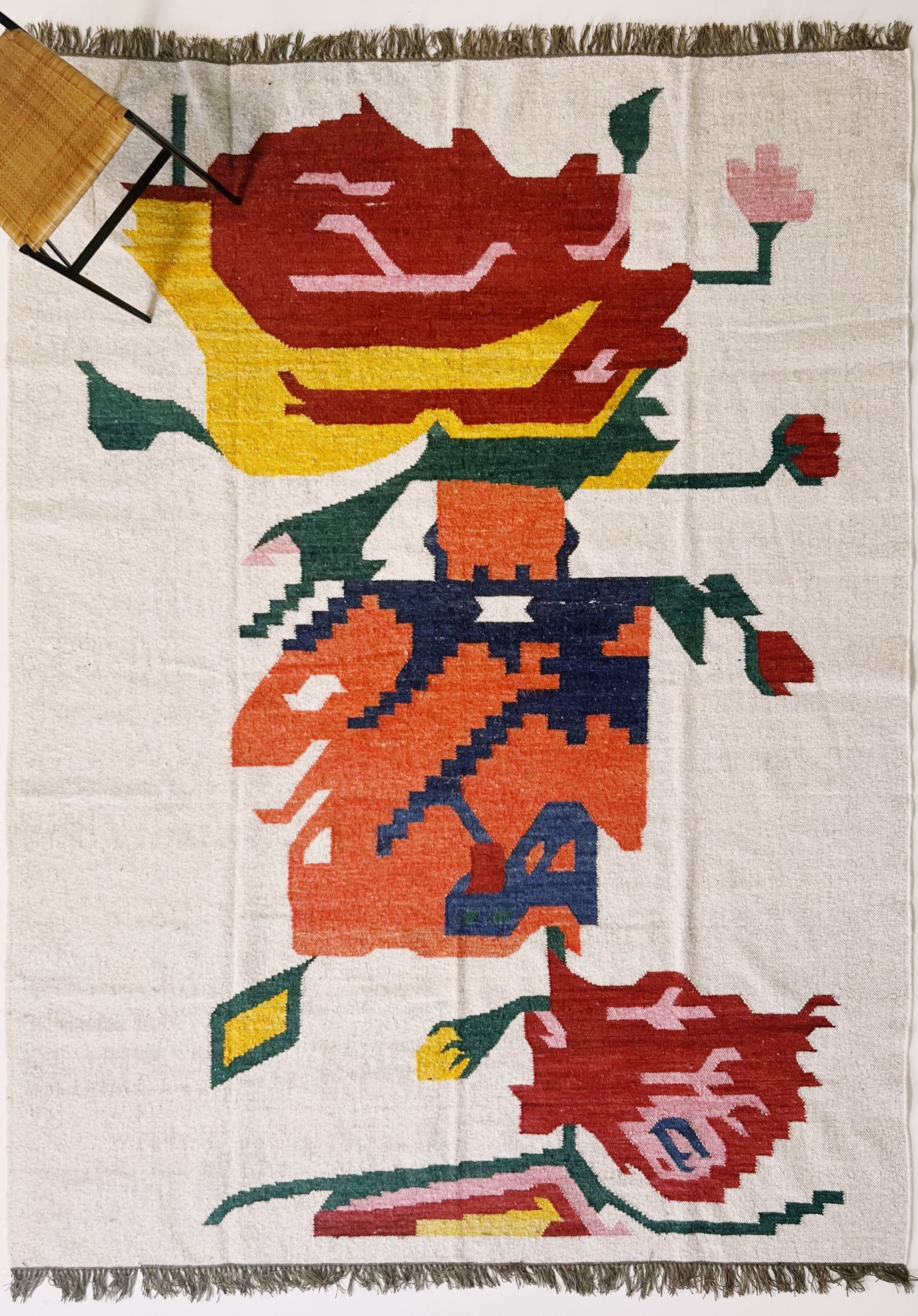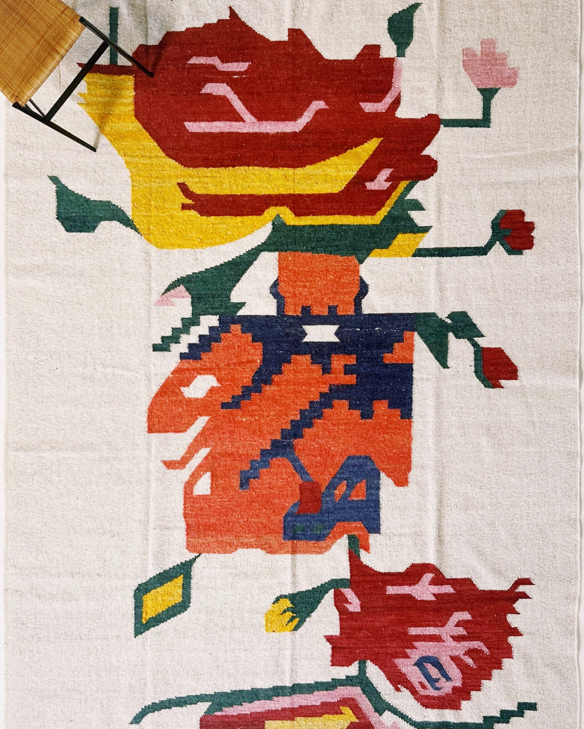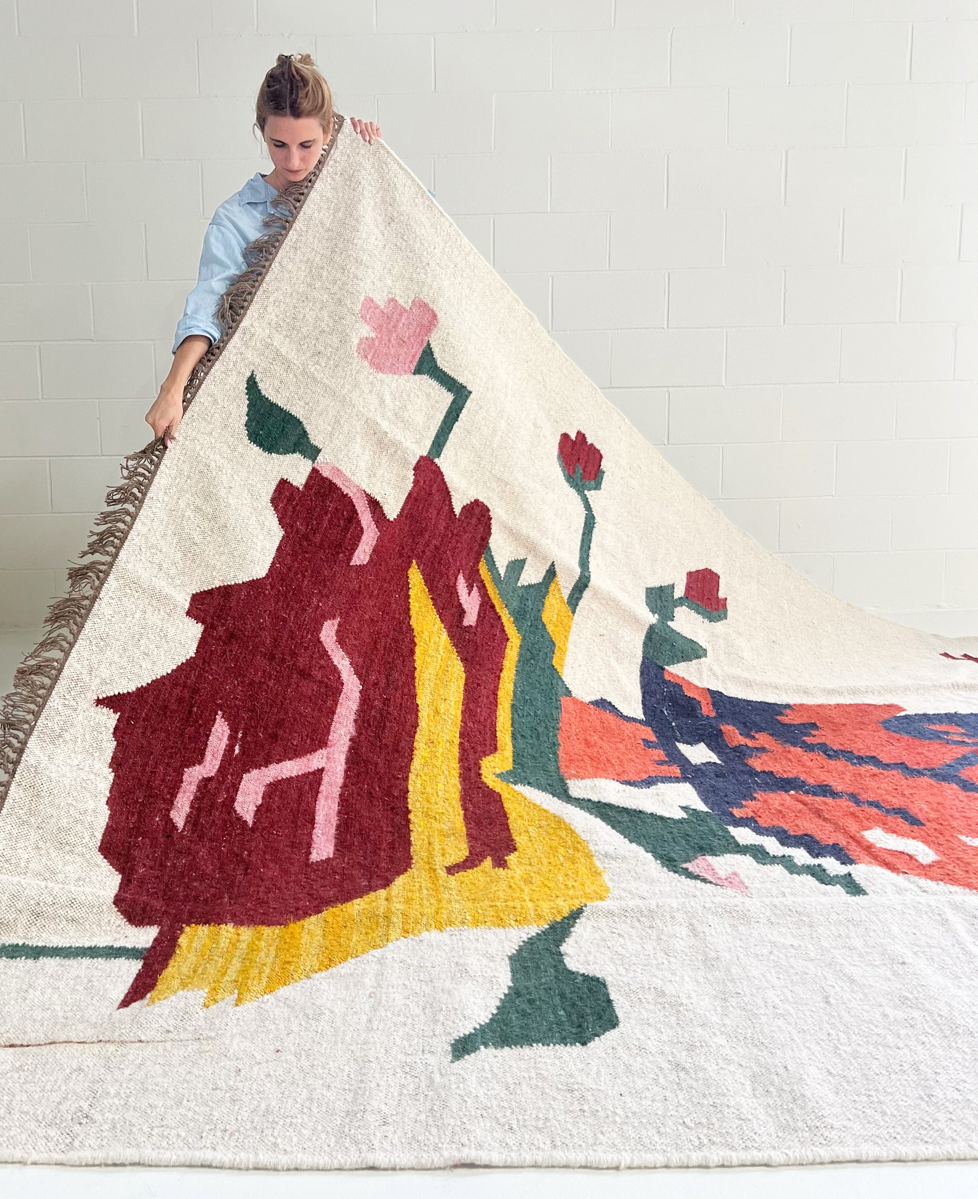 Our beautiful banana silk and jute rugs are expertly handwoven in Jaipur, India. The soft banana silk and wool combination is woven into a beautiful, floral motif, a perfect splash of color. The flat weave is perfect for layering or on its own. Available in size 8x10' and 9x12'.