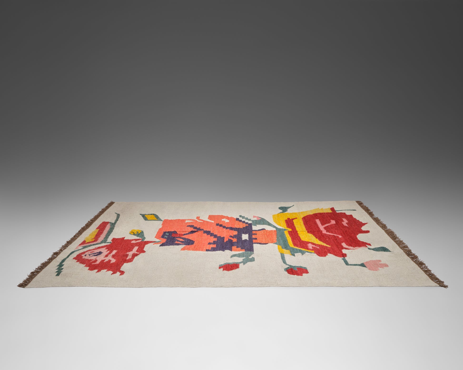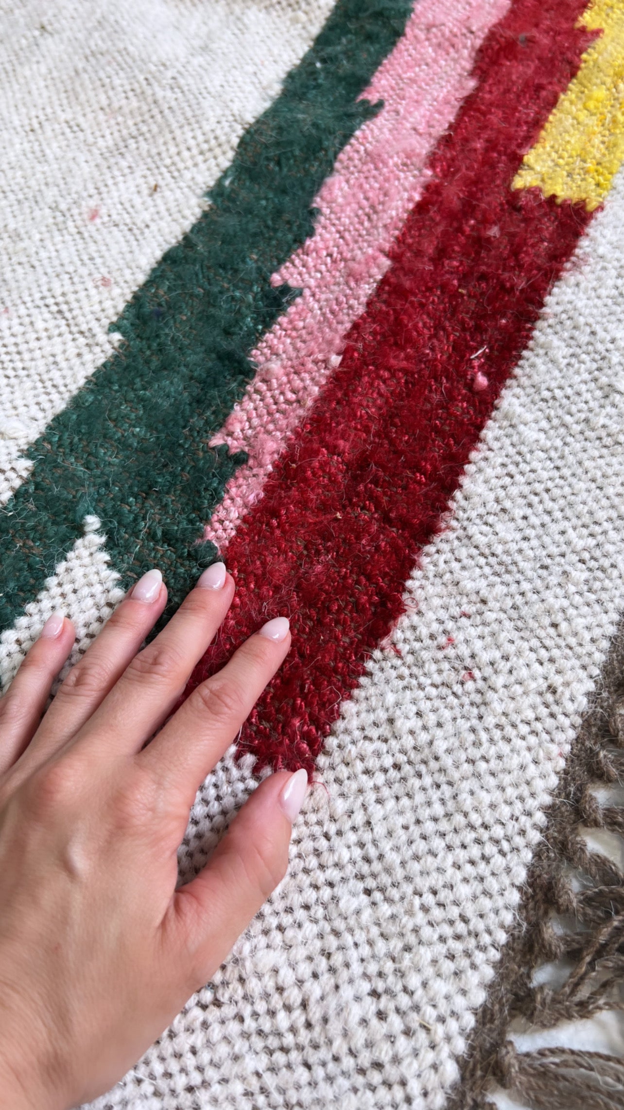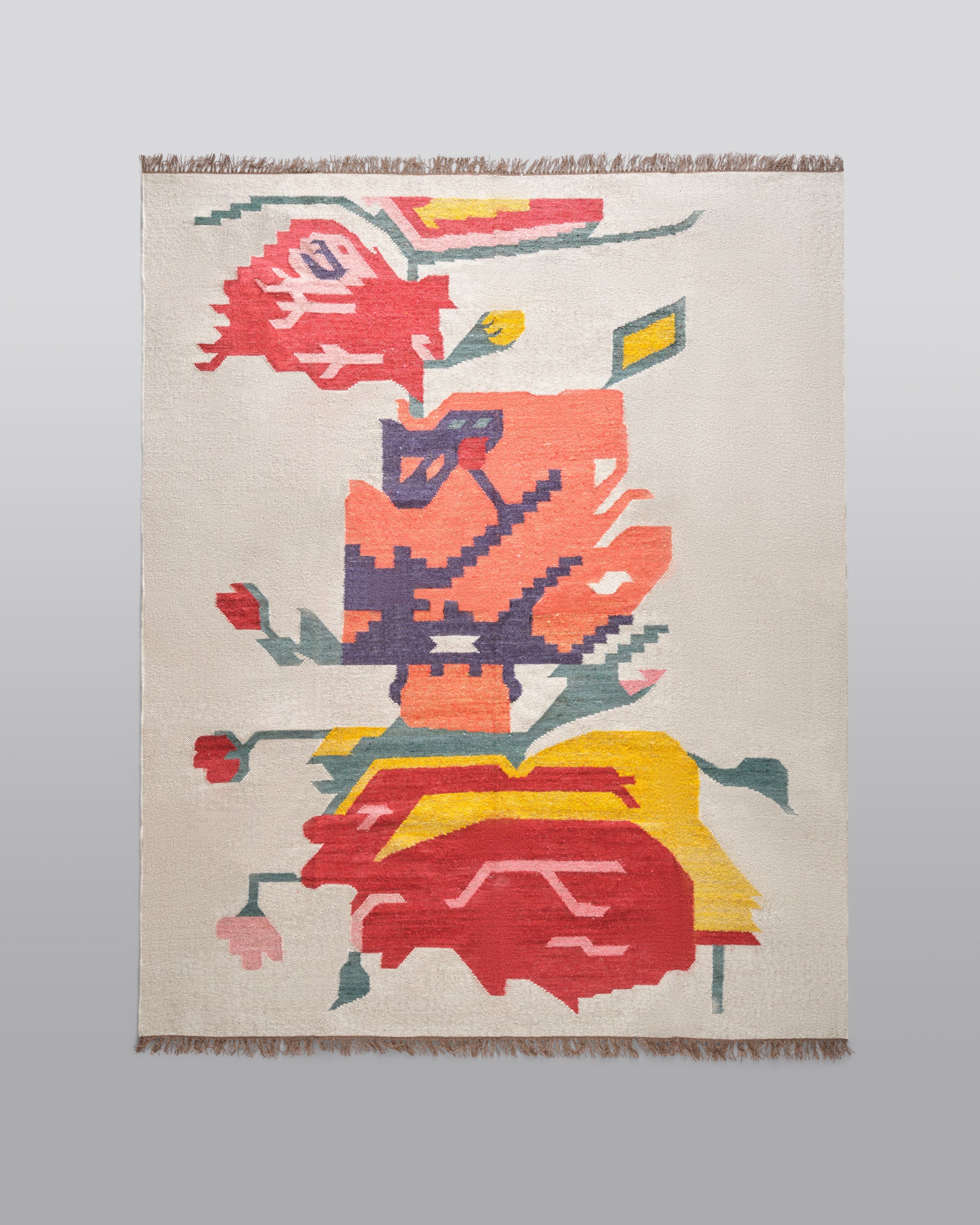 Our beautiful banana silk and jute rugs are expertly handwoven in Jaipur, India. The soft banana silk and wool combination is woven into a beautiful, floral motif, a perfect splash of color. The flat weave is perfect for layering or on its own. Available in size 8x10' and 9x12'.