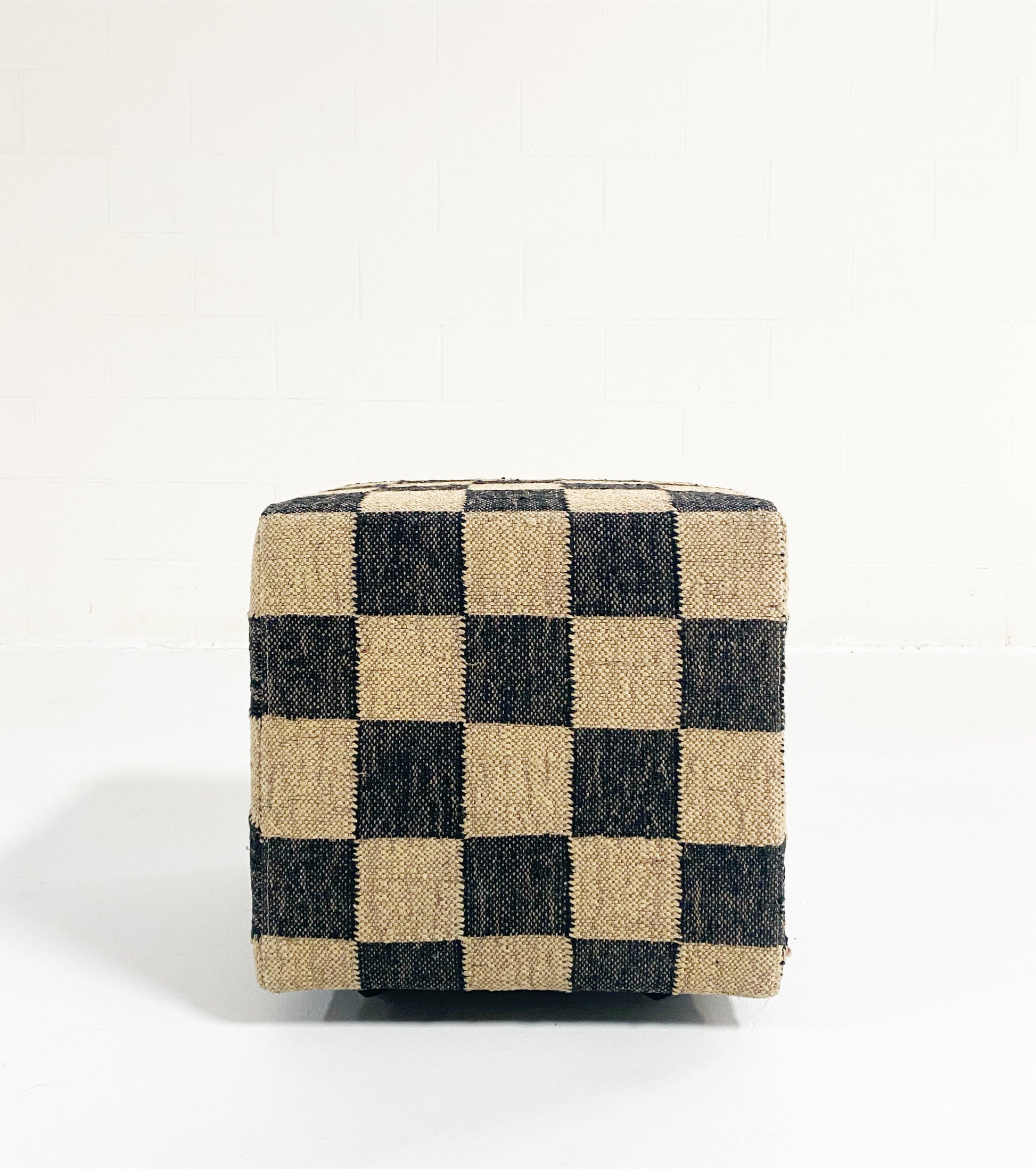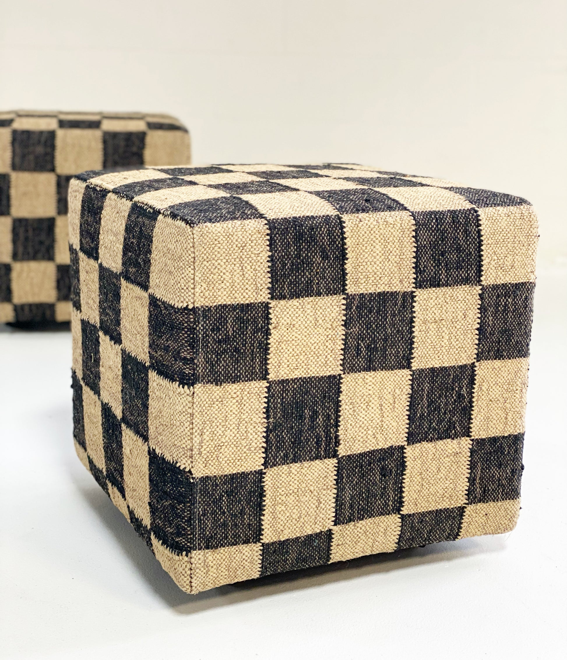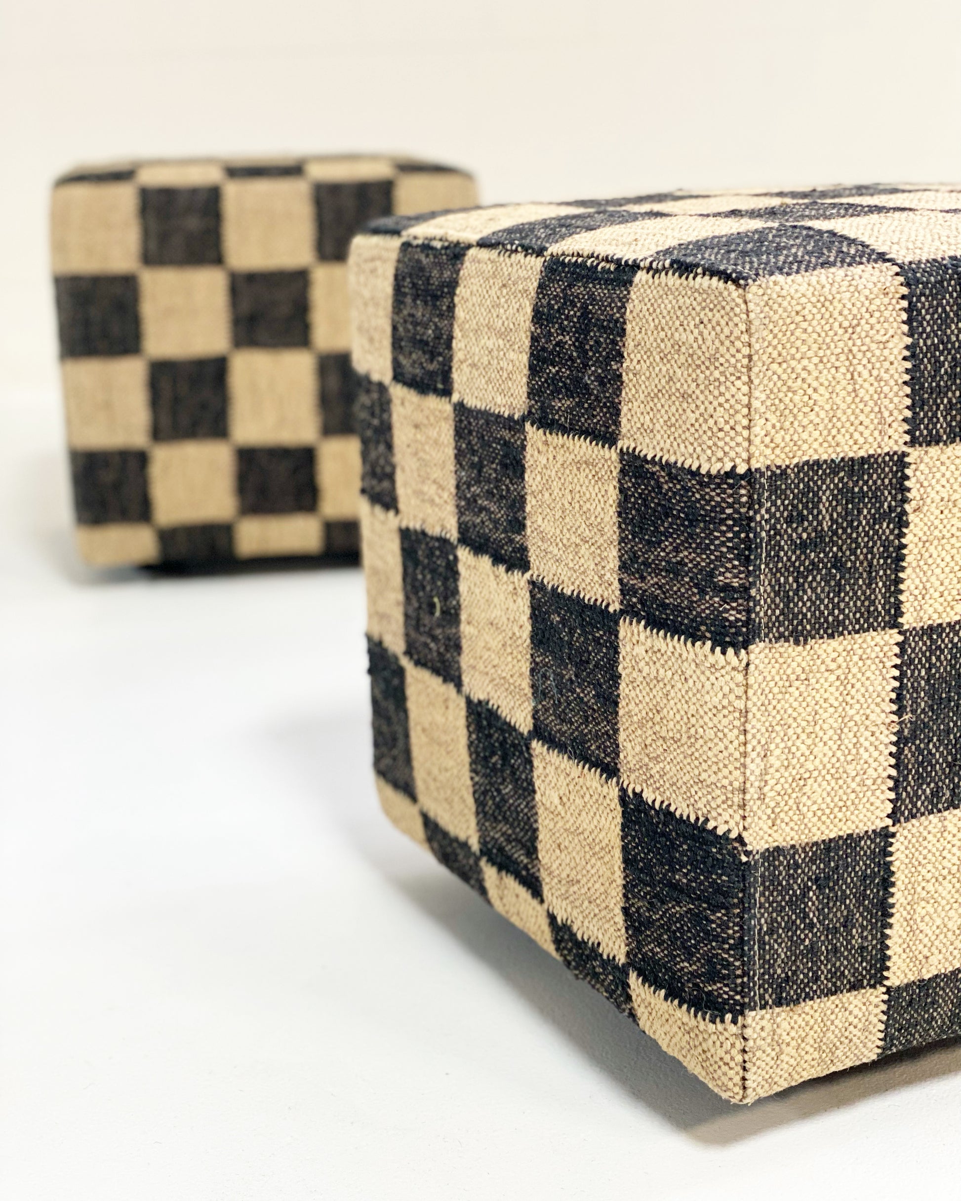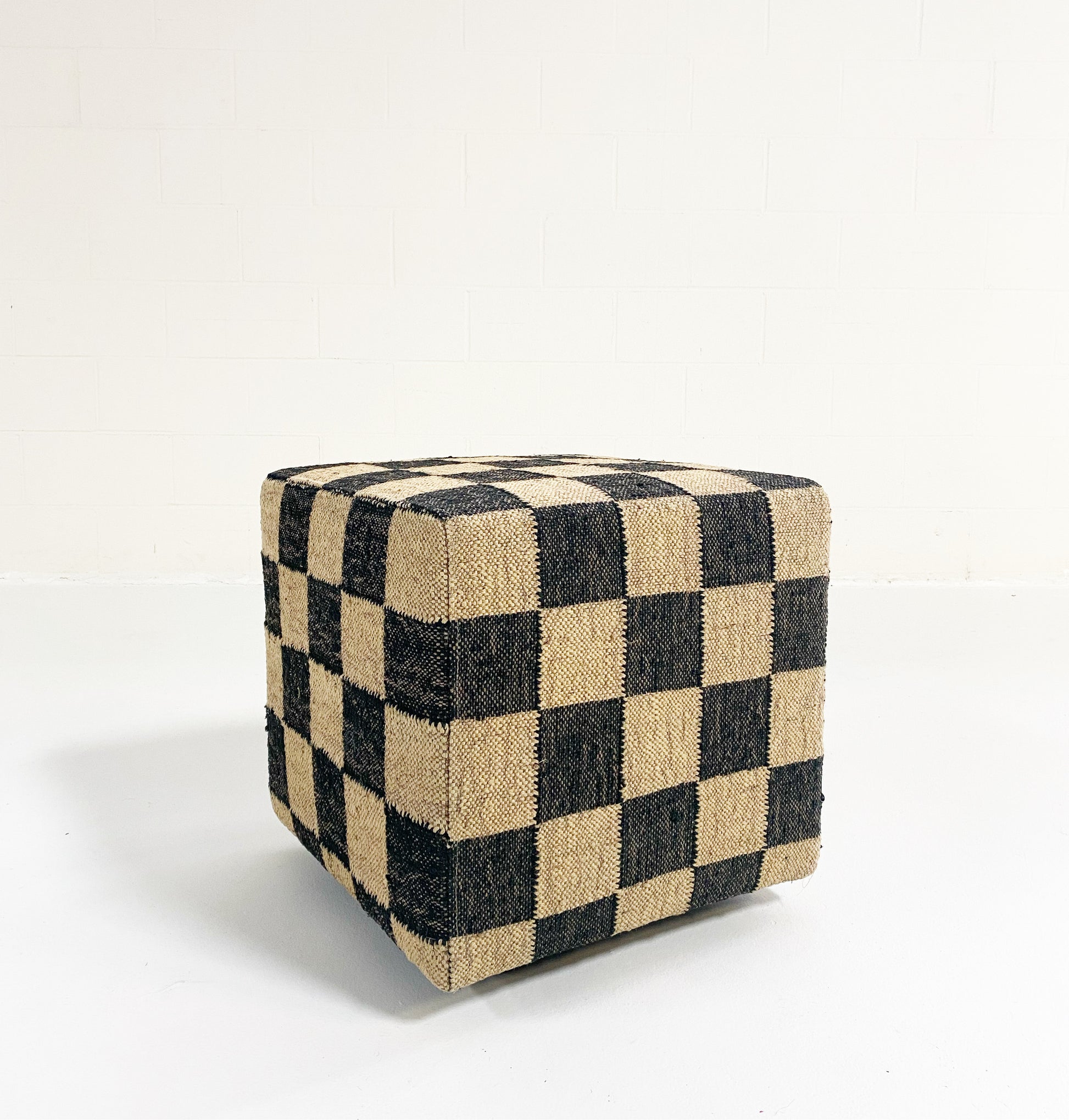 The Forsyth Checkerboard Cube is designed and handcrafted from our best-selling wool and jute checkerboard rugs. This is a versatile piece for any room adding natural texture and pattern. The perfect end table, ottoman, or extra seating. Each ottoman is completely handmade by our amazing team of master upholsterers.