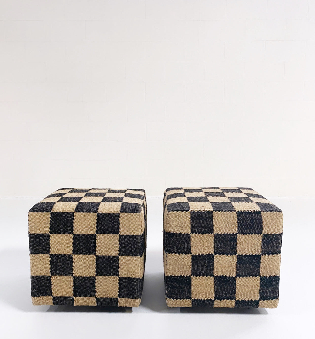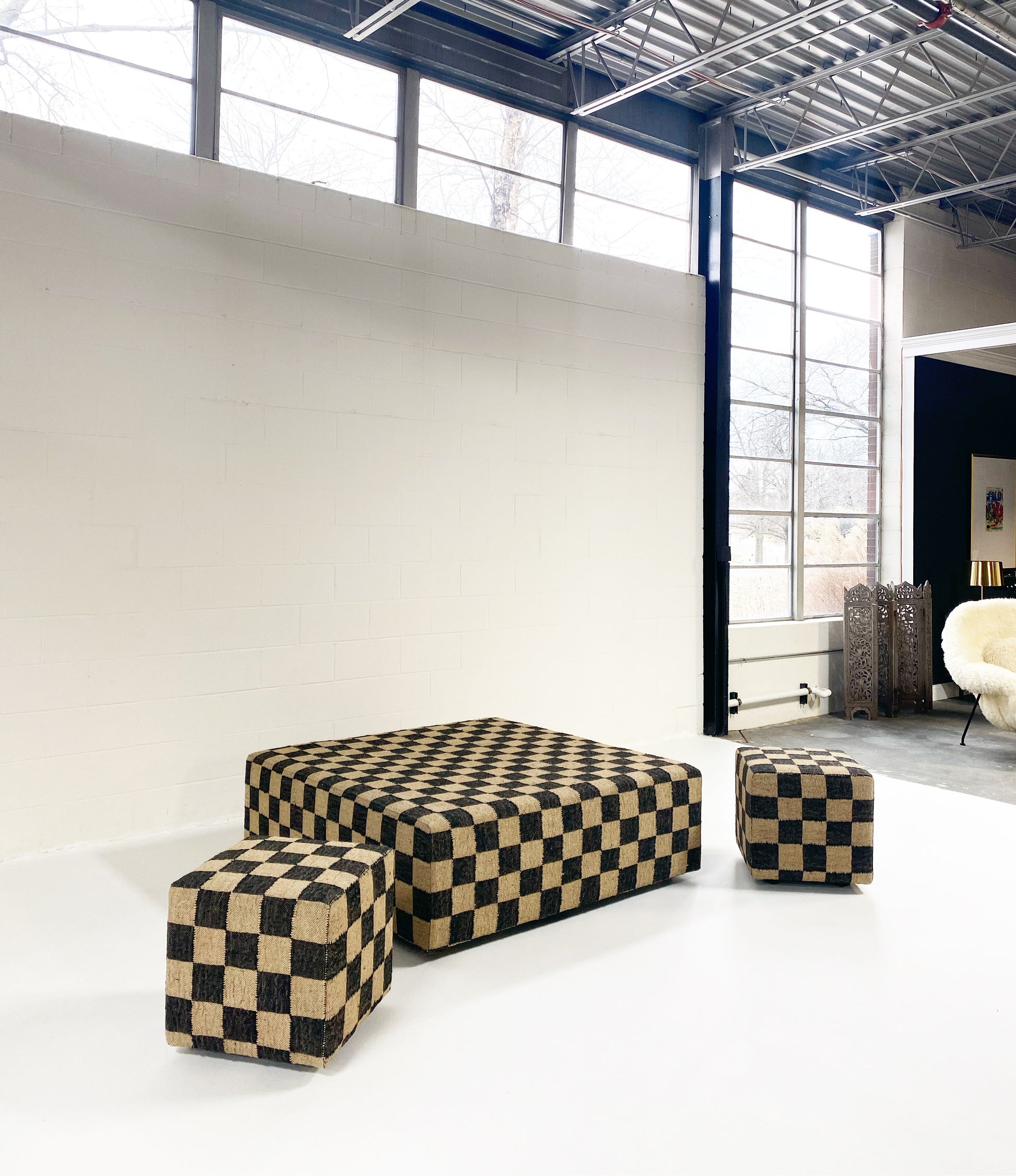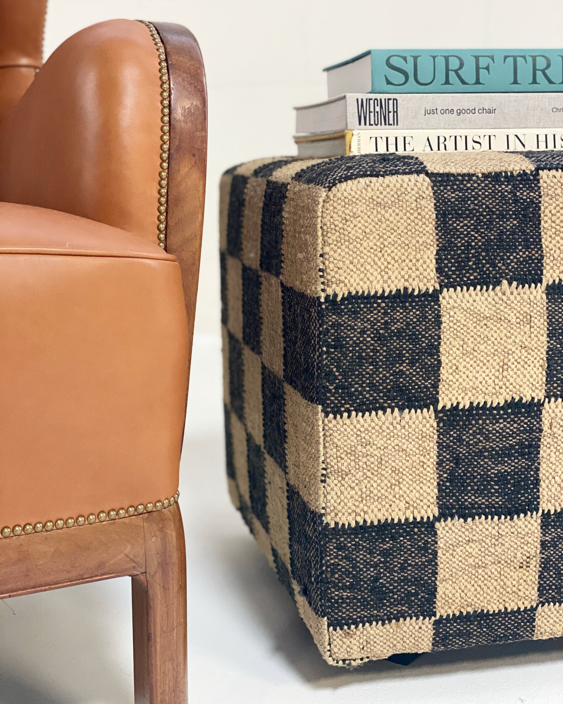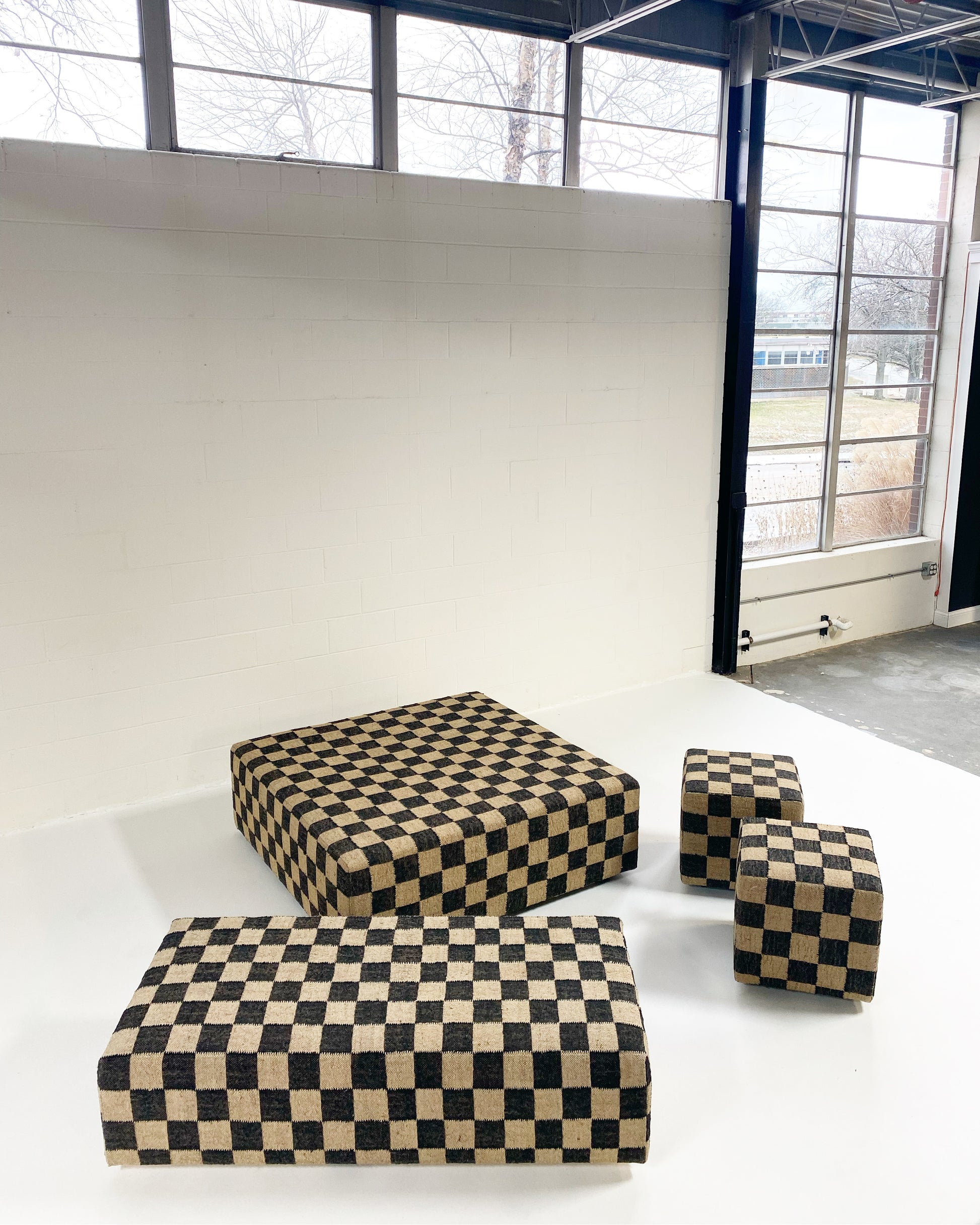 The Forsyth Checkerboard Cube is designed and handcrafted from our best-selling wool and jute checkerboard rugs. This is a versatile piece for any room adding natural texture and pattern. The perfect end table, ottoman, or extra seating. Each ottoman is completely handmade by our amazing team of master upholsterers.