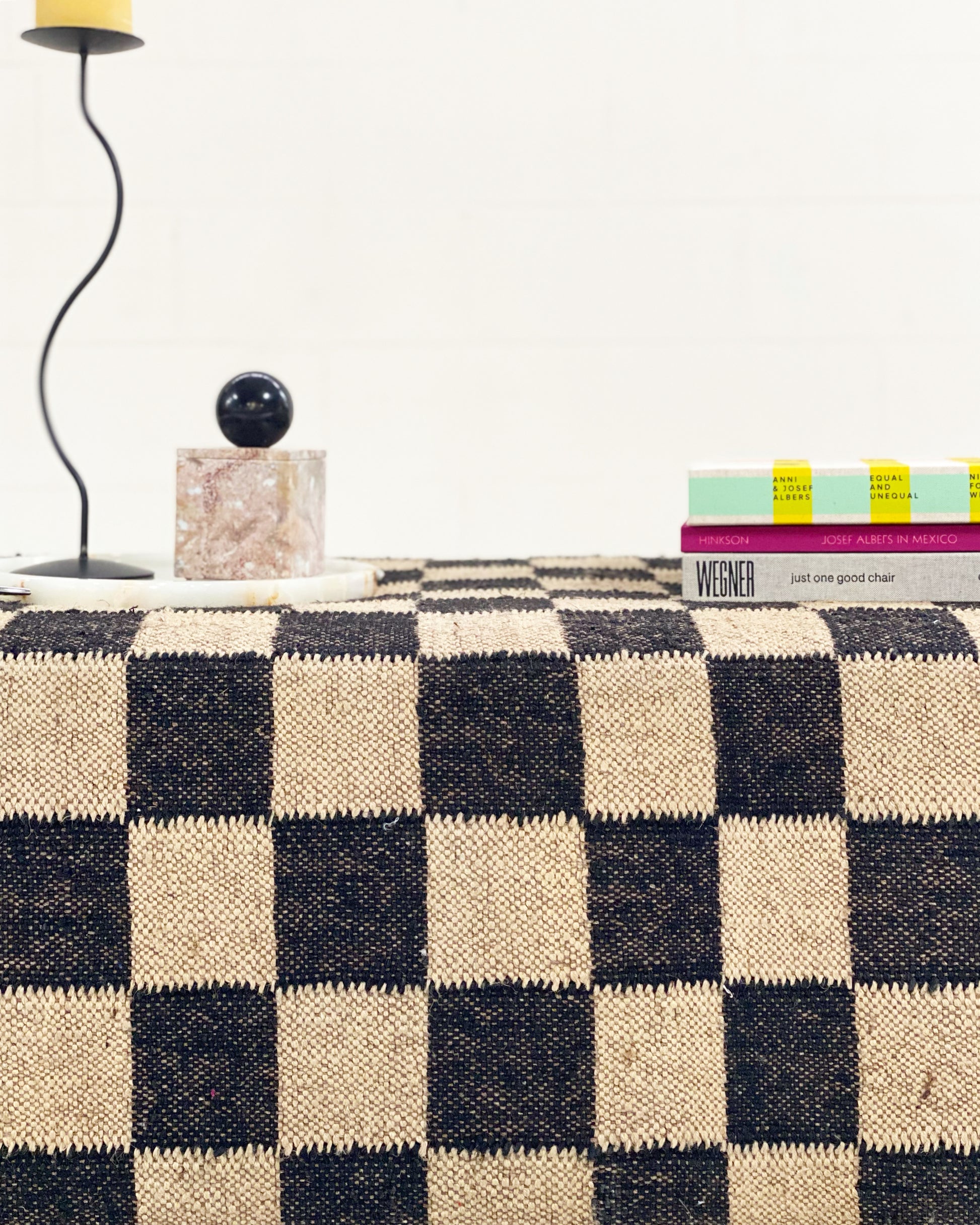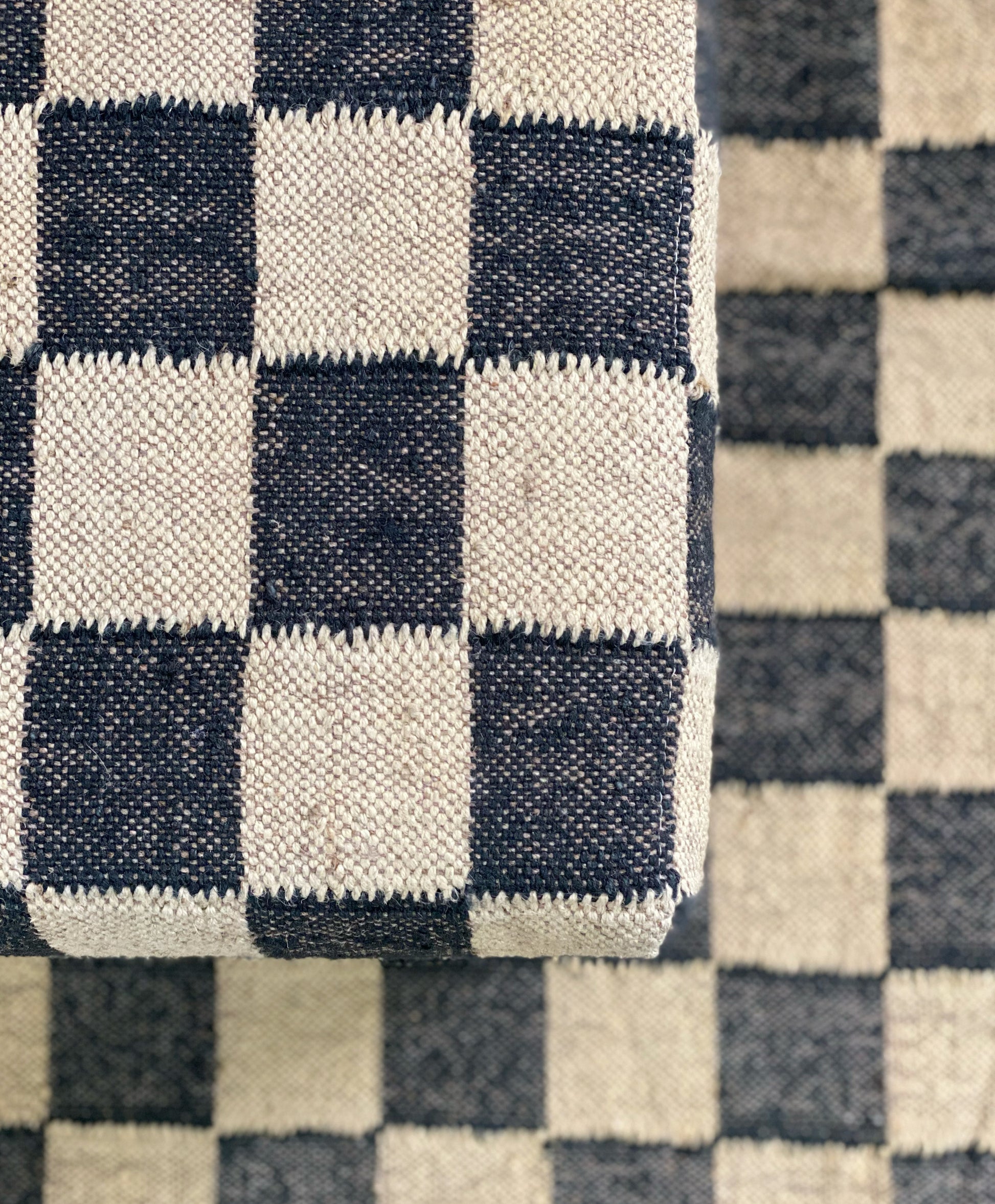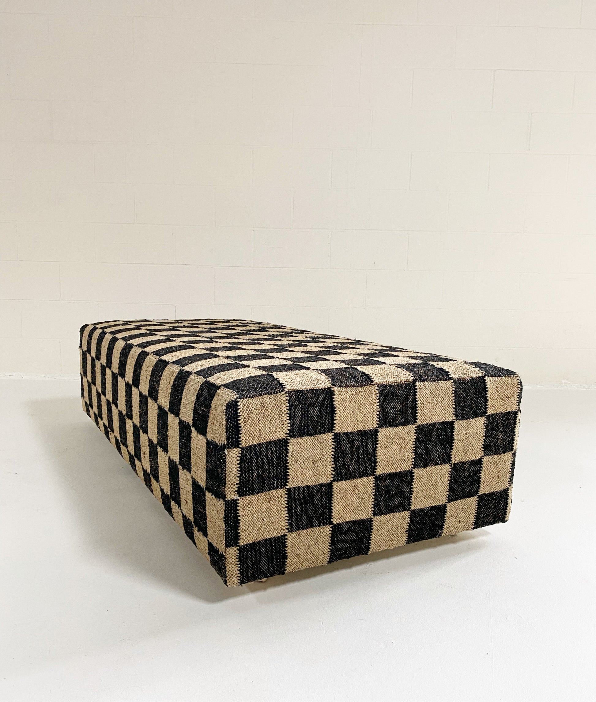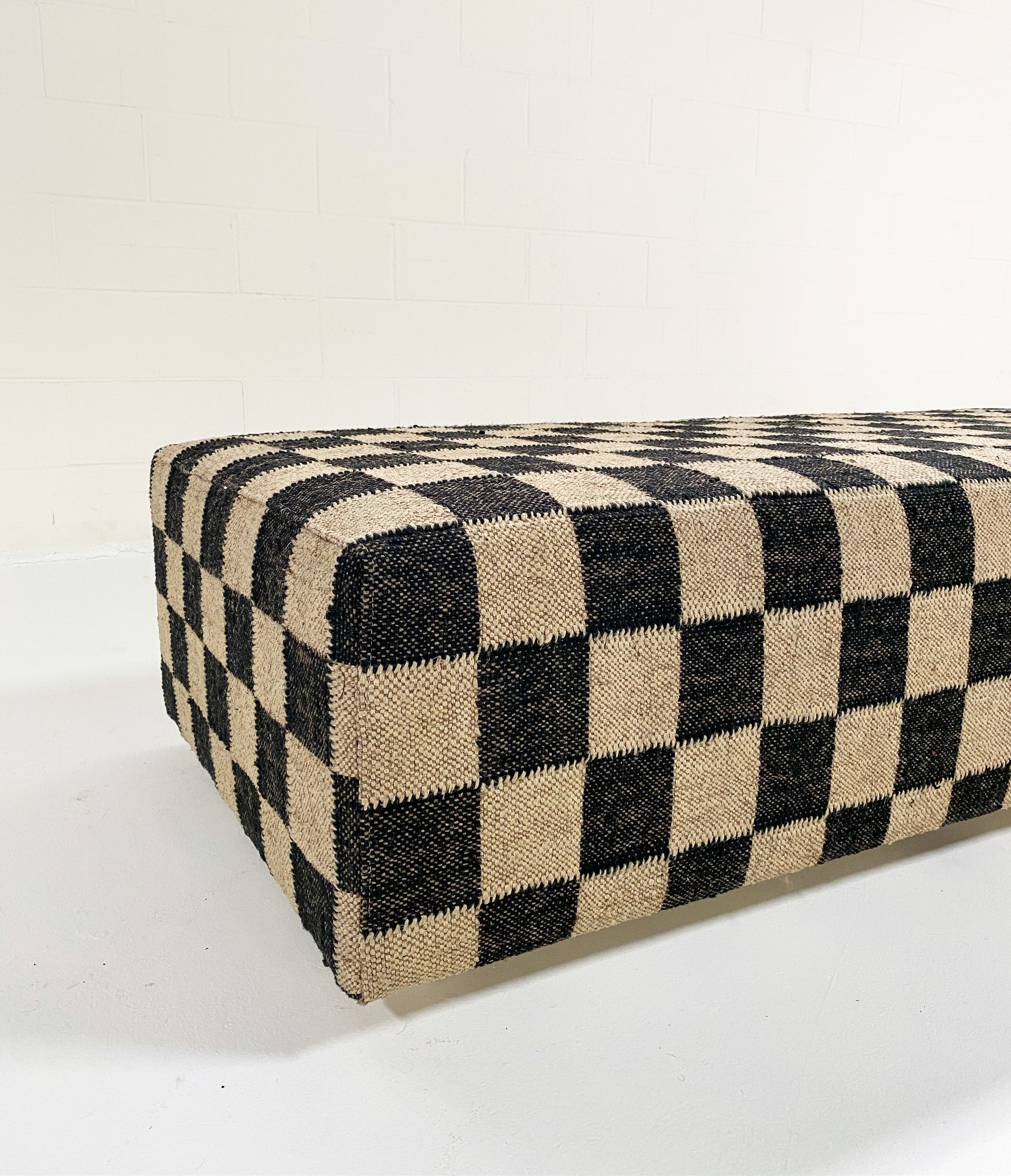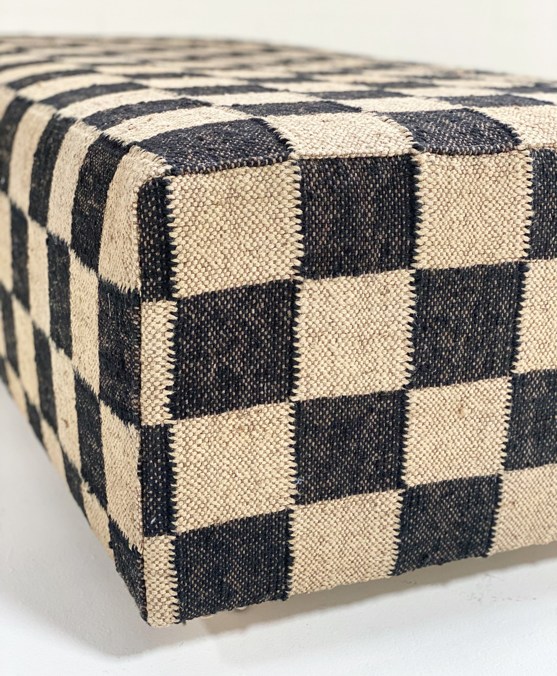 Part of the Forsyth Originals Collection. The Forsyth Checkerboard Ottoman is designed and handcrafted from our best-selling wool and jute checkerboard rugs. This is a versatile piece for any room adding natural texture and pattern. The perfect coffee table, ottoman, bench at the end of a bed, or extra seating. Each ottoman is completely handmade by our amazing team of master upholsterers.