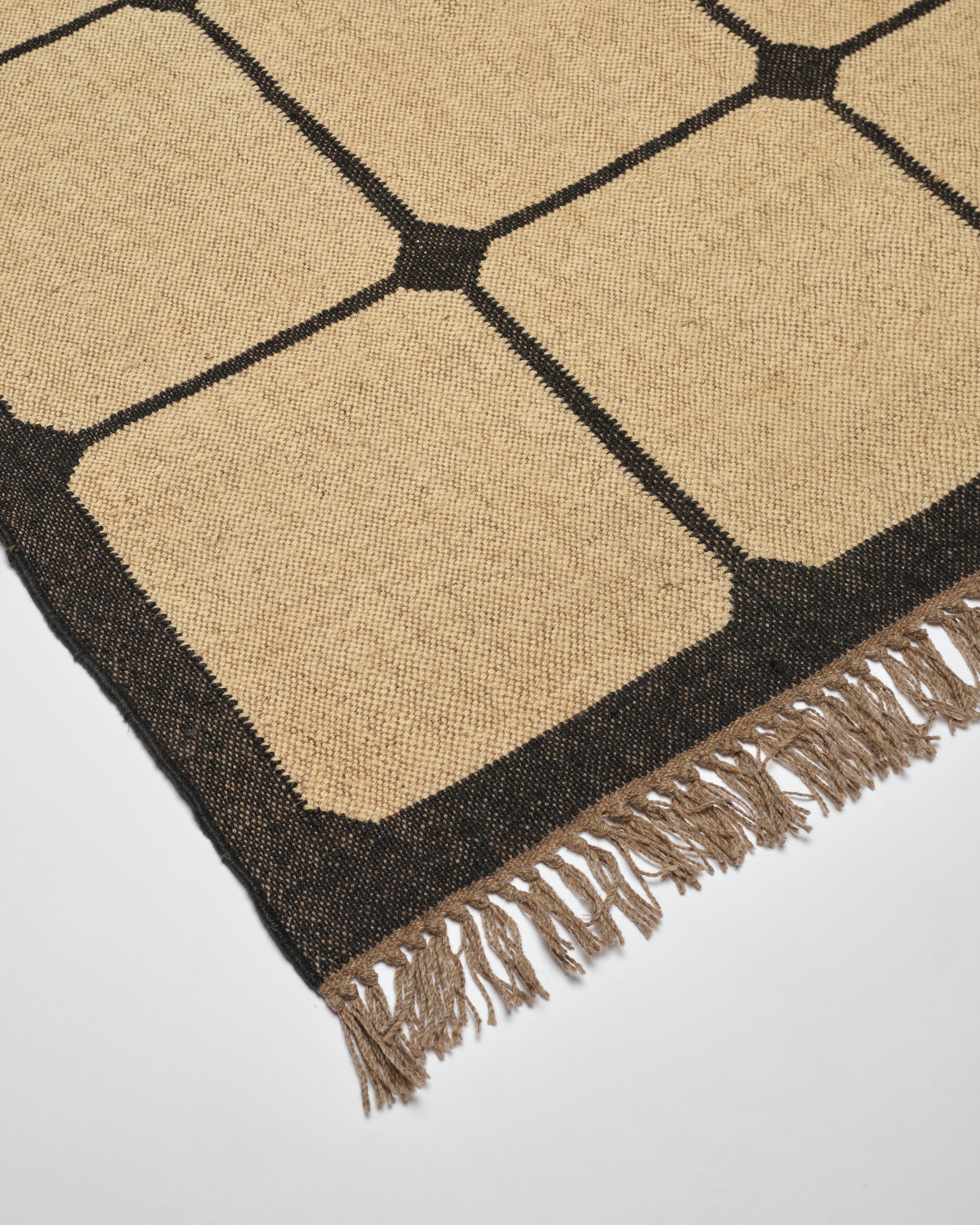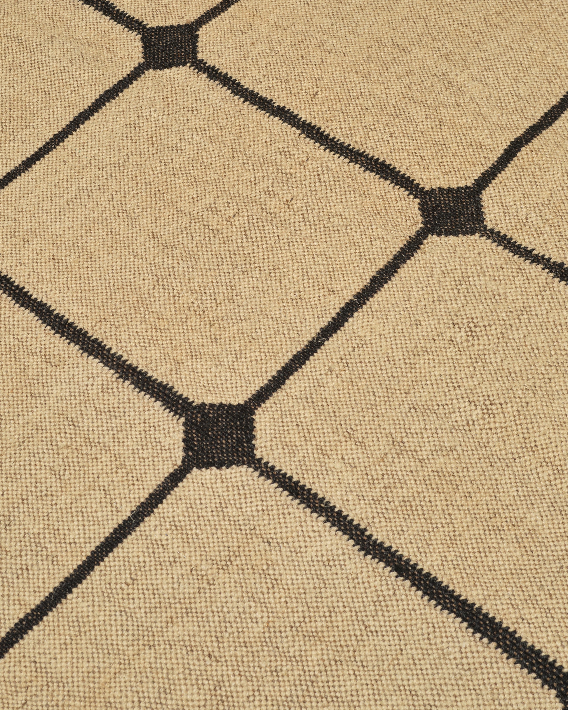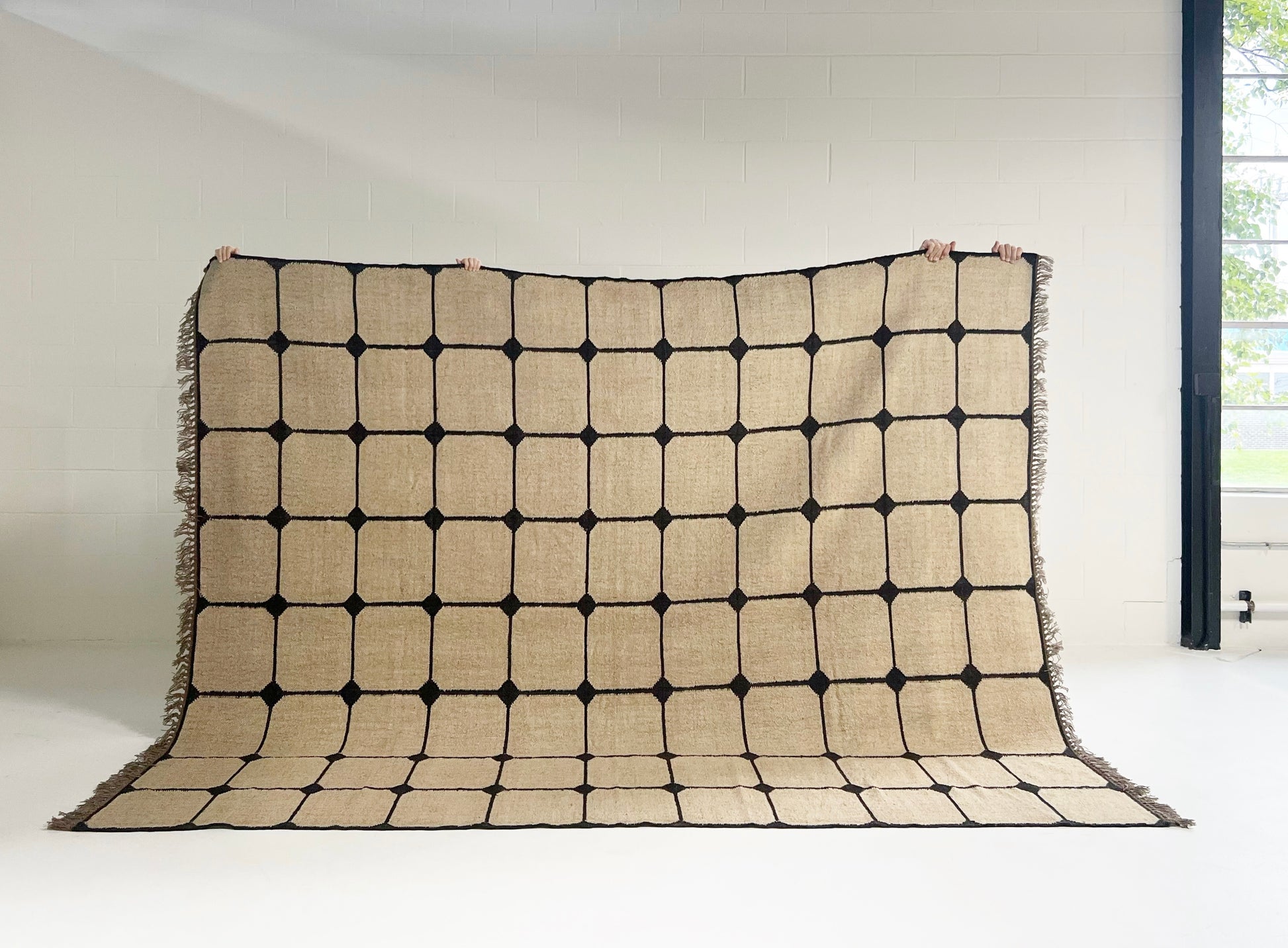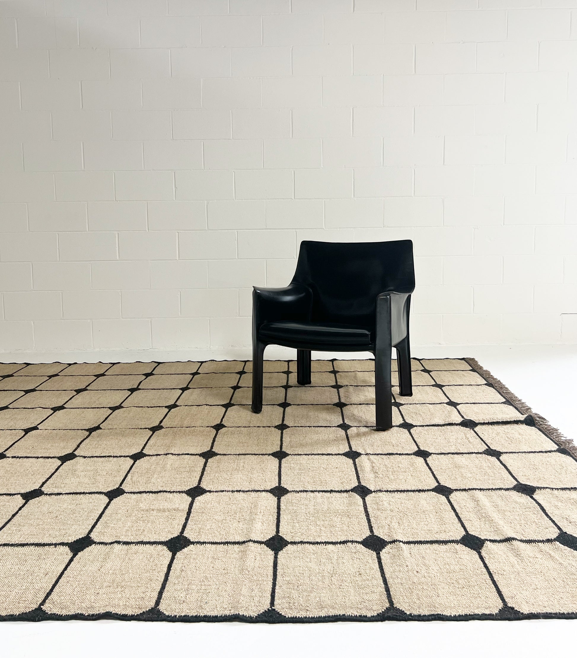 Our beautiful wool and jute checkerboard rugs are expertly handwoven in Jaipur, India. The checkerboard pattern and neutral off black & natural coloring are chic and sophisticated with a hint of bohemian cool. The flat weave is perfect for layering or on its own. Available in sizes 8x10' and 9x12'
