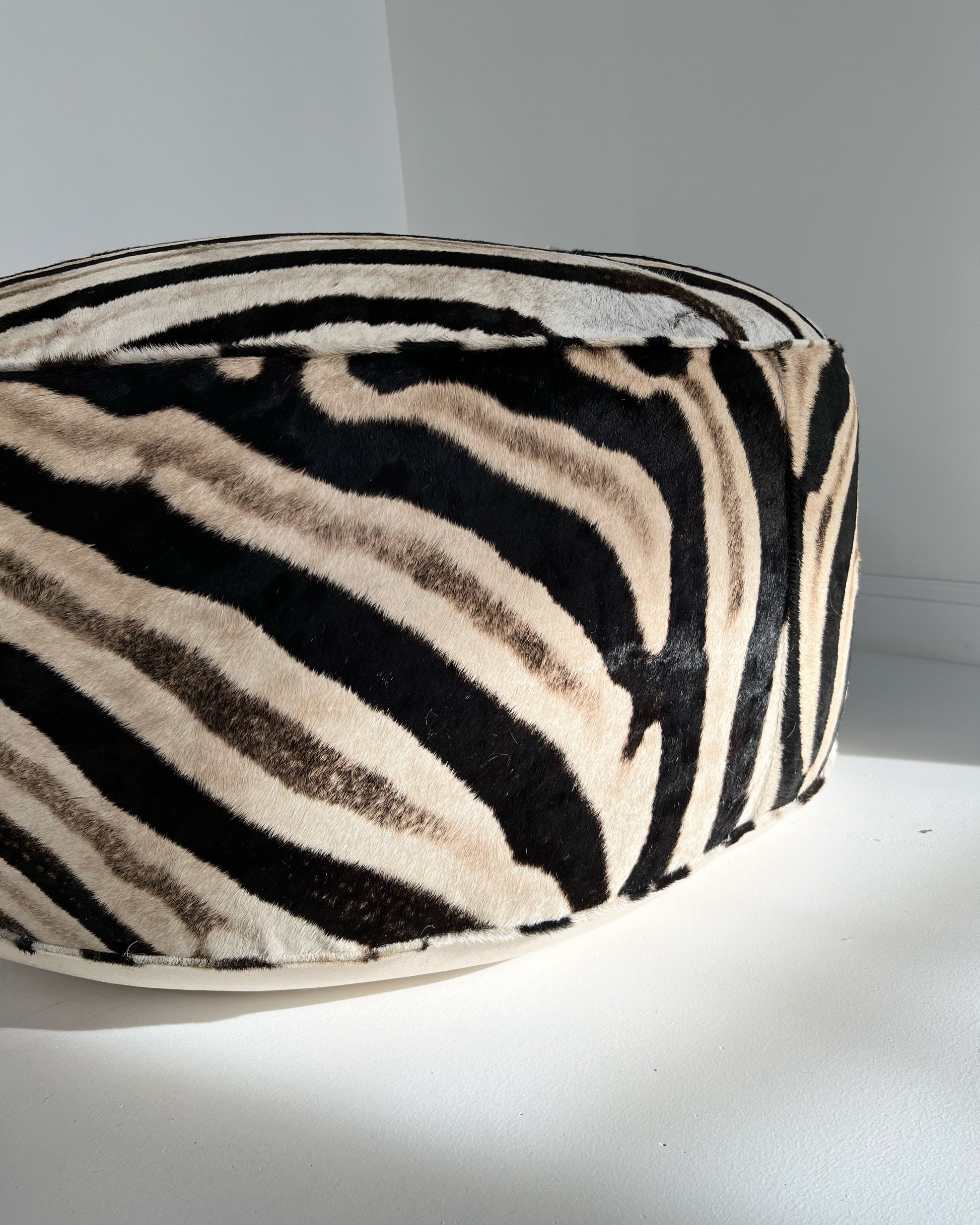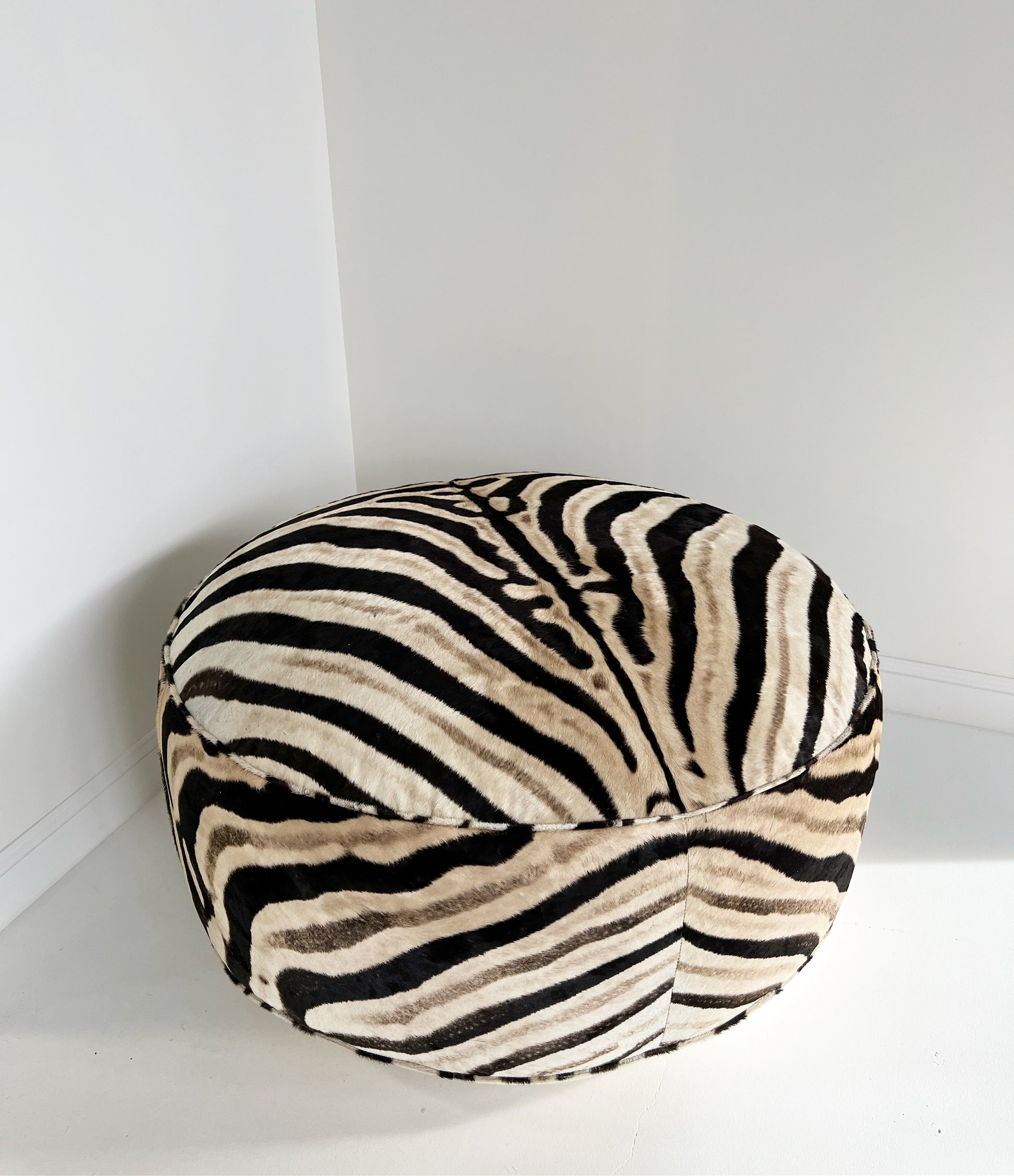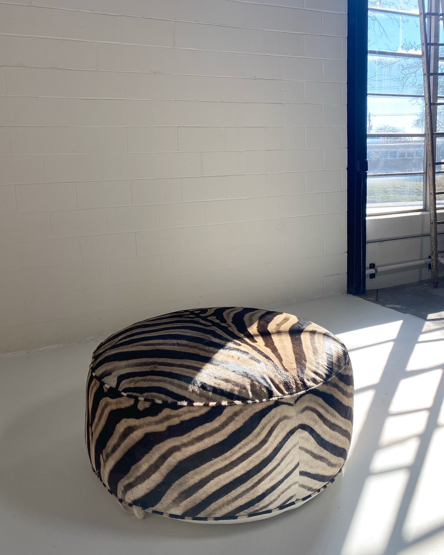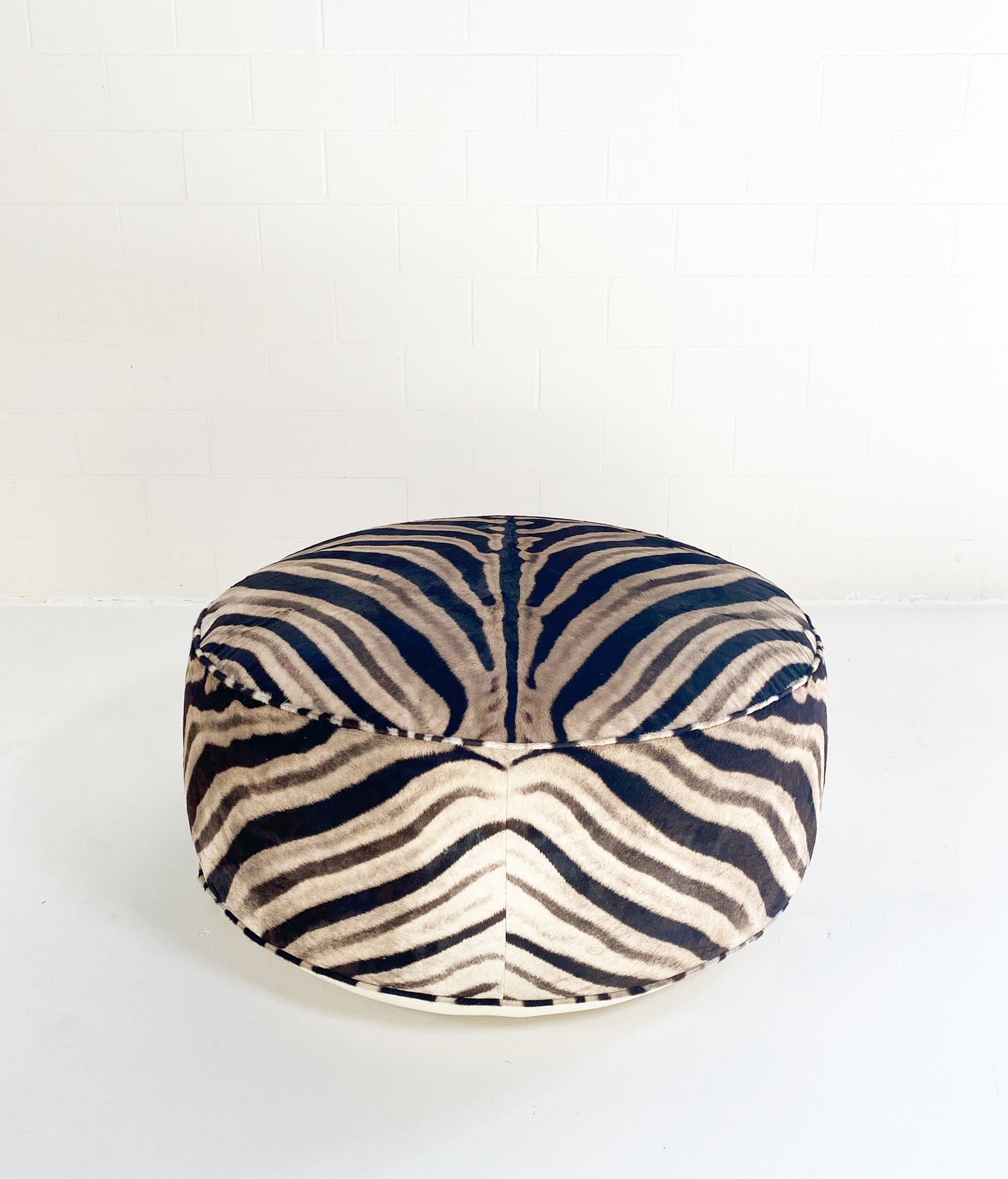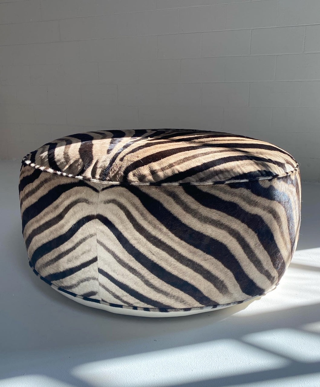 Part of the Forsyth Originals collection. This large, round ottoman is so versatile. It can be used as a large coffee table - just put a big tray on it - and of course a large piece for extra seating. The base is made up of foam to hold the nice structure and the top is all feathers for a comfy, squishier look and feel. Still firm enough to hold a tray for a coffee table.