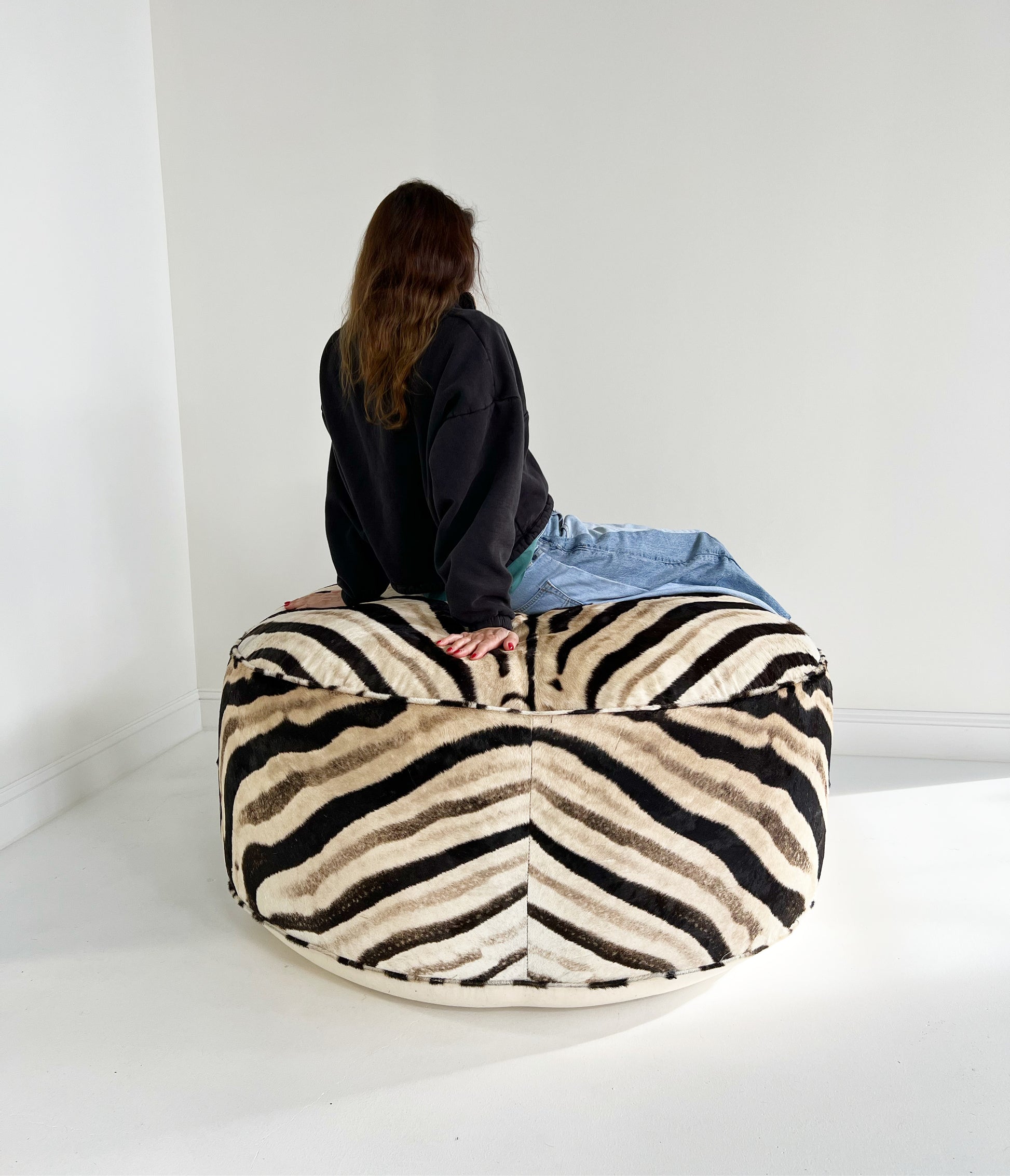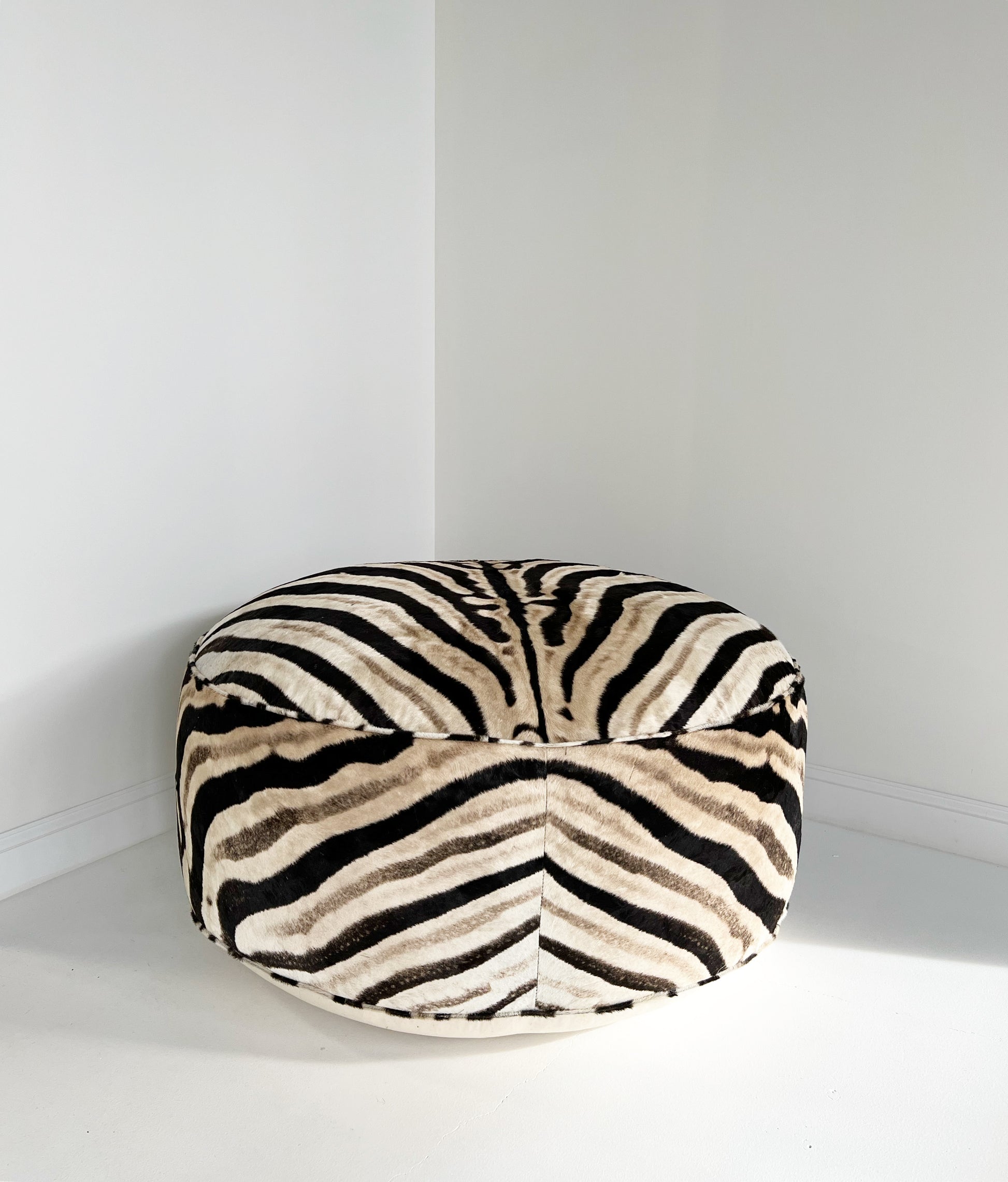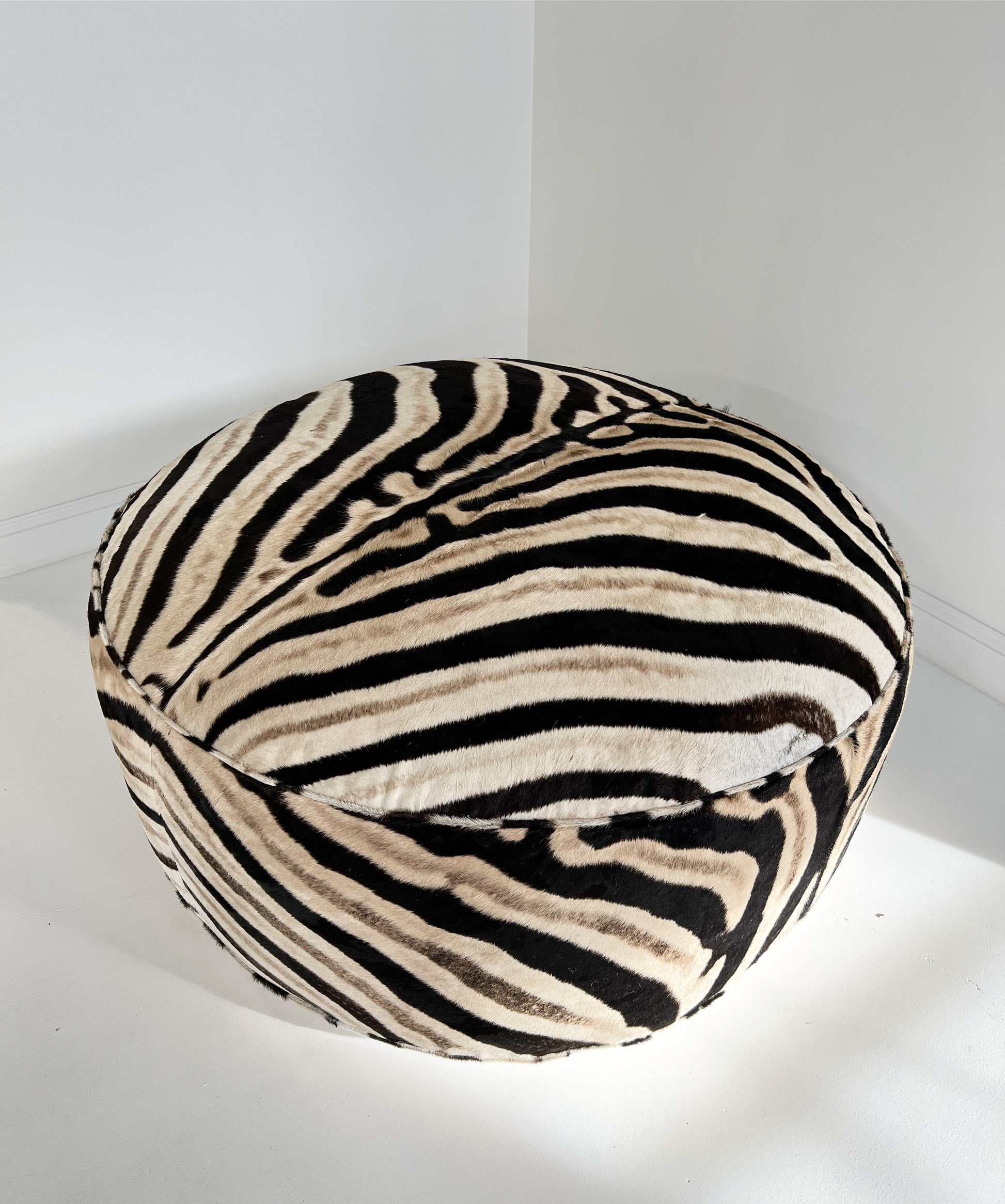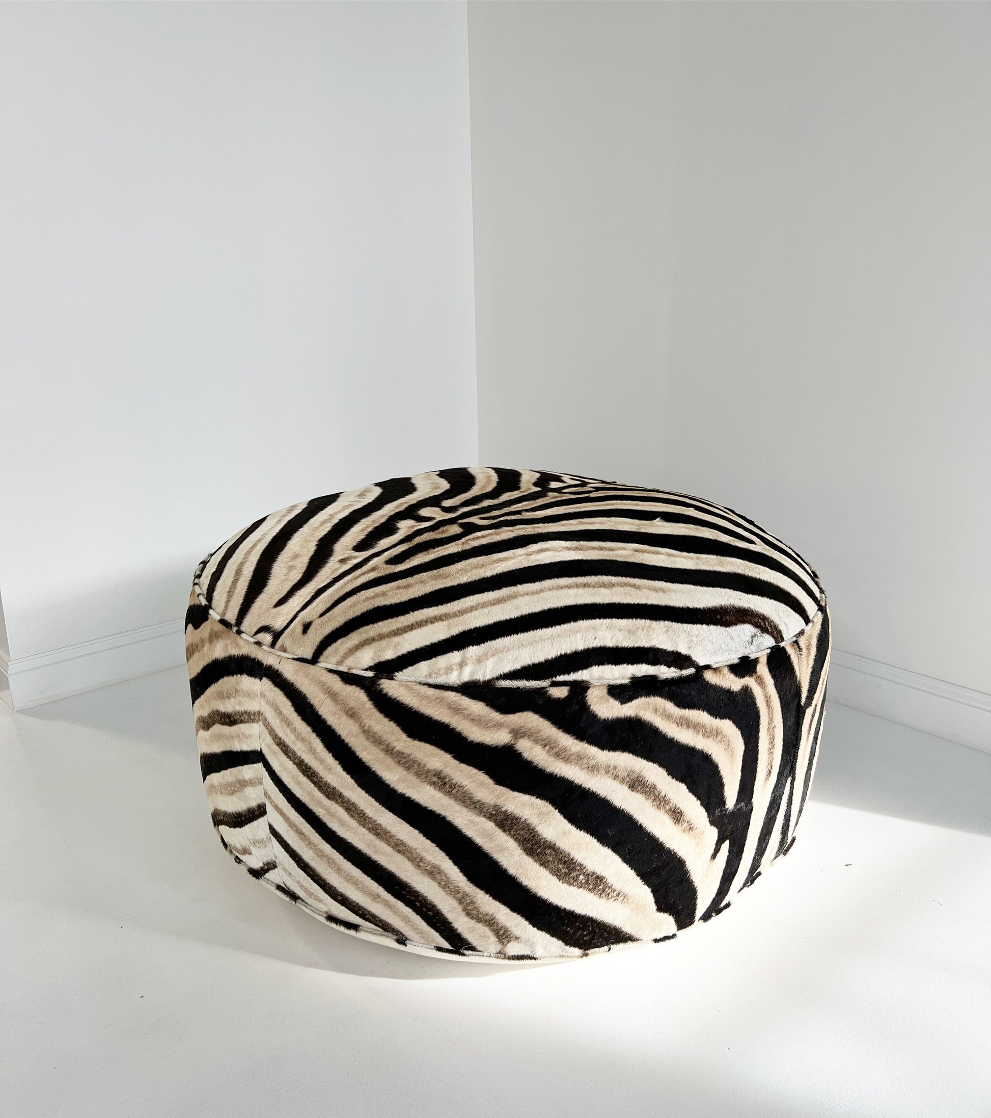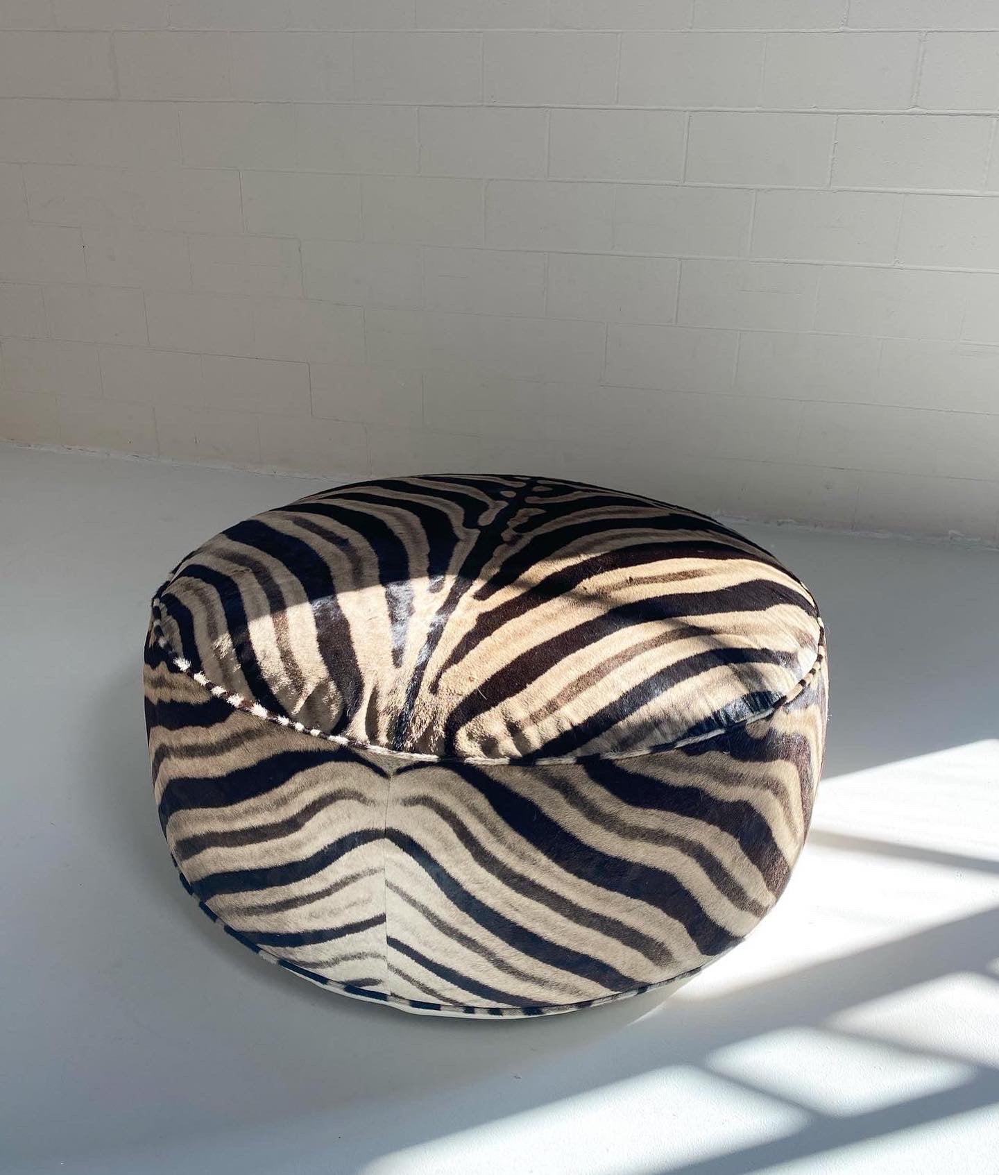 Part of the Forsyth Originals collection. This large, round ottoman is so versatile. It can be used as a large coffee table - just put a big tray on it - and of course a large piece for extra seating. The base is made up of foam to hold the nice structure and the top is all feathers for a comfy, squishier look and feel. Still firm enough to hold a tray for a coffee table.