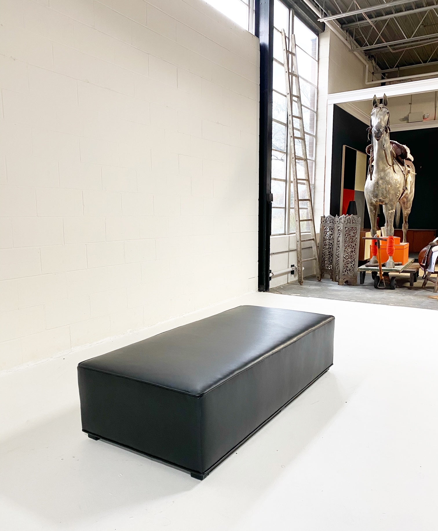 Custom made to order. Please allow 10 to 12 weeks. Custom sizes available. The ottoman can be made completely bespoke to meet your design needs. If you are interested in a different size for your space, just ask.