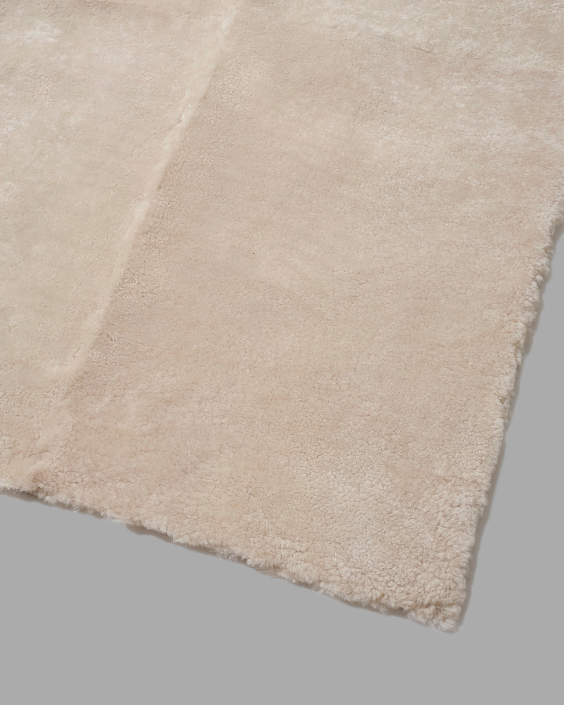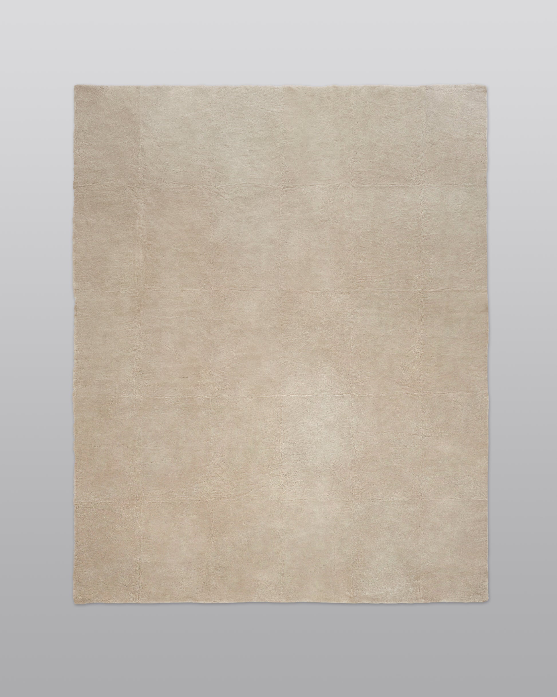 Our beautiful large shearling rug is crafted in Argentina of luxurious shorn sheepskin in a 'patchwork' design. Available in a butter cream color and finished with suede back.