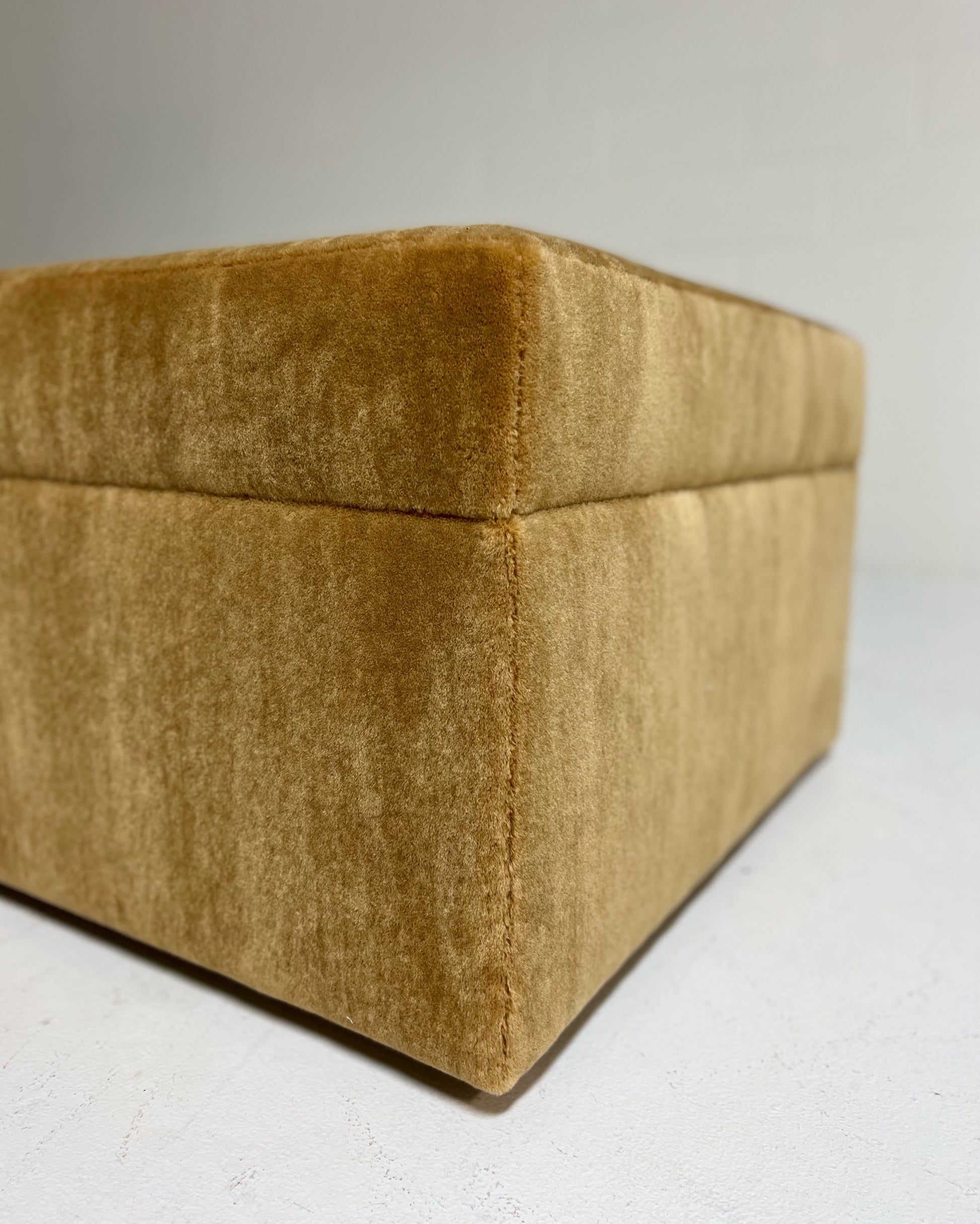 Also note, the ottoman can be made completely bespoke to meet your design needs. If you are interested in a different size or color for your space, just ask - we can custom make any size you need in a variety of colors and materials. Example shown is Pierre Frey Teddy Mohair in Miel colorway.