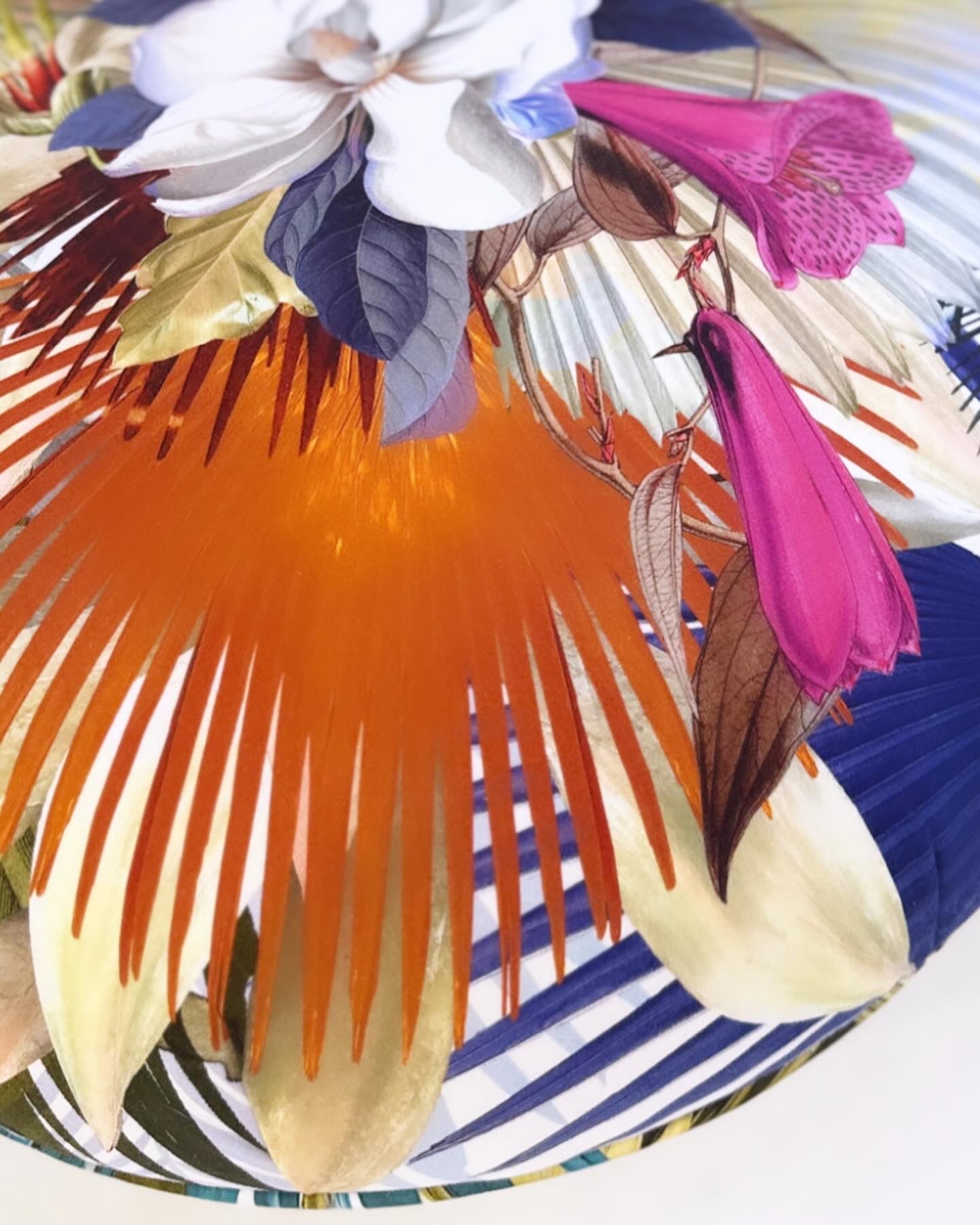 Shown in a Christian Lacroix's 'Oiseau de Bengale Camelia,' a fantastic imagining of flora, fauna, print and palm, treated in the quintessential Christian Lacroix style with extraordinary detail. This fabric is digitally printed onto a fine cotton.