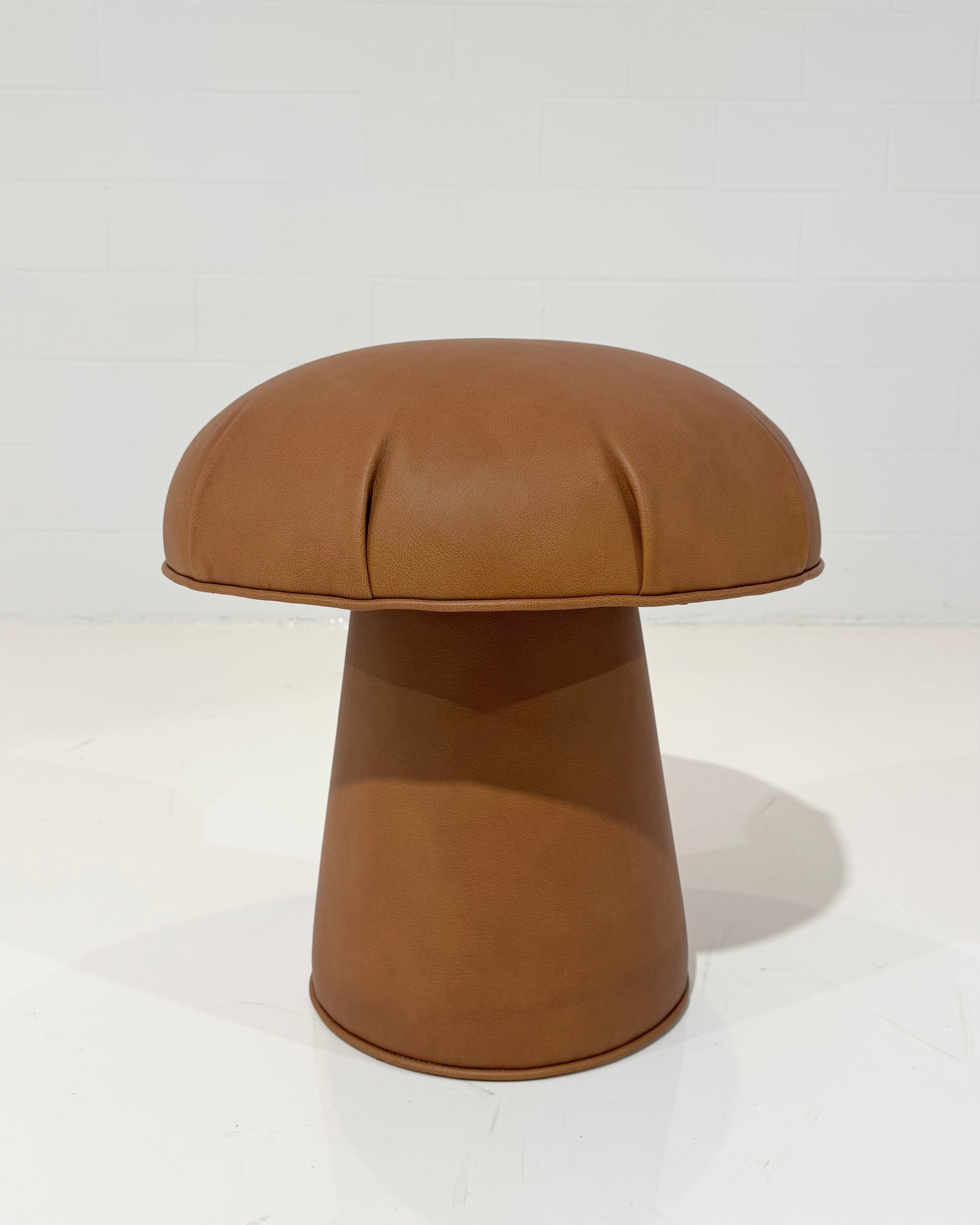 Shown in a beautiful brown goatskin leather from Howe London. Interested in a different color or fabric? The mushroom pouf can be made bespoke to meet your design needs. If you are interested in a different fabric for your space, just ask.