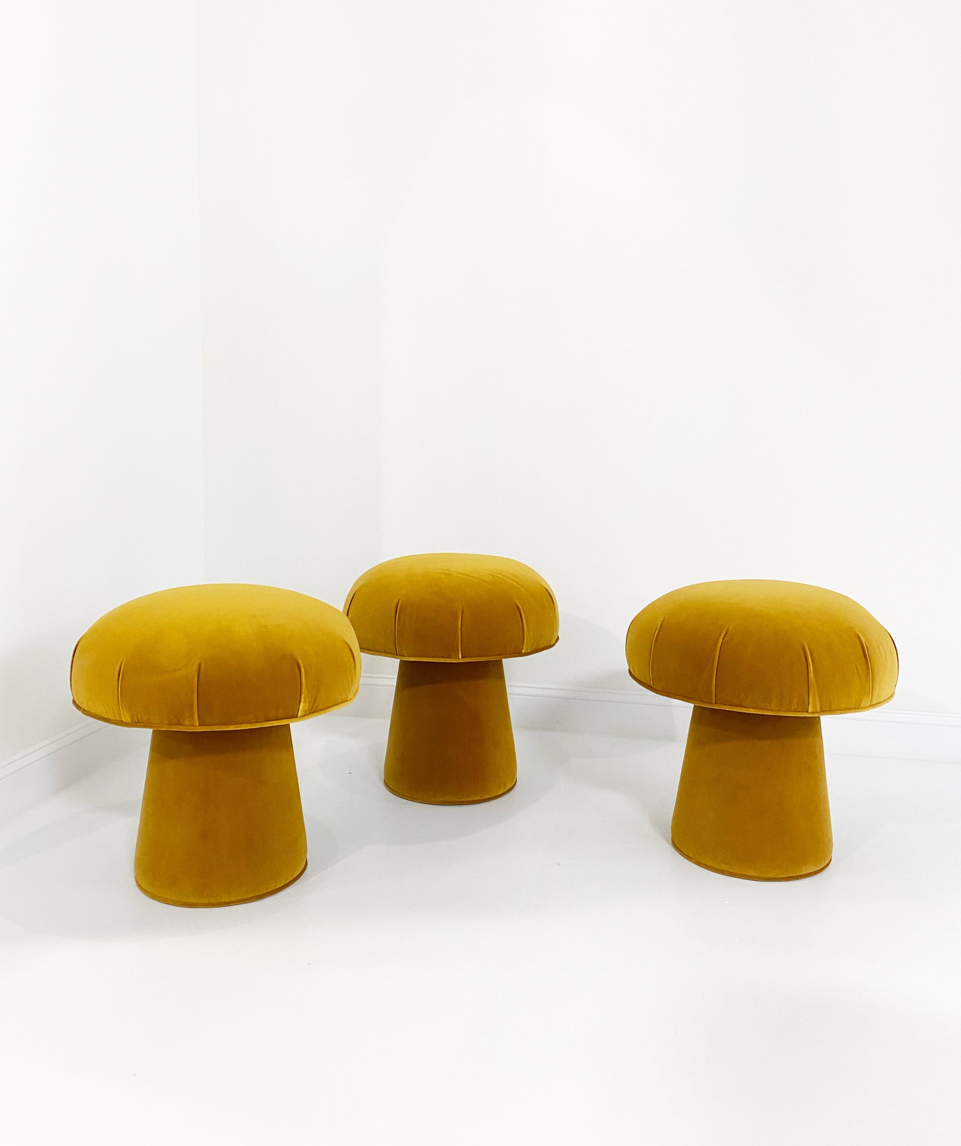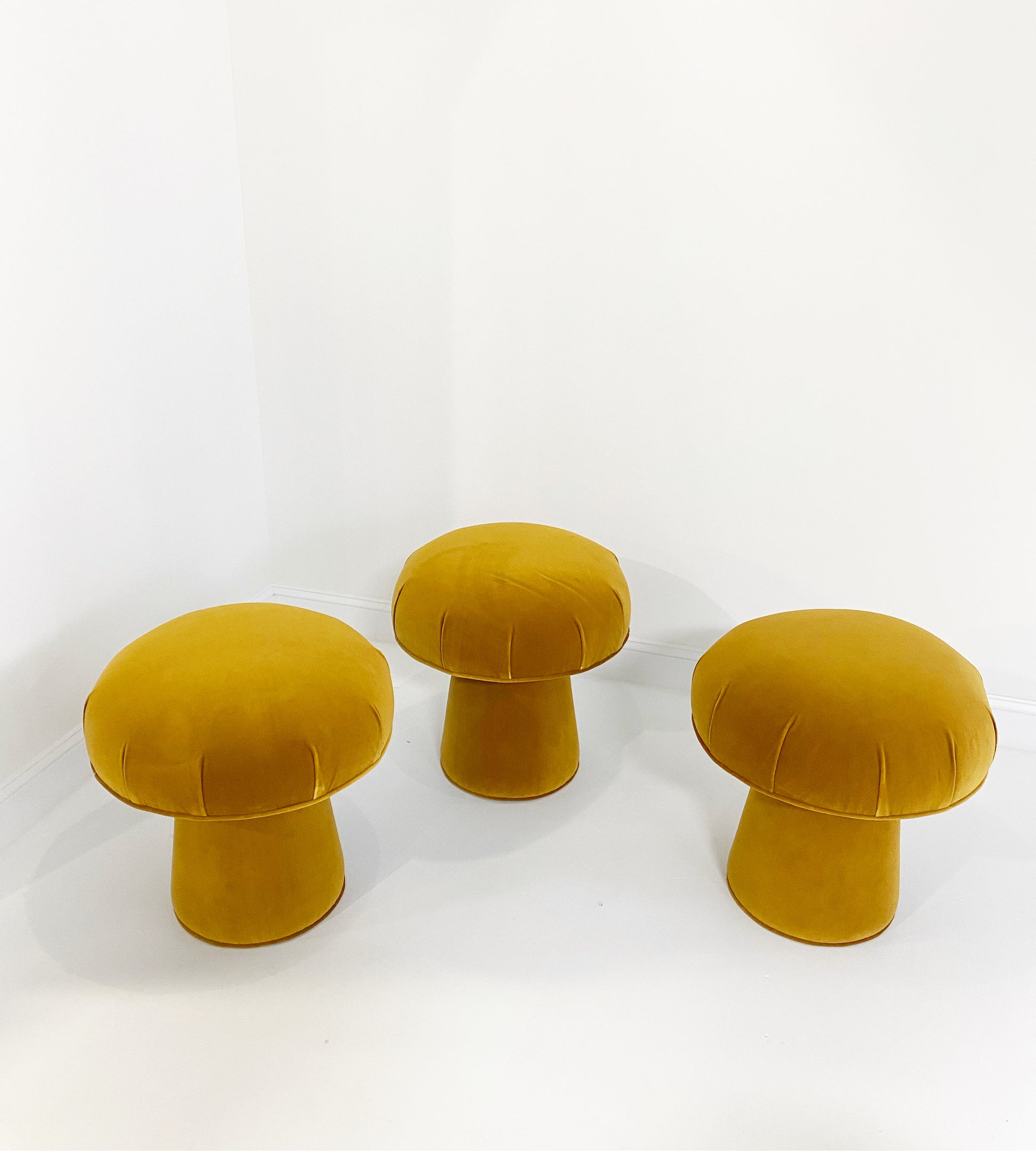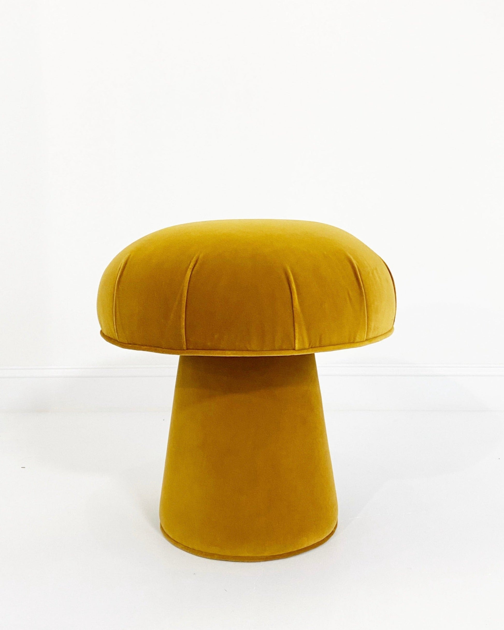 Shown in Loro Piana's beautiful gold velvet. Interested in a different color or fabric? The mushroom pouf can be made bespoke to meet your design needs. If you are interested in a different fabric for your space, just ask.