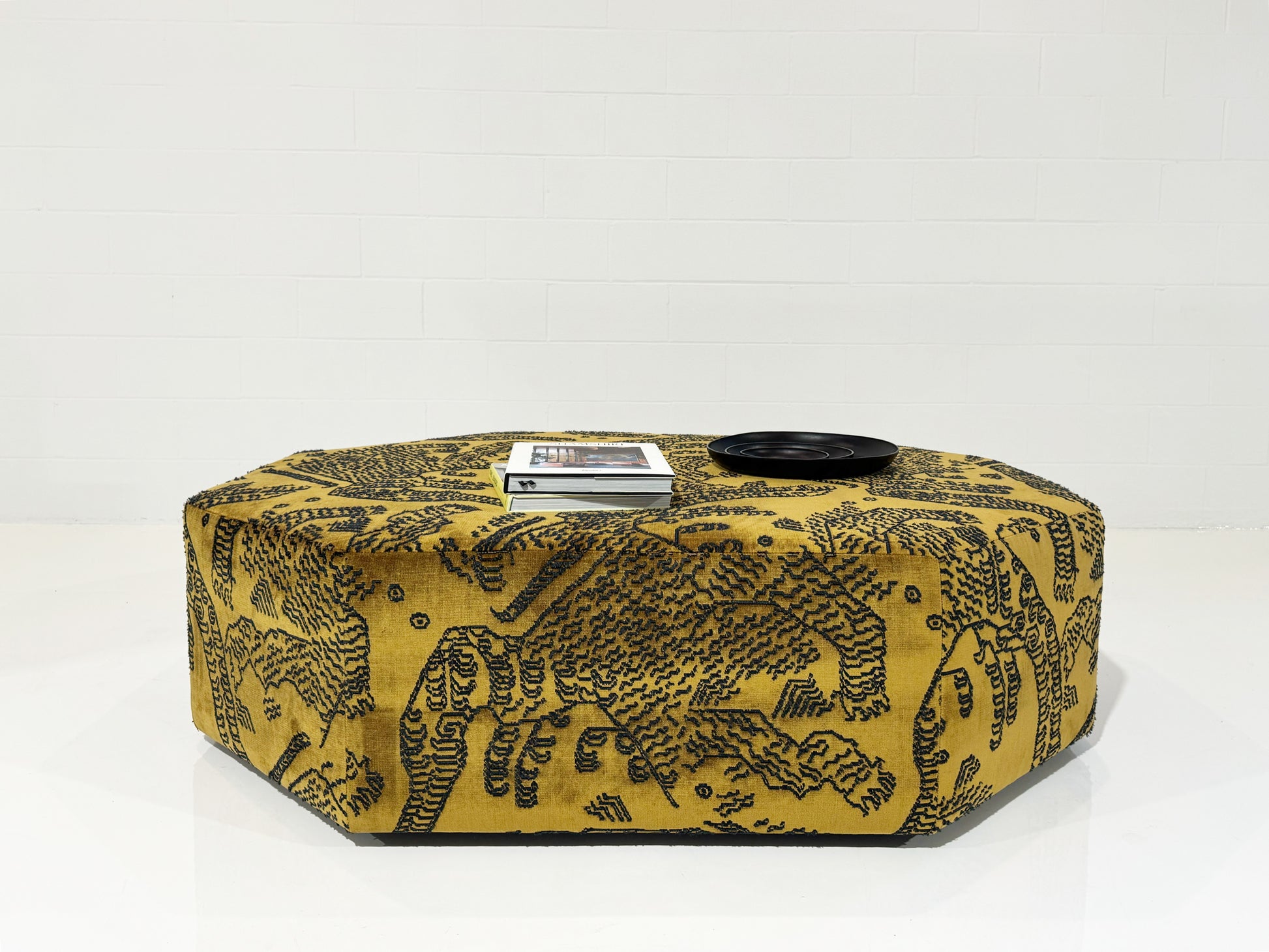 Introducing this Forsyth Octo Ottoman. A new shape in our growing collection of beautiful, made to order ottomans. 8 sides create an easy flow around the piece.