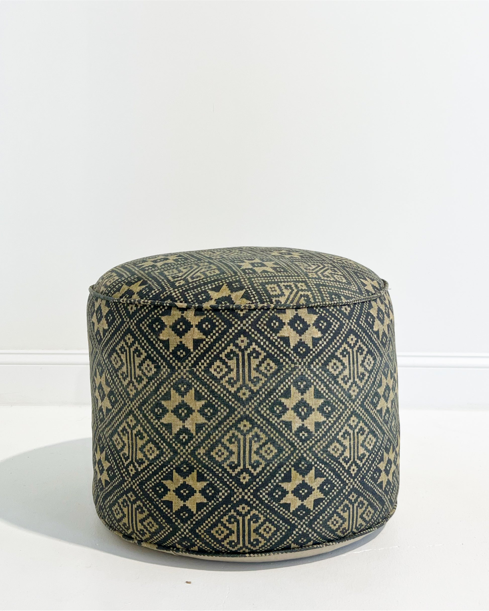 Our luxurious pouf ottomans are handcrafted with a printed linen blend fabric from our friends at St. Frank. Down feathers fill each pouf, 12 pounds to be exact, and each is finished with a cotton canvas bottom. Each step is meticulously curated by Saint Louis based Forsyth artisans.