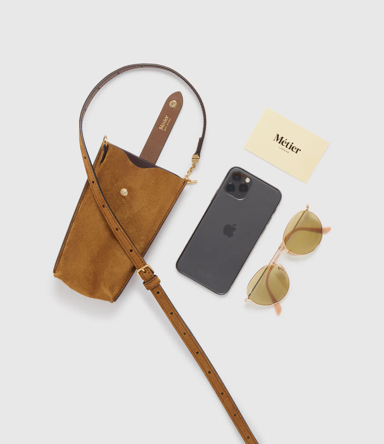 Lightweight and compact, the Minimalist Double is an elegant crossbody for your most important essentials. Featuring two separate compartments—one for your glasses or sunglasses and the other fitted for your phone, keys and most important card, it also comes with an adjustable and detachable shoulder for added versatility. Fits up to an iPhone 13.