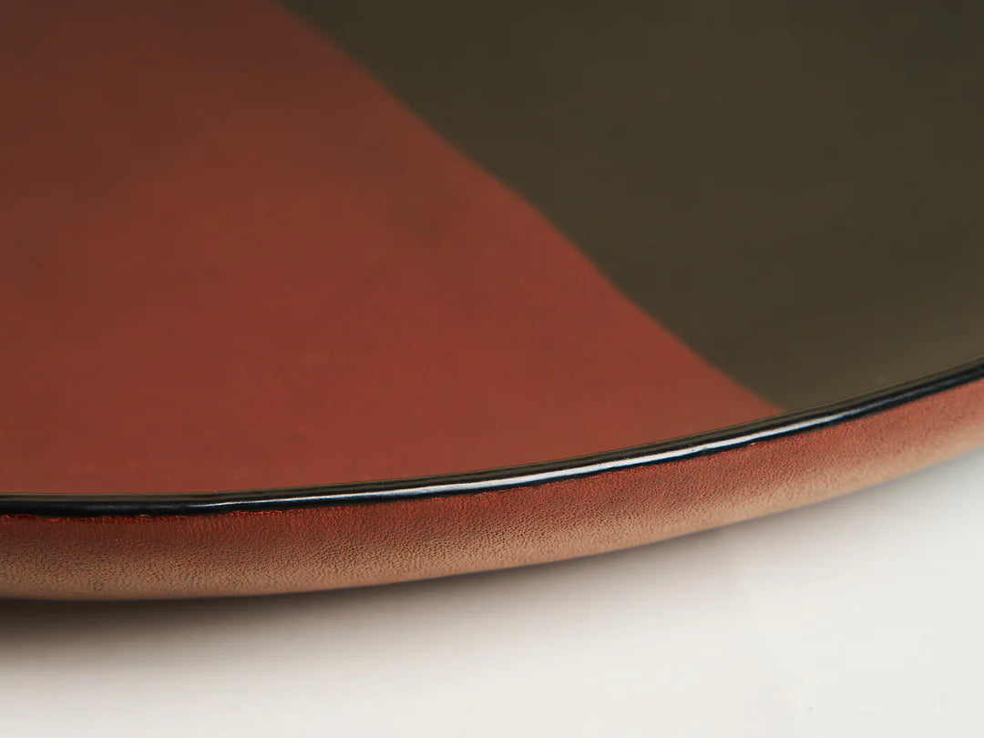 The smooth leather construction is buffed to perfection, giving the tray a luxurious finish that echoes the look of Japanese lacquer-ware. Designed by a team of skilled artisans in Colombia, this tray is a true heirloom for the home. Whether used as a centerpiece on a coffee table or to serve guests at a dinner party, the Oversized Tray will elevate your space and make a statement in your home.