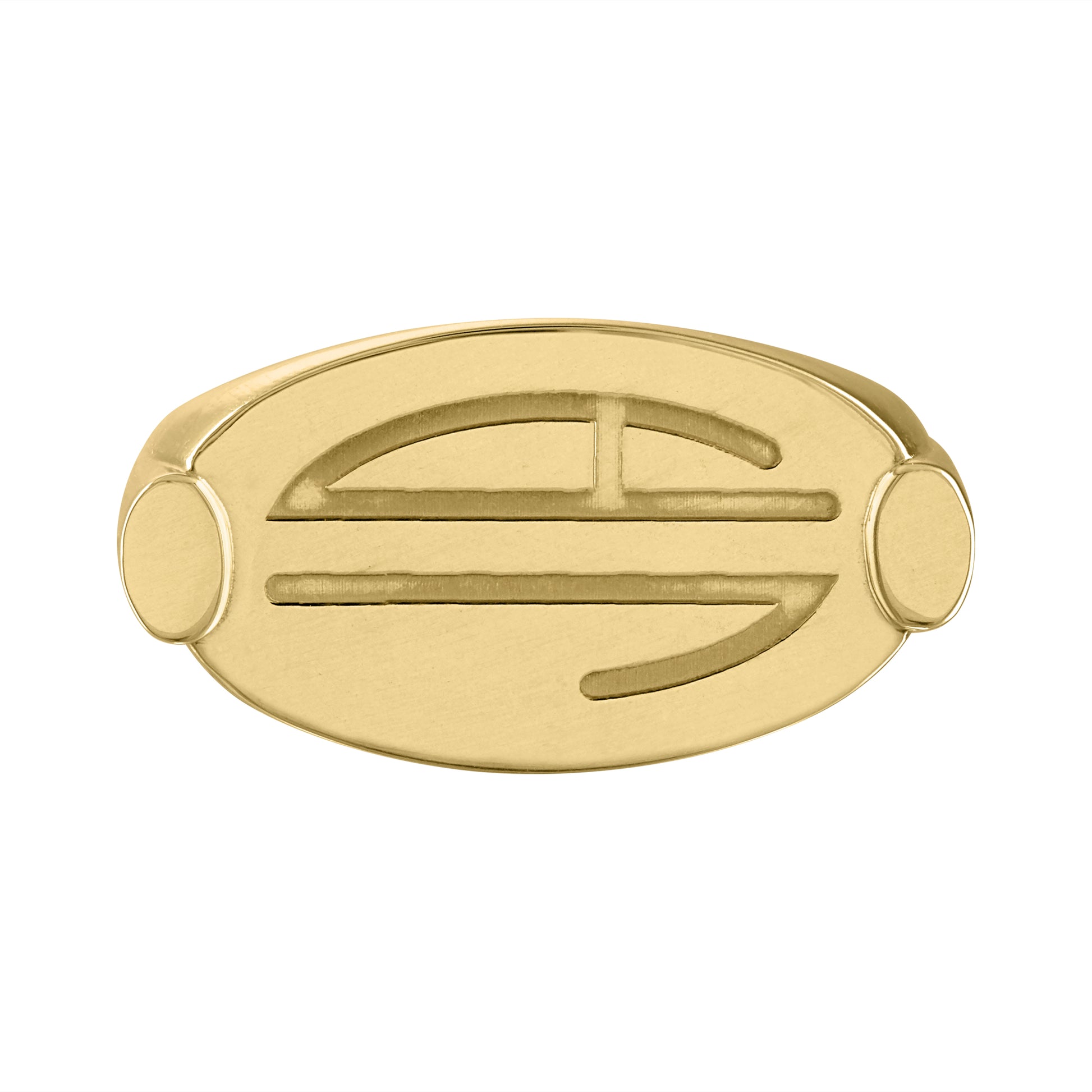 Classic in detail, modern in interpretation, the Oval Signet Ring is composed of 18k gold. Ring measures 22mm in length x 12 mm in width.