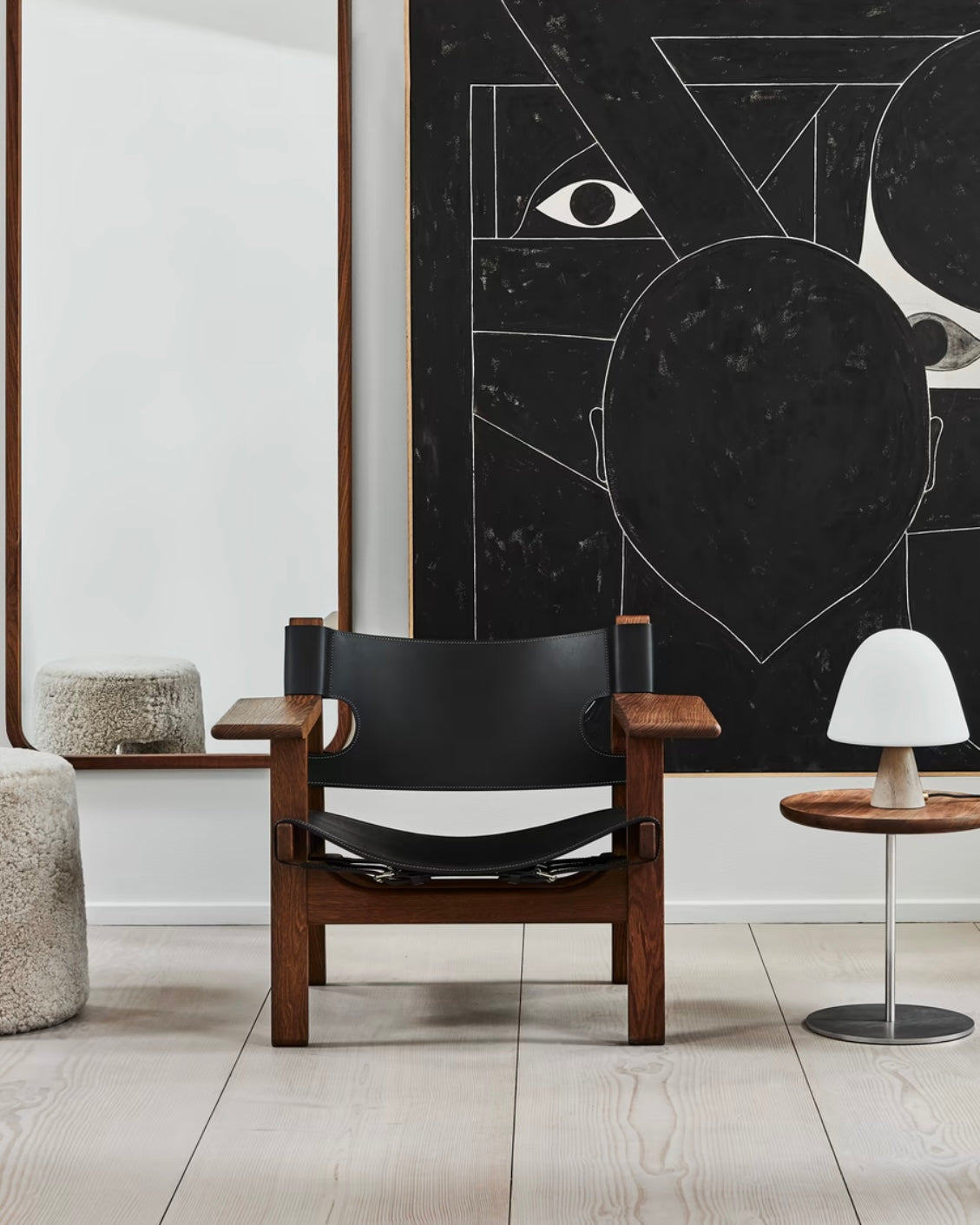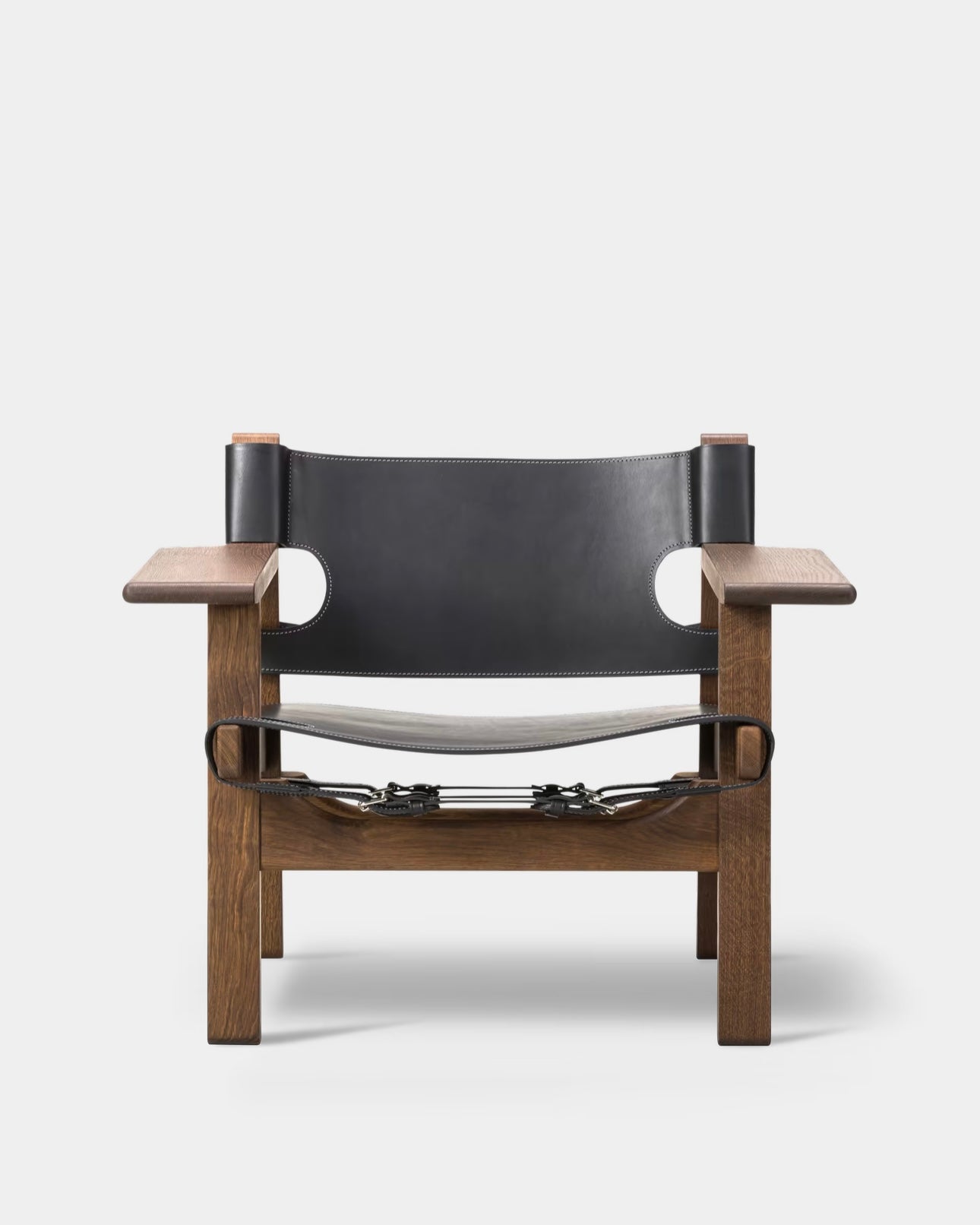 The iconic Spanish Chair is Børge Mogensen’s masterful contribution to modern design, designed for Fredericia in 1958. Solid oak or walnut combined with the highest caliber saddle leather creates a strong presence in a chair that will only become more beautiful with age.