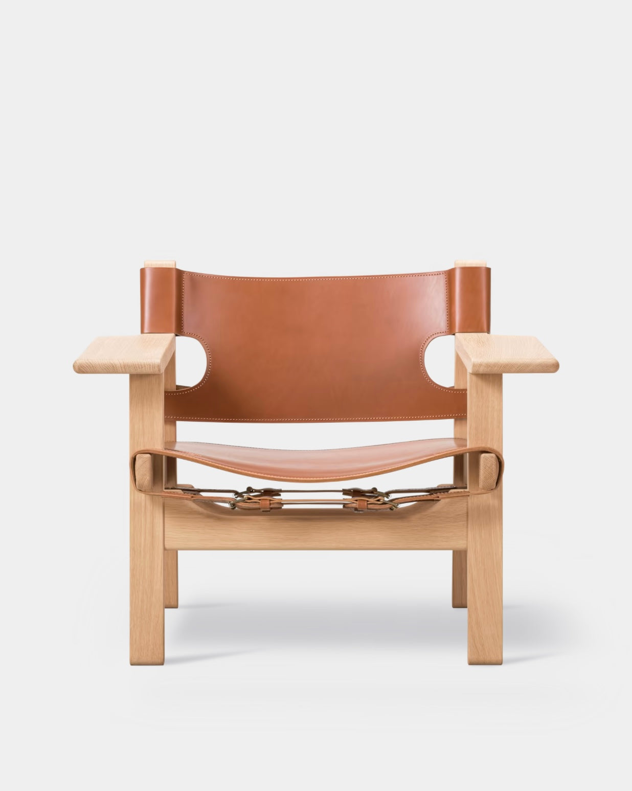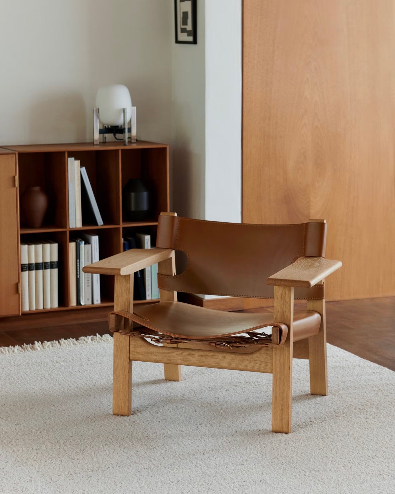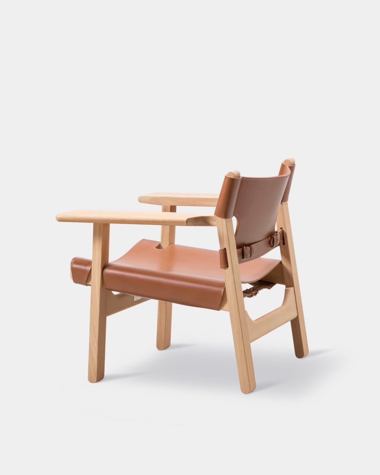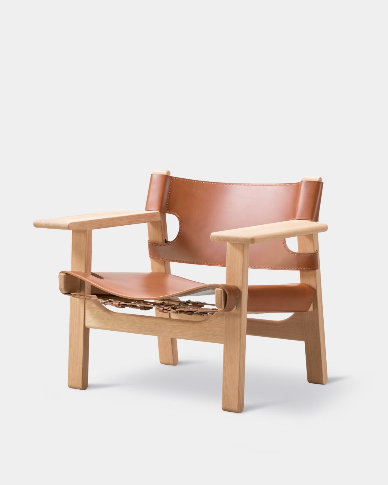 The iconic Spanish Chair is Børge Mogensen’s masterful contribution to modern design, designed for Fredericia in 1958. Solid oak or walnut combined with the highest caliber saddle leather creates a strong presence in a chair that will only become more beautiful with age.