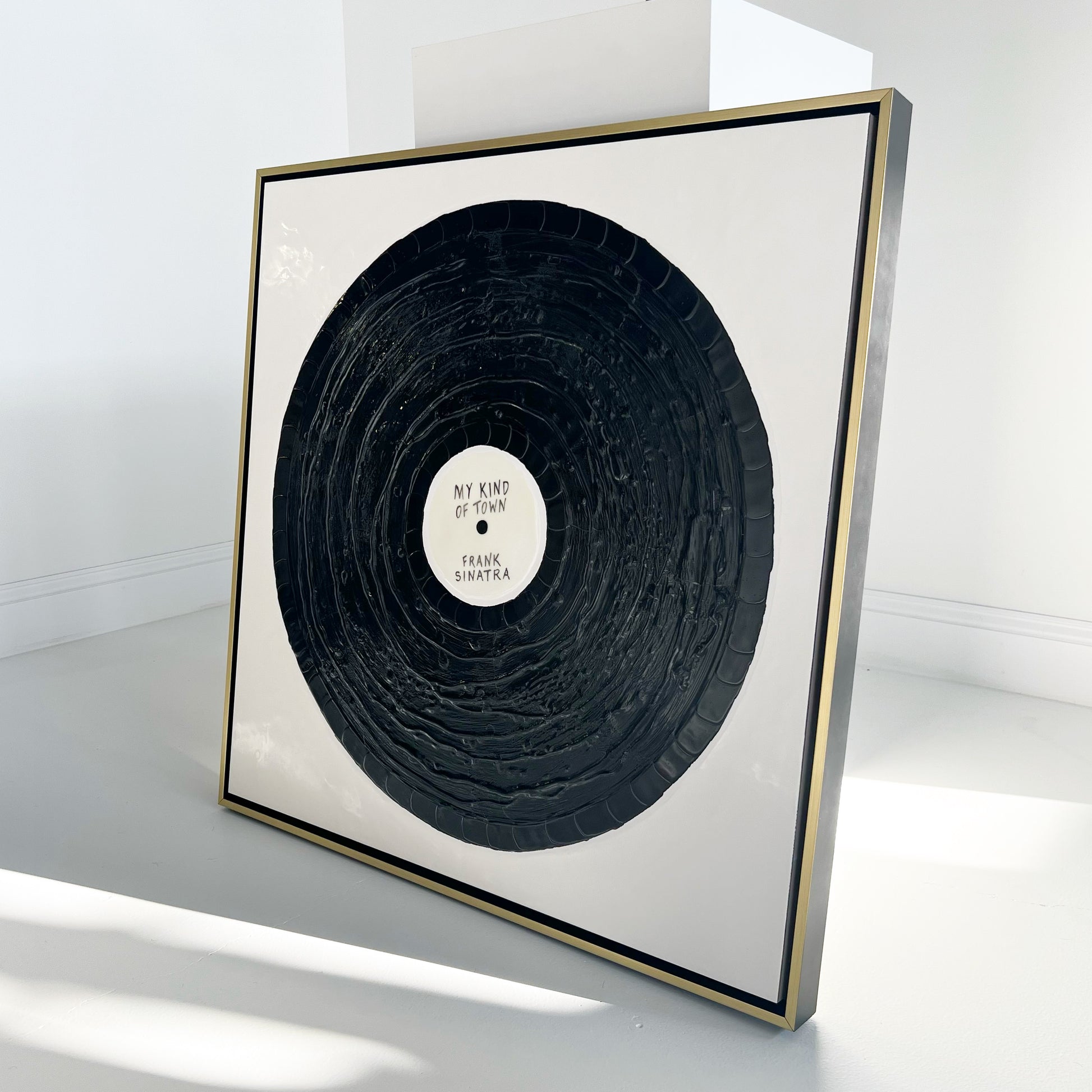 Framing | The vinyl is finished in a beautiful frame. You have the choice of a black, natural maple, or black with gold front frame.