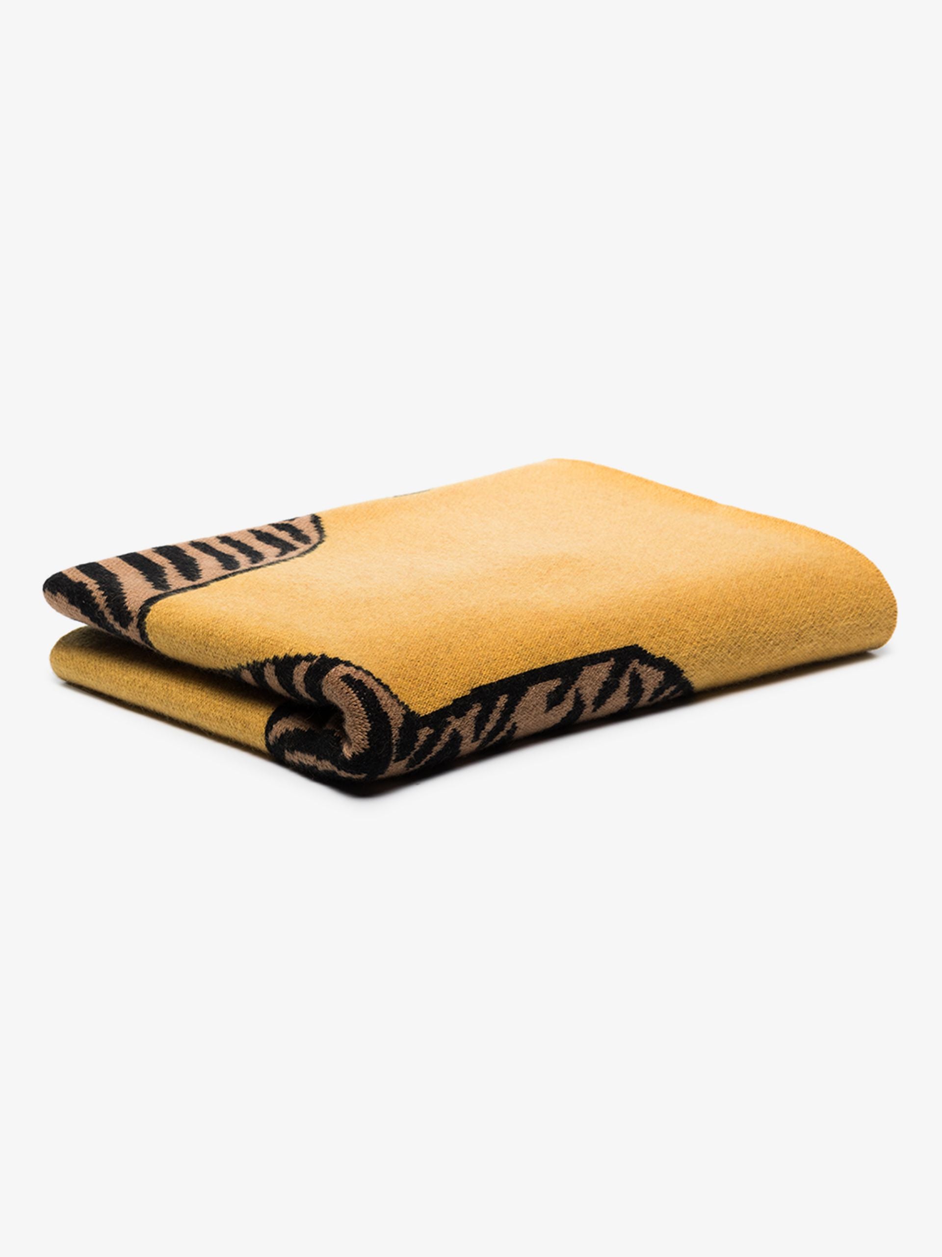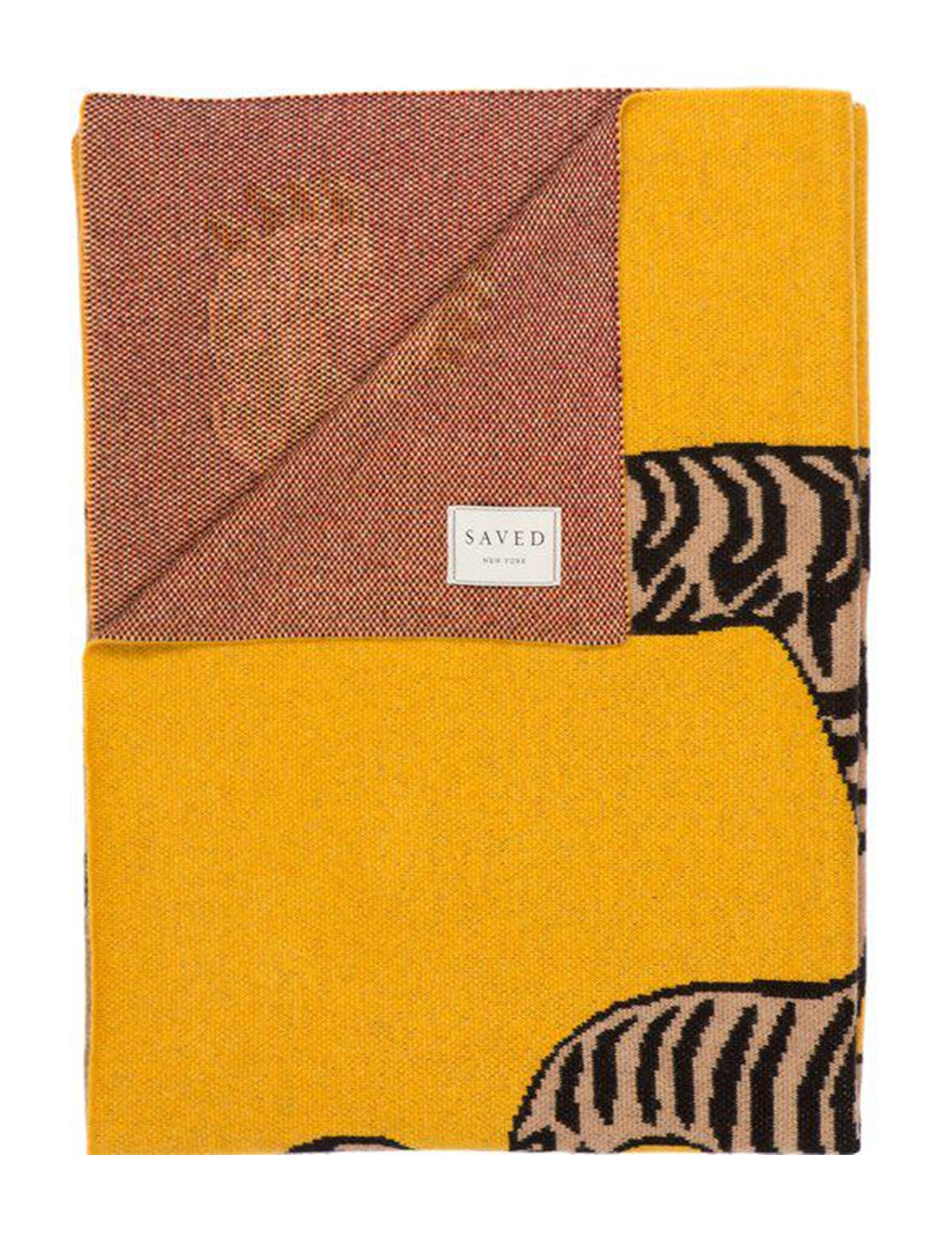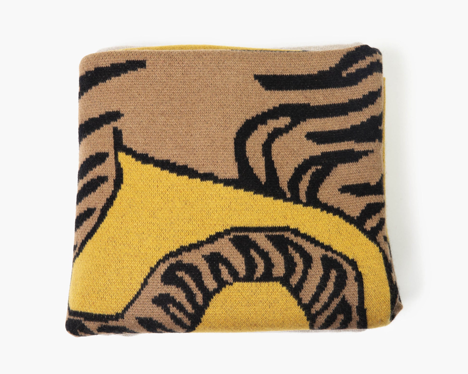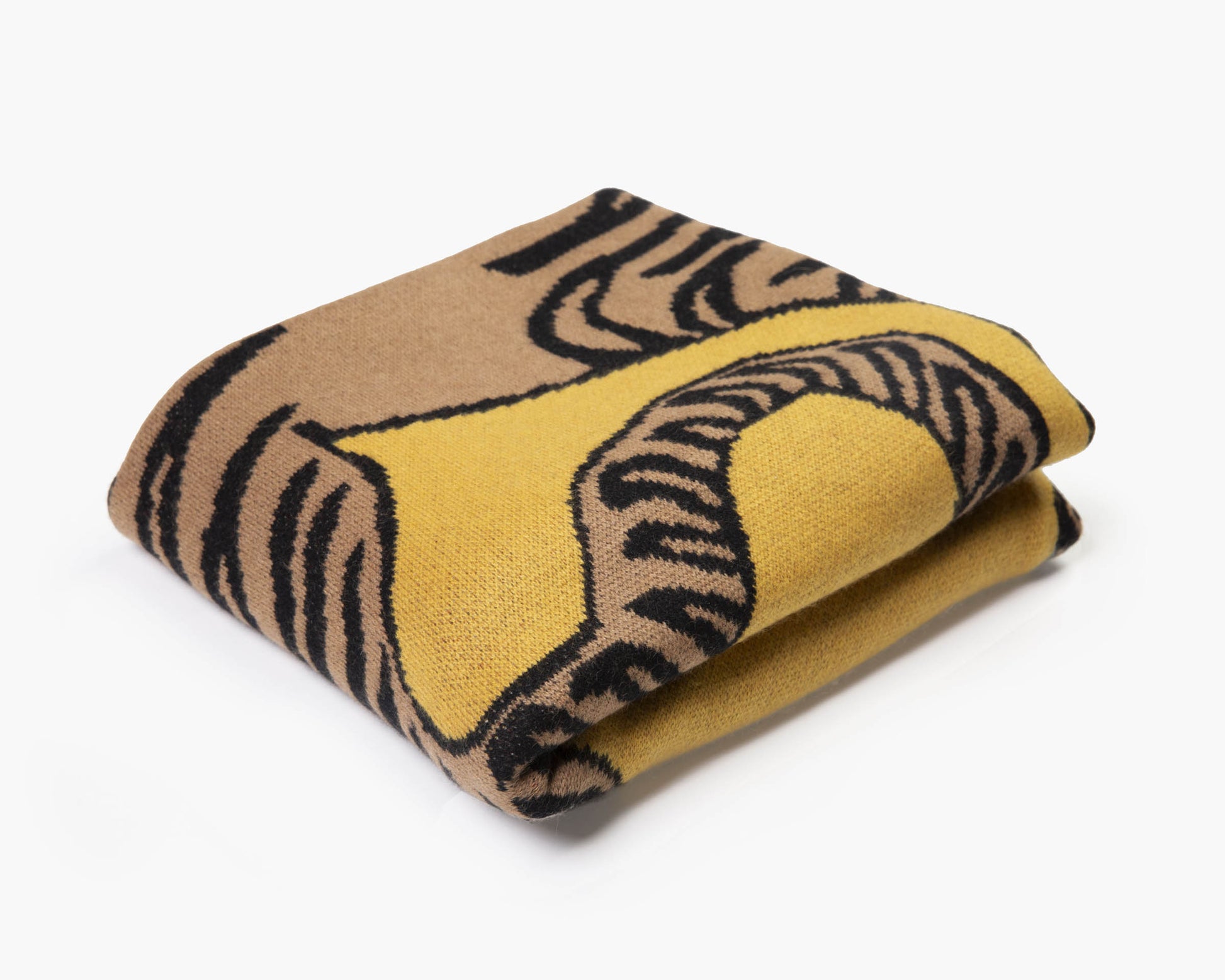 The auspicious Caspian tiger celebrated in Mongolian and Tibetan traditions adorns the Tiger Rug throw.  Vibrant in color and fierce in design, the weave is a luxurious pairing of Mongolian Cashmere and fine Baby Camel Hair.