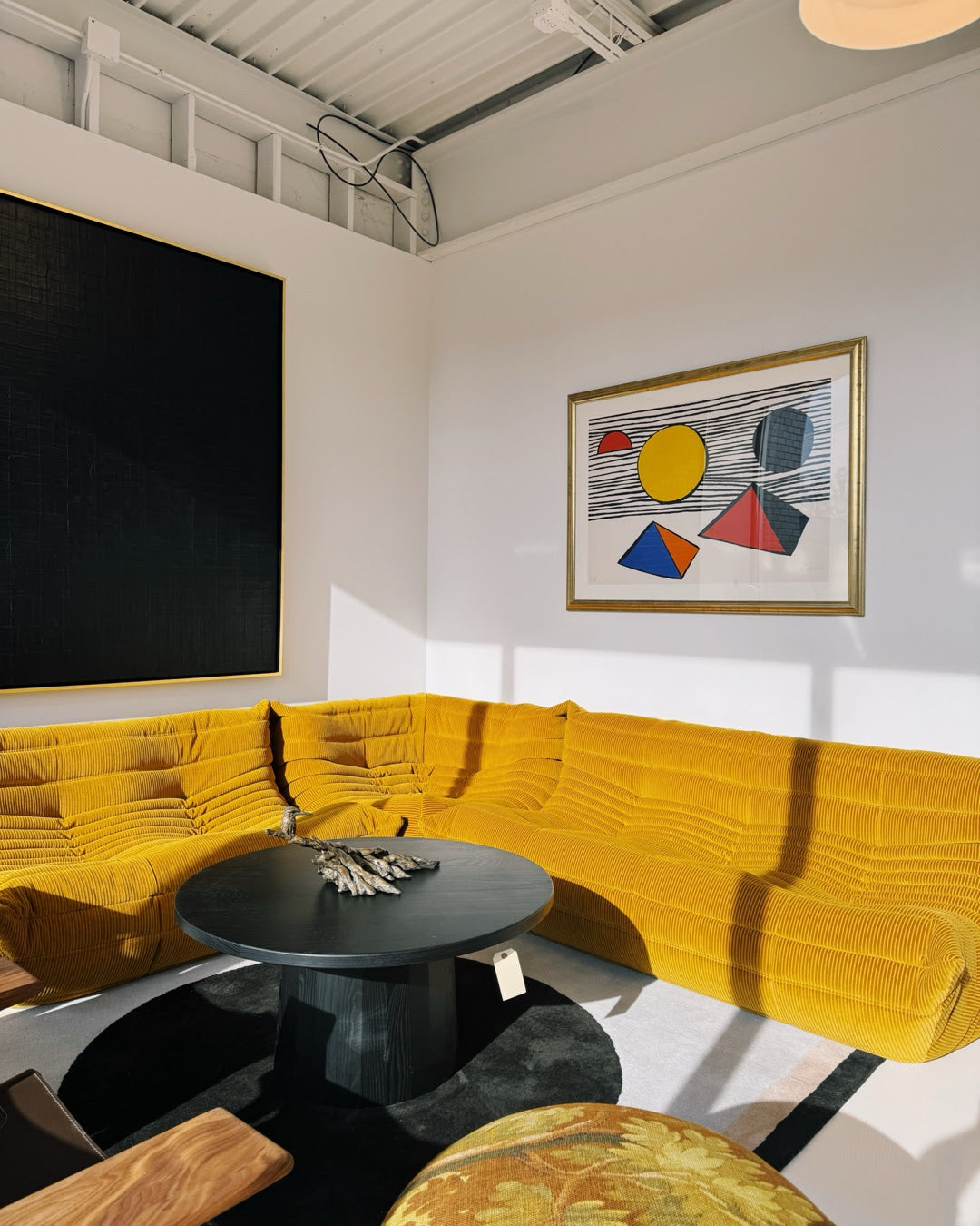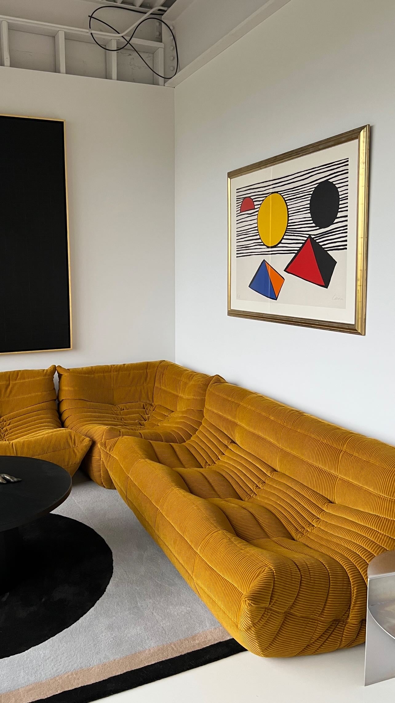 This Togo® Sectional, as seen in our Forsyth showroom, was a 3-Piece Composition consisting of a Corner Seat, 2-Seater Sofa, and 3-Seater Sofa. The fabric we chose is the ever popular Phlox by Raf Simons for Kvadrat in Moutarde colorway. Phlox is Simons’ interpretation of the classic corduroy fabric and is also available in other colors, click here to view.