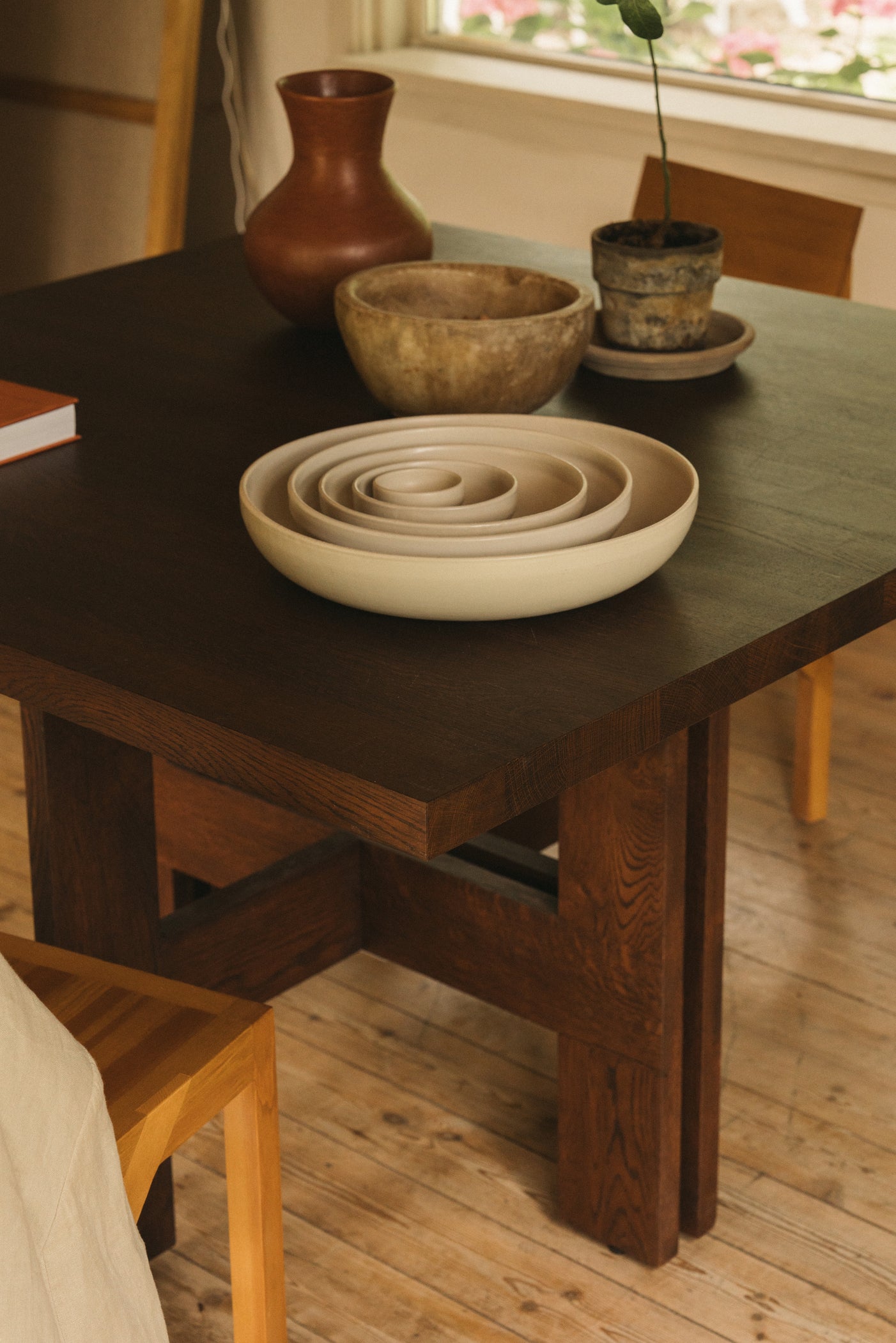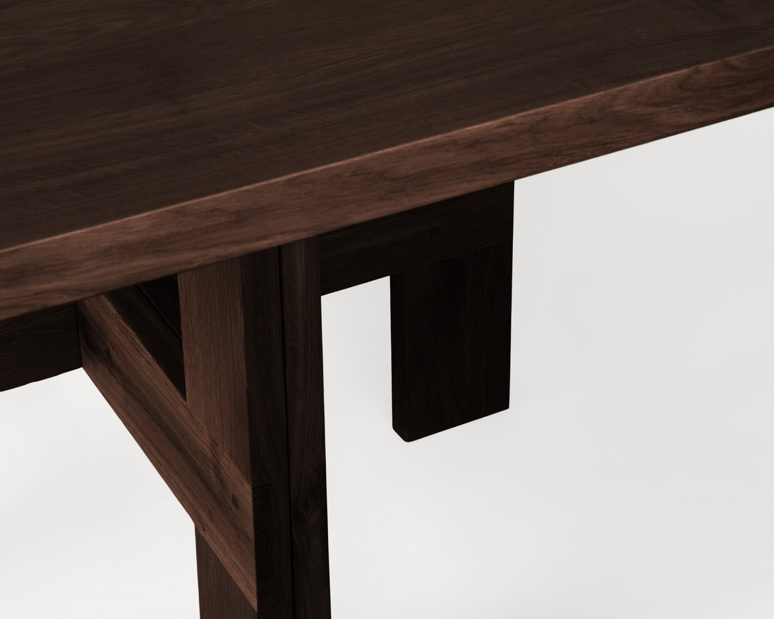 The Farmhouse Trestle Table Square in Dark Oak is a versatile item featuring a rich, deep finish with a symmetrical shape allowing equal access from all sides. Crafted in high-quality solid oak, supported by trestles, and inspired by traditional farmhouses with a rural aesthetic, the table is a durable piece that accommodates a variety of events and gatherings.
