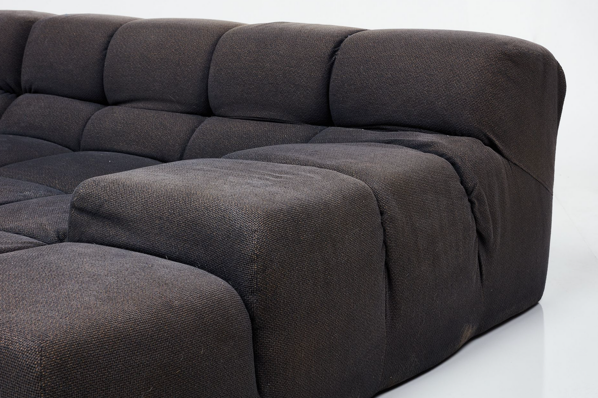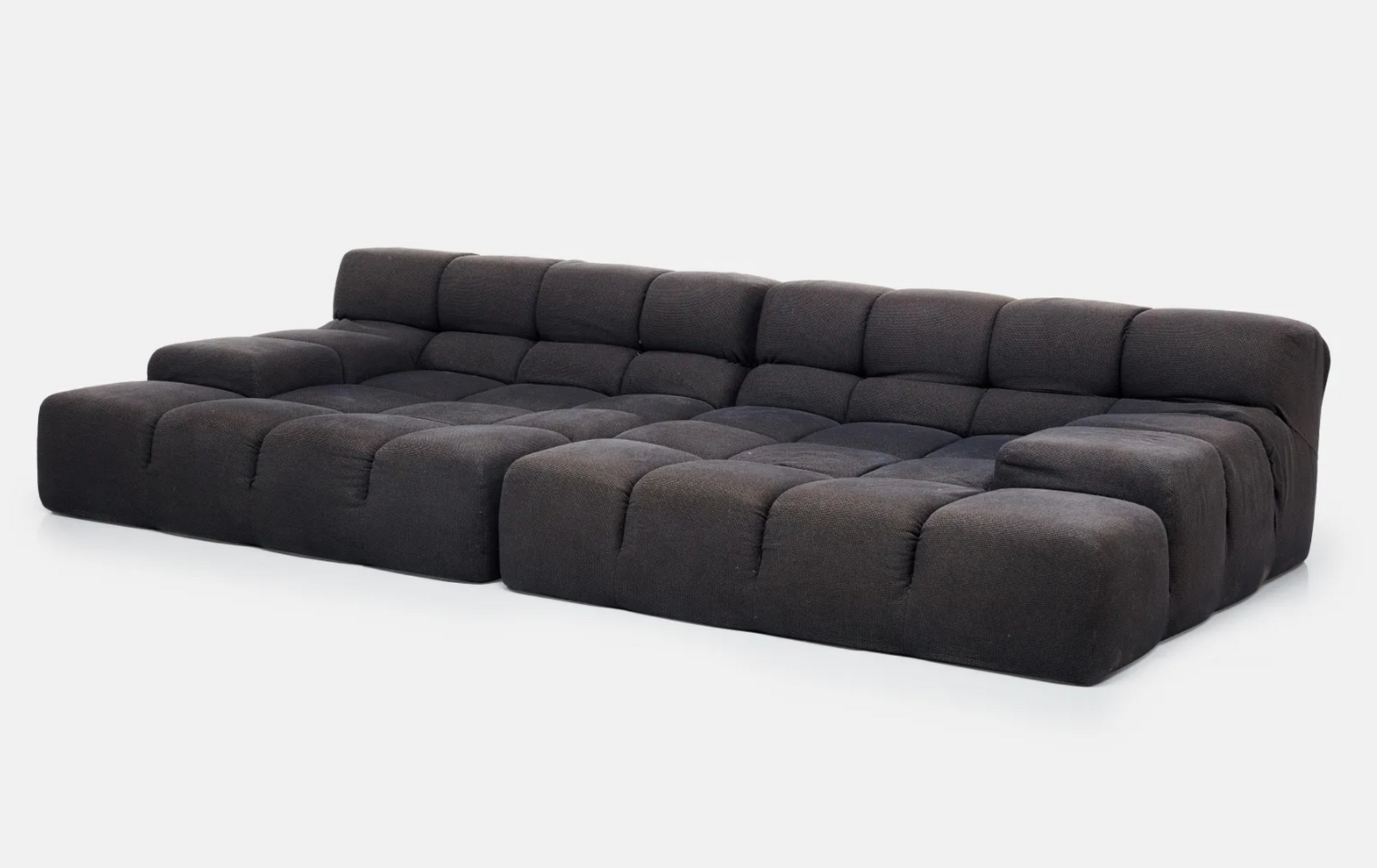From B&B Italia: The Tufty-Time sofa series, one of B&B Italia’s most consolidated successes, finds effective answers to the themes of modularity, comfort and removable covers. The Tufty-Time modular system starts with an ottoman as the basic piece, which is then accompanied by central, corner and terminal elements with a low or high armrest. The elements are used to invent traditional sofas, sofas with chaise longue, corner sofas and island elements that provide a 360° seating solution. Tufty-Time becomes a meeting place, a welcoming refuge where people can just relax, offering a more contemporary take on the traditional Chesterfield and capitonné sofas, with a freer and more informal lifestyle.