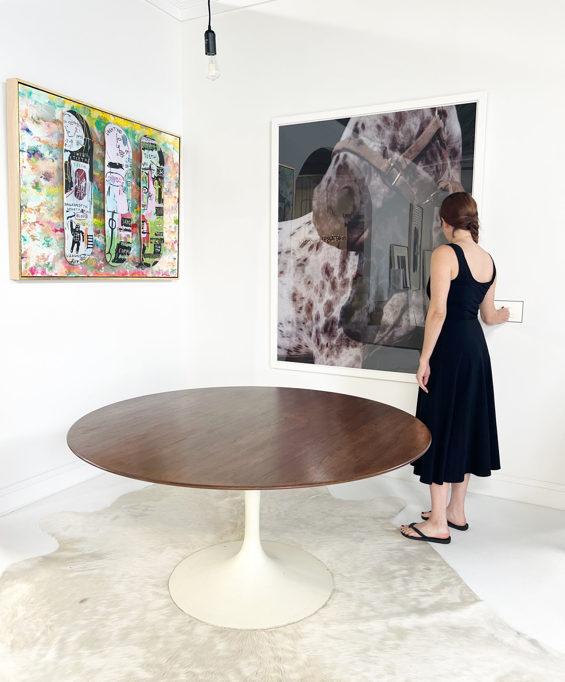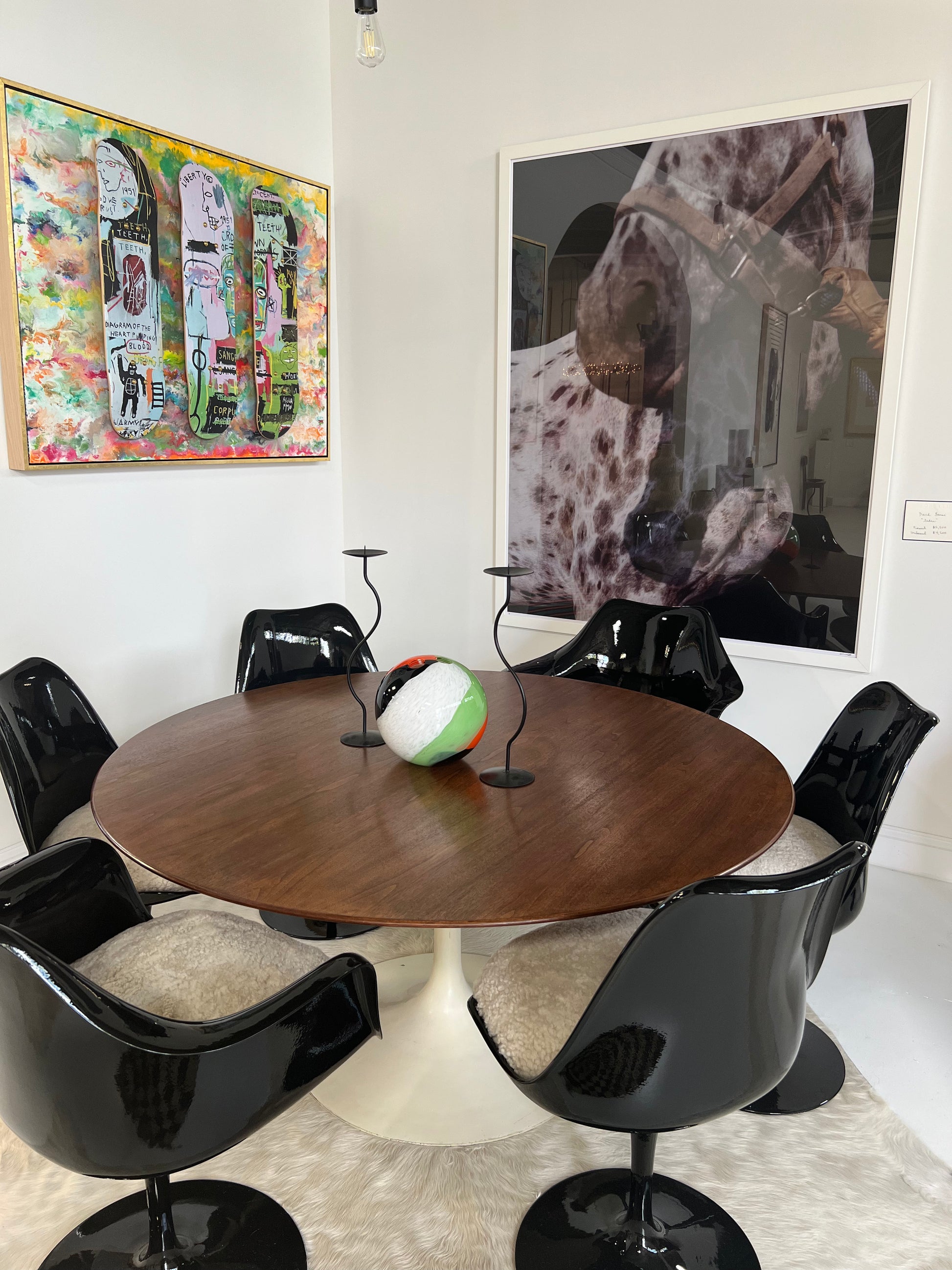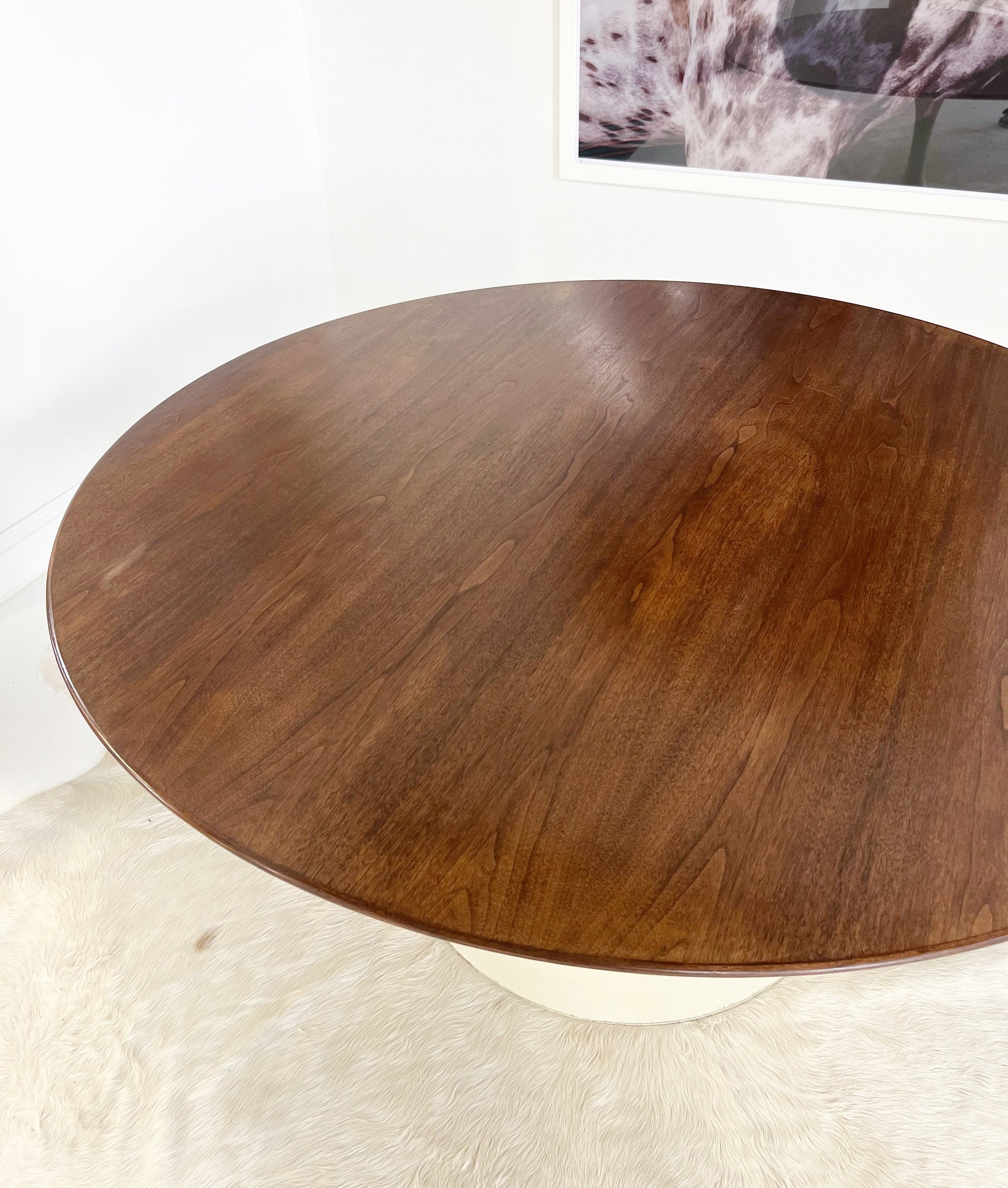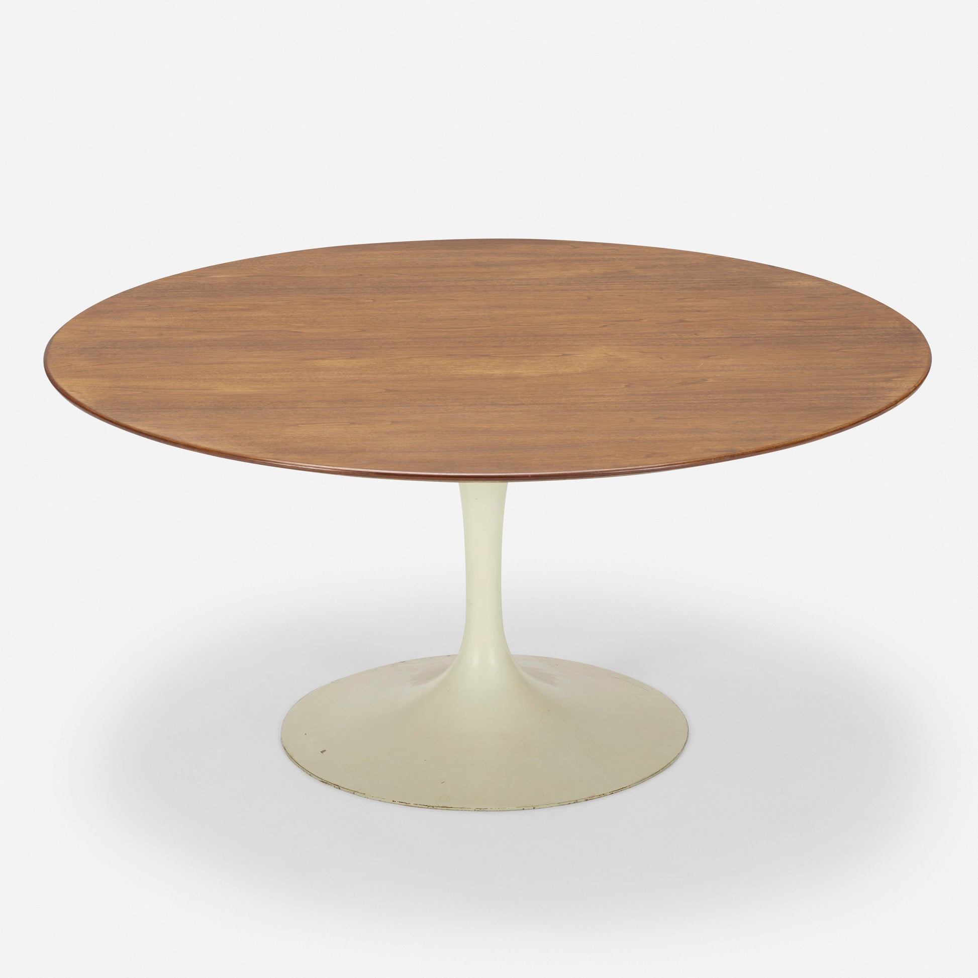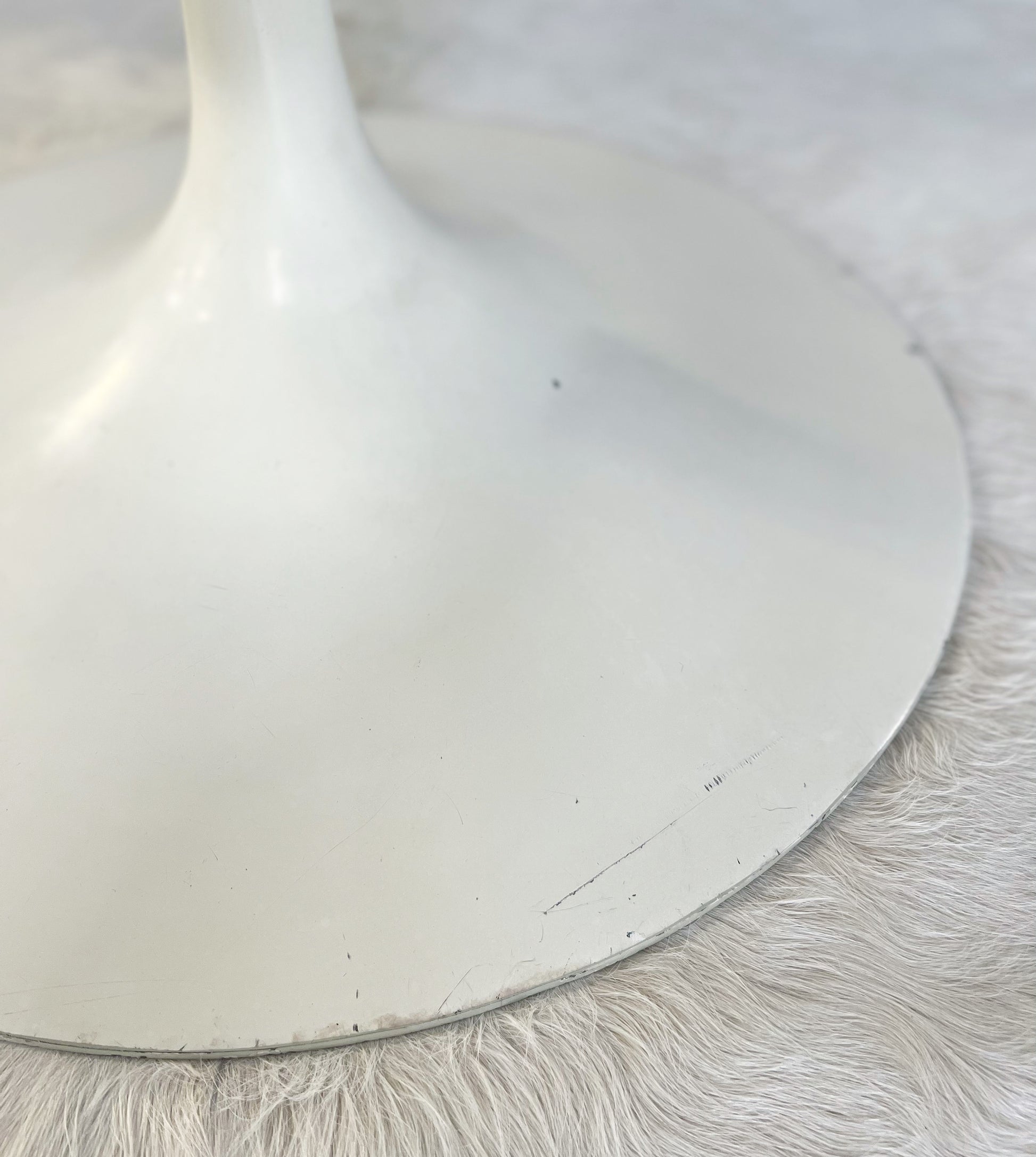 To accompany his famous Tulip chair design, Eero Saarinen designed the Tulip table. A simple design with timeless beauty. At 54 inches diameter, it can comfortably fit 6 chairs around. Paper manufacturer's label to underside ‘Knoll Associates’.