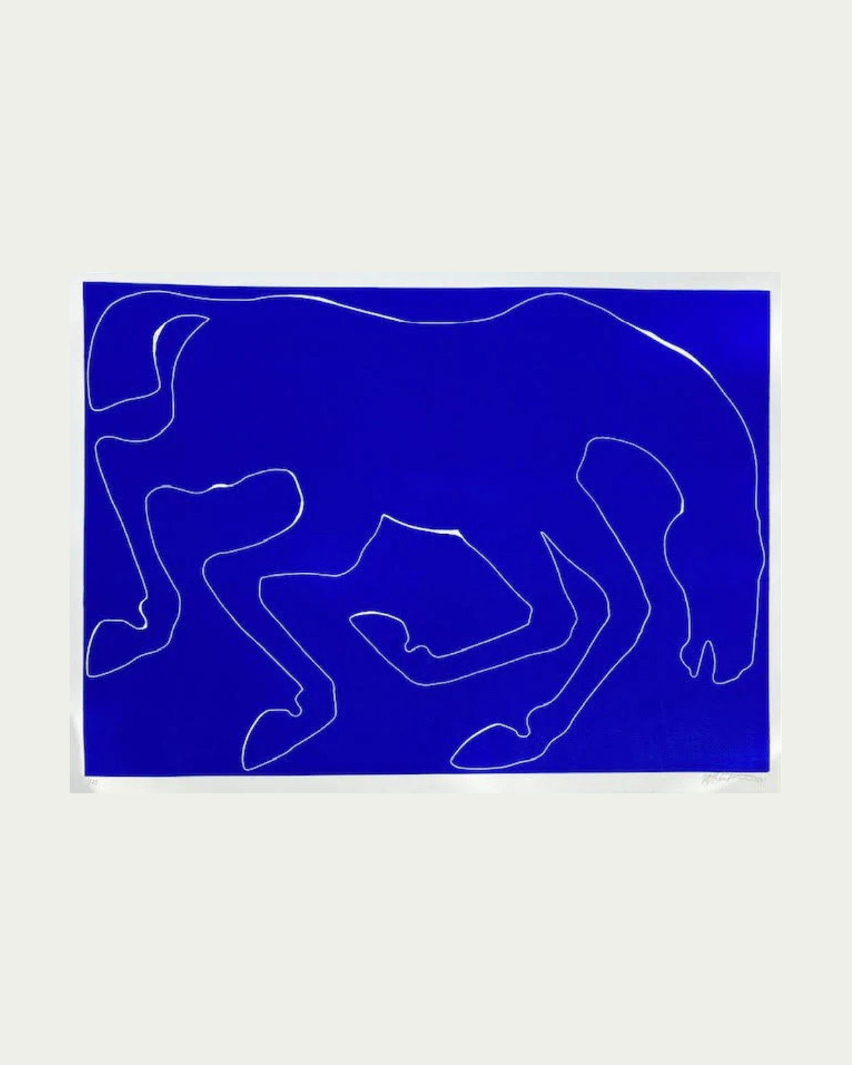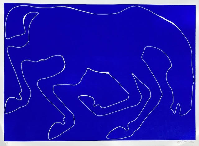 Artist Maggie Robertson translates her Big Blue Horse paintings into printmaking with this new series of limited edition relief prints. The impact of the ultramarine blue and her refined approach to depict all that the horse imbues leaves one with a sense of energy and joy. Her practiced use of contrasting lines expresses the action and beauty of the horse most effectively.