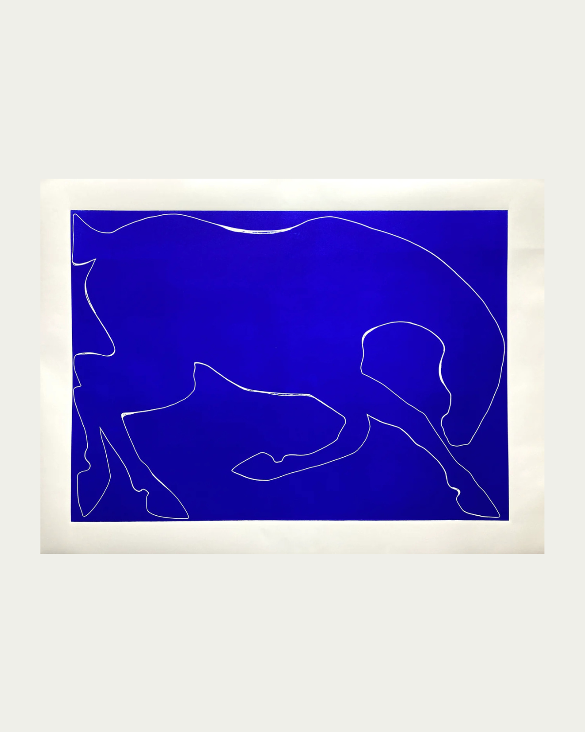 Artist Maggie Robertson translates her Big Blue Horse paintings into printmaking with this new series of limited edition relief prints. The impact of the ultramarine blue and her refined approach to depict all that the horse imbues leaves one with a sense of energy and joy. Her practiced use of contrasting lines expresses the action and beauty of the horse most effectively.