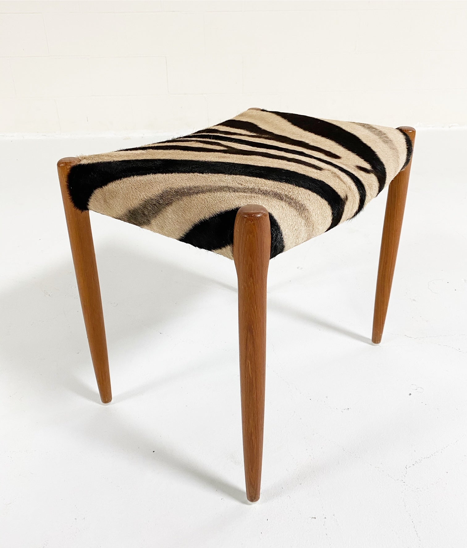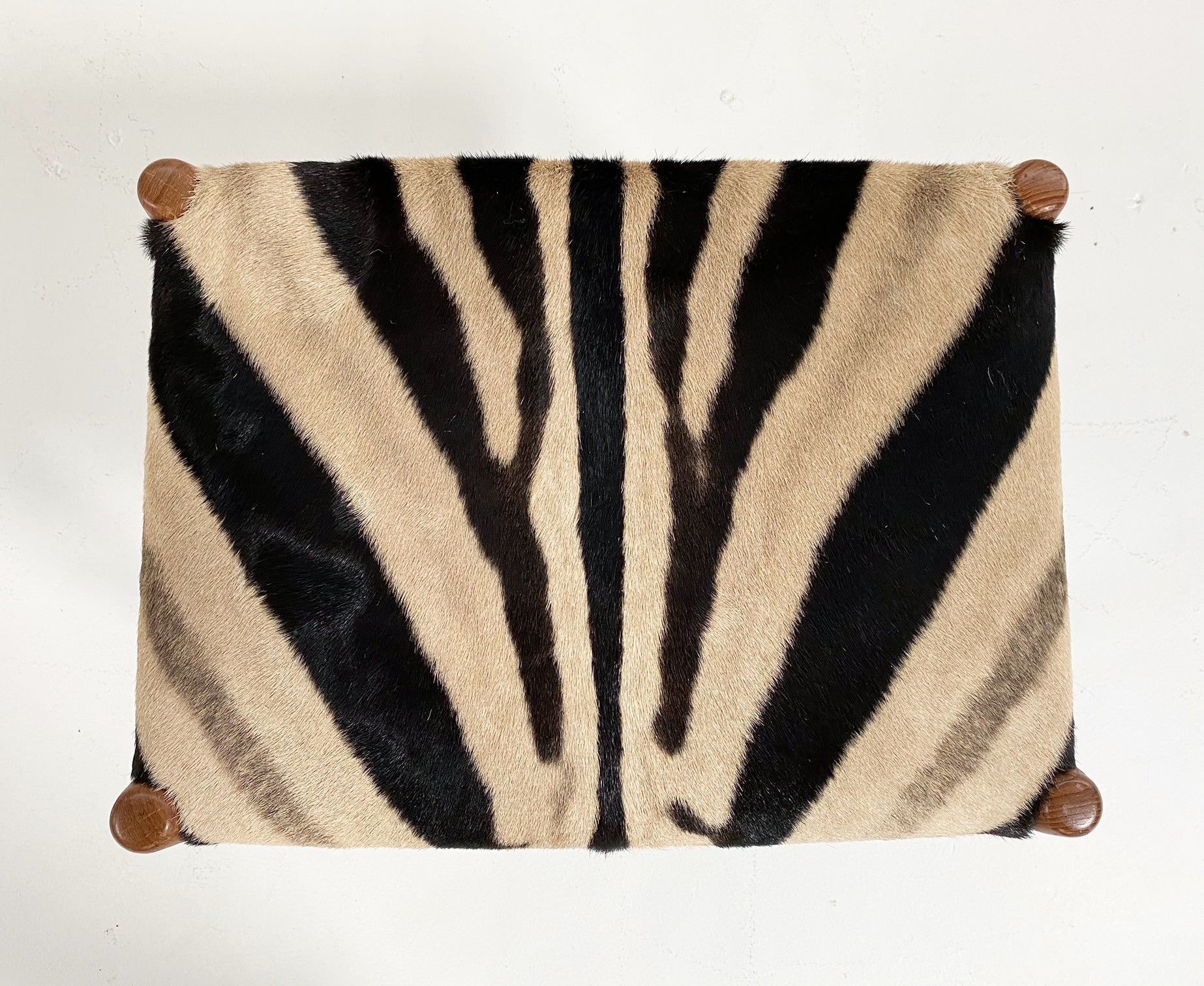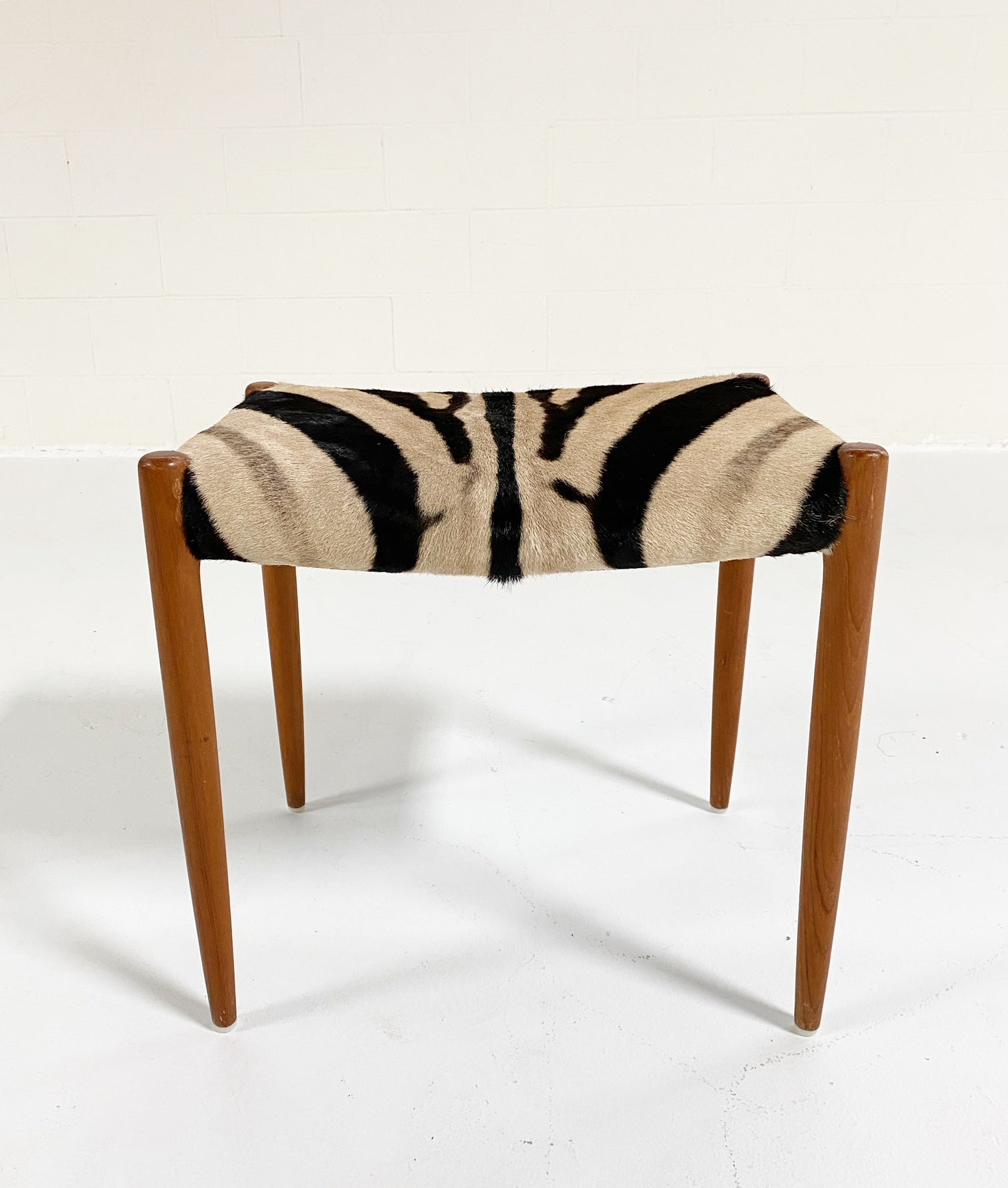 Really beautiful, simple-profile Danish stool or footrest to pull up anywhere, restored in zebra hide for chicness.