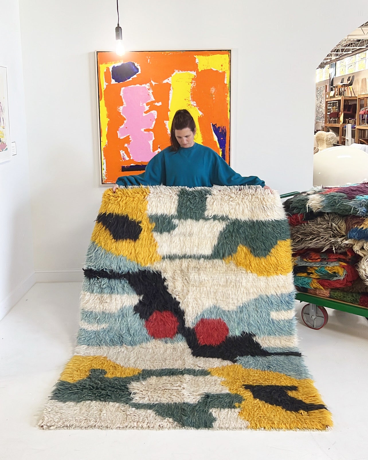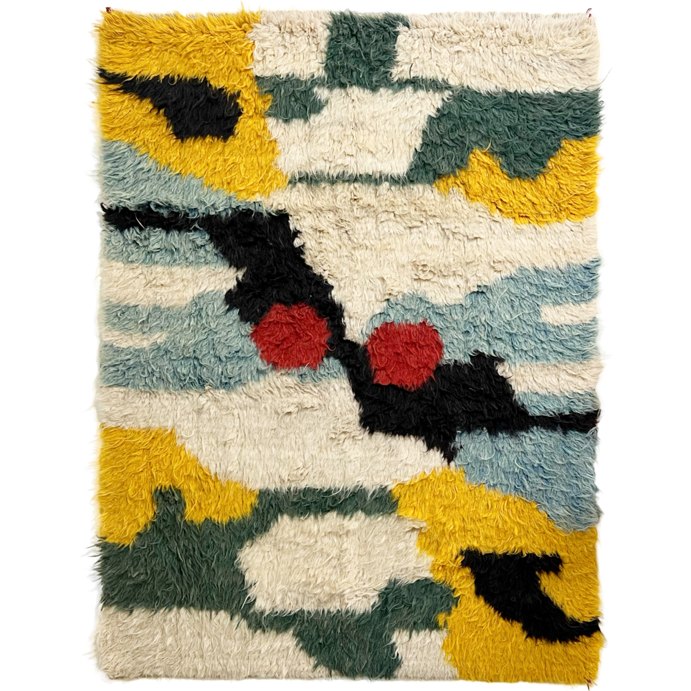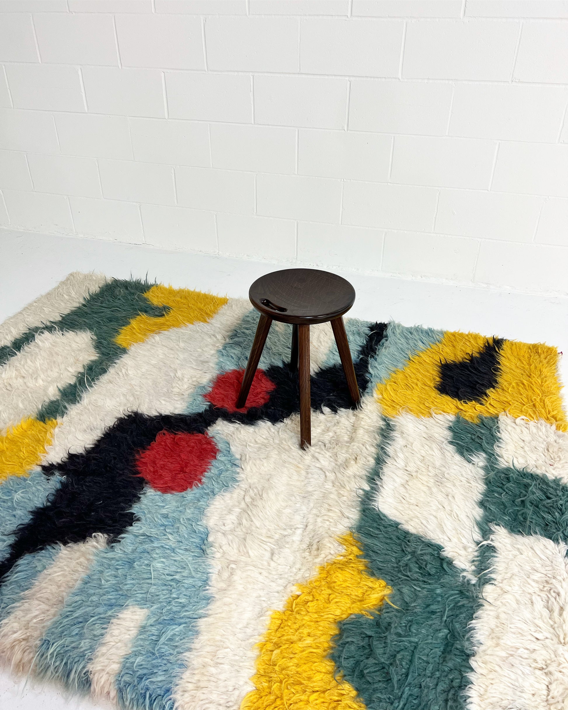 We collected this beautiful vintage gabbeh rug for its cozy, cool feel. Perfect for the bohemian inspired living room, bedroom, or den. A gabbeh rug is traditionally a sleeping rug. The pile is thick and cozy and hand-spun and woven of 100% sheep's wool. These rugs is popular among the populations of the Zagros Mountains of Iran, including Kurdish, Luri and Qashqai people. The gabbeh is usually woven by women. The word “gabbeh” comes from the Persian گبه, meaning raw, natural, uncut.